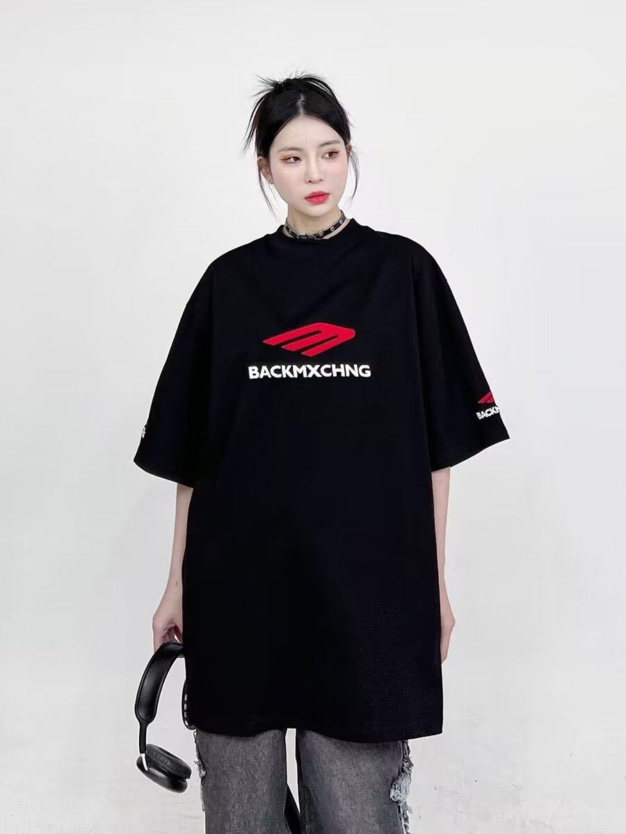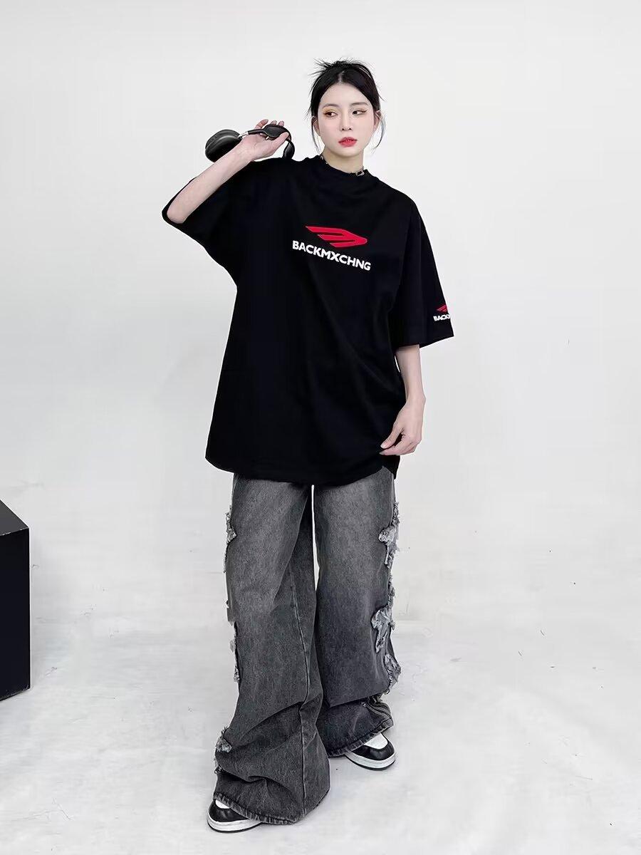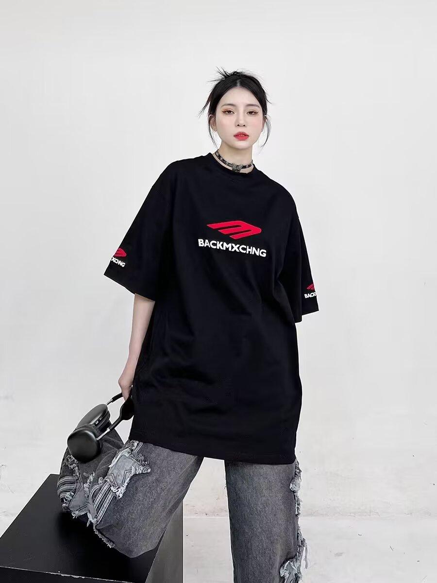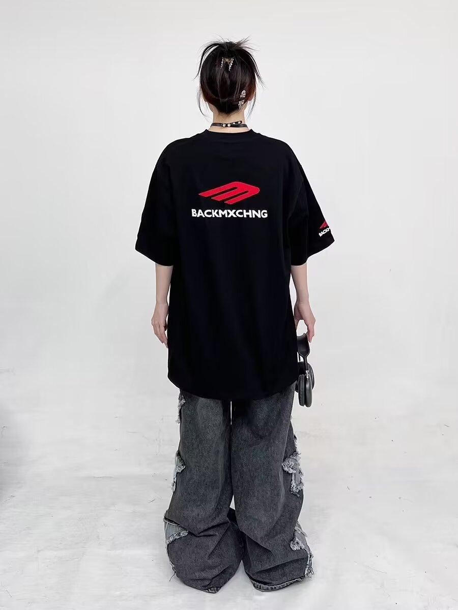 Camiseta de manga corta de verano de calle alta de moda americana, moderna, para hombre y mujer, cuello redondo, diseño holgado, estampado de letras, media manga, manga corta