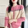 Chaqueta de punto elegante con cuello redondo y rayas francesas de alta calidad para otoño e invierno, estilo Chanel