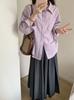 Camisa de manga larga blanca y morada estilo coreano para mujer, estilo francés, ligera, informal, combinable, para otoño
