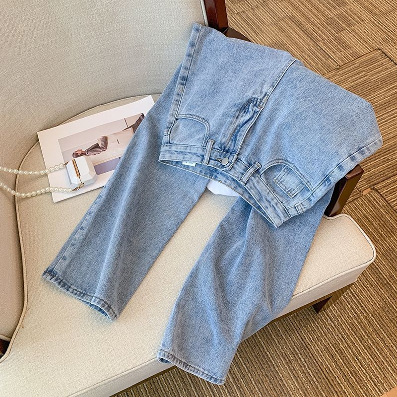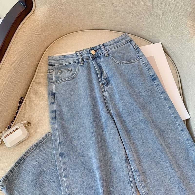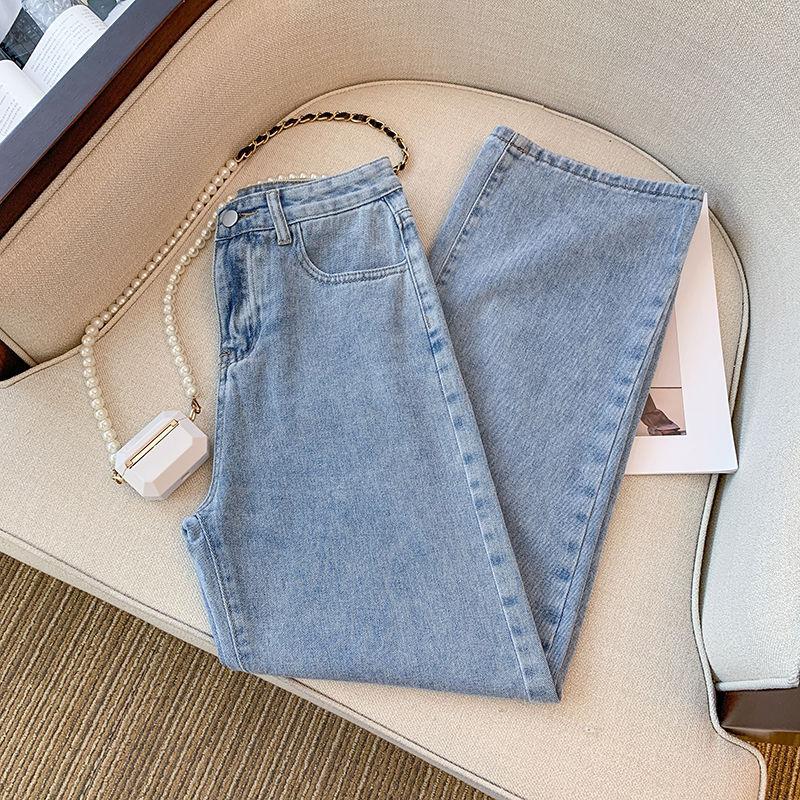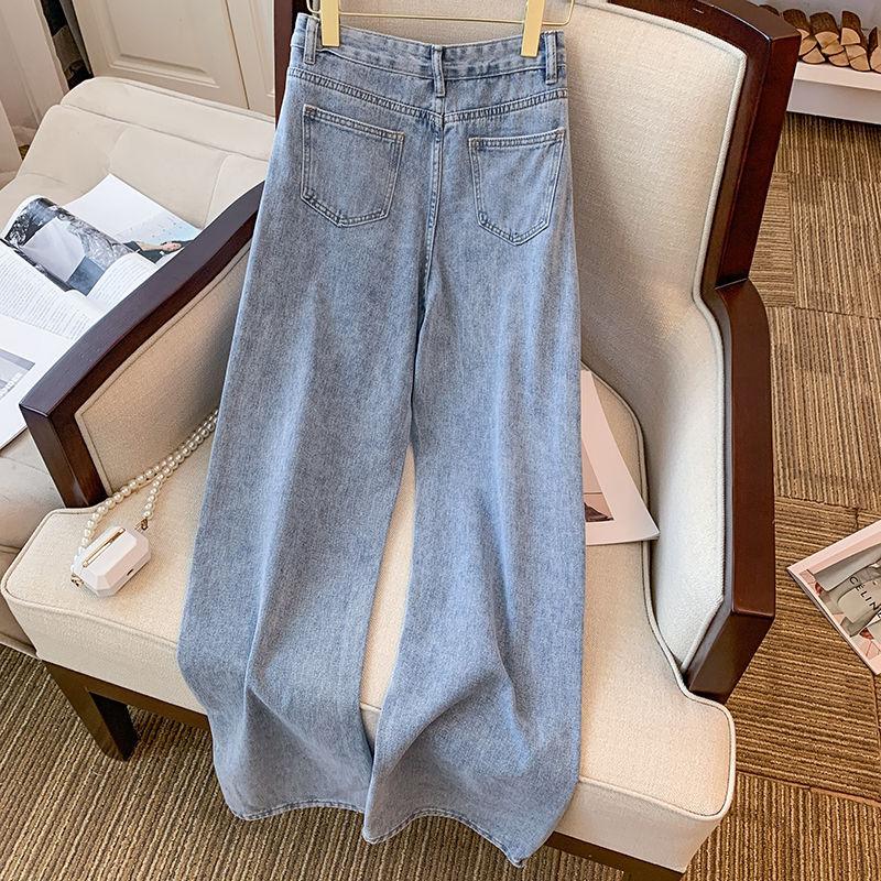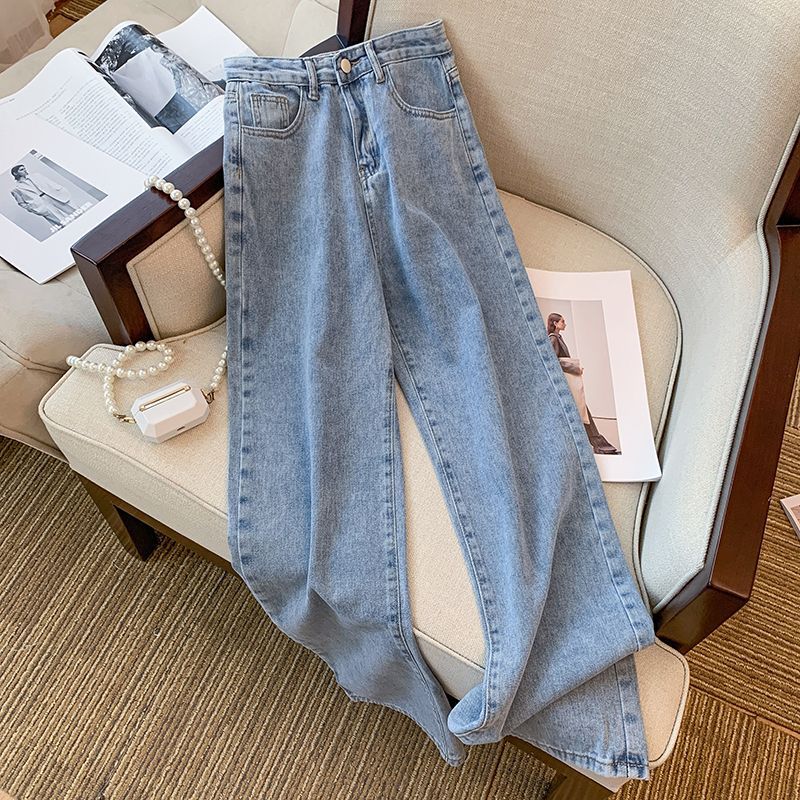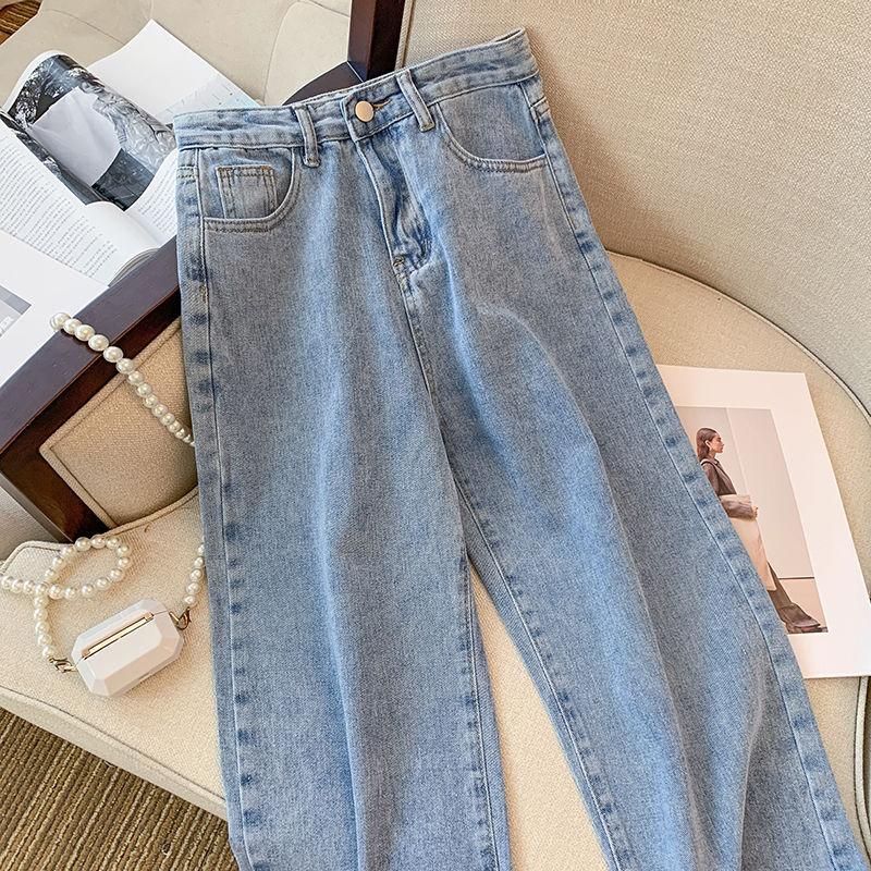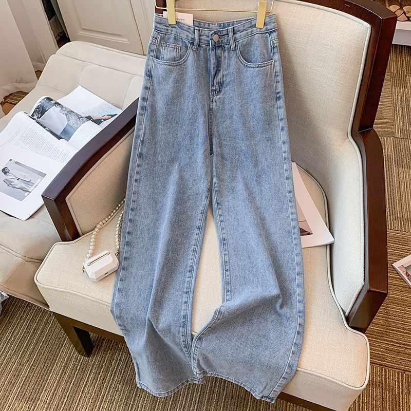 Pantalones vaqueros de cintura alta y pierna ancha para mujer, pantalones rectos de primavera y otoño 2024, nuevo estilo, pantalones pequeños, holgados y ajustados.