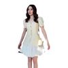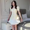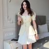 2024 verano nuevo Europeo y Americano Amazon transfronterizo dulce cuello cuadrado manga corta abotonado top falda plisada de cintura alta traje