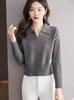 Camisa de punto, suéter pequeño de cintura alta para mujer, otoño e invierno, corta, nueva, estilo occidental, con solapa, adelgazante, camisa de base de punto