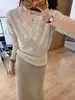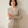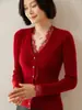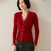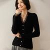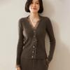 Cárdigan de Cachemira de Encaje con Cuello en V para Mujer Otoño e Invierno Look Adelgazante Tejido de Punto Top con Tejido de Punto