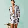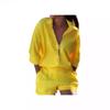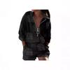 2024 Talla Grande Traje de Moda Nuevo para Mujer Europa y América Transfronterizo Amazon Estampado Cierre Cremallera Manga Larga Top Shorts