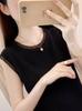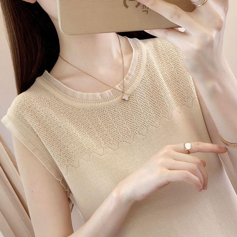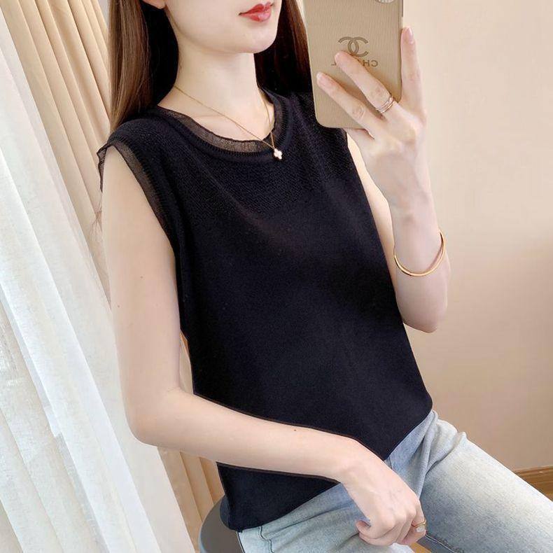 Camisola de verano para mujer, nueva camiseta holgada de punto de seda helada interior, camiseta sin mangas, prenda exterior que combina con todo.