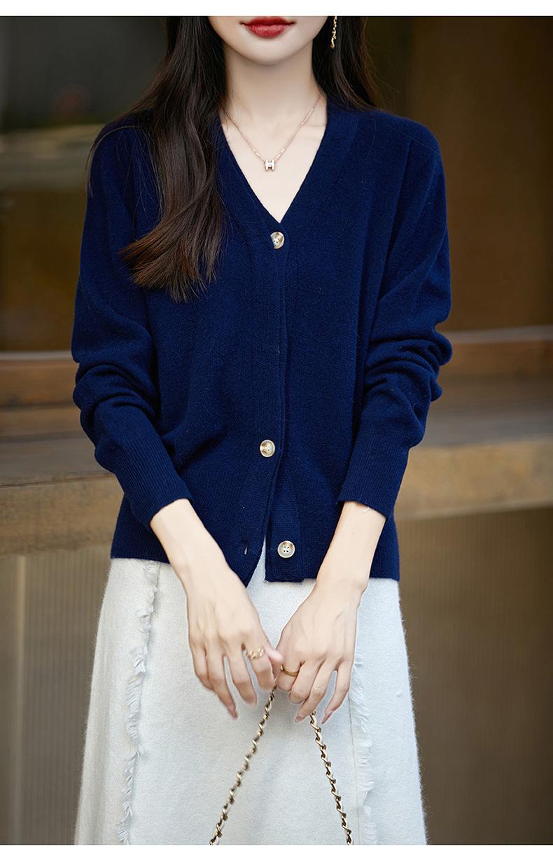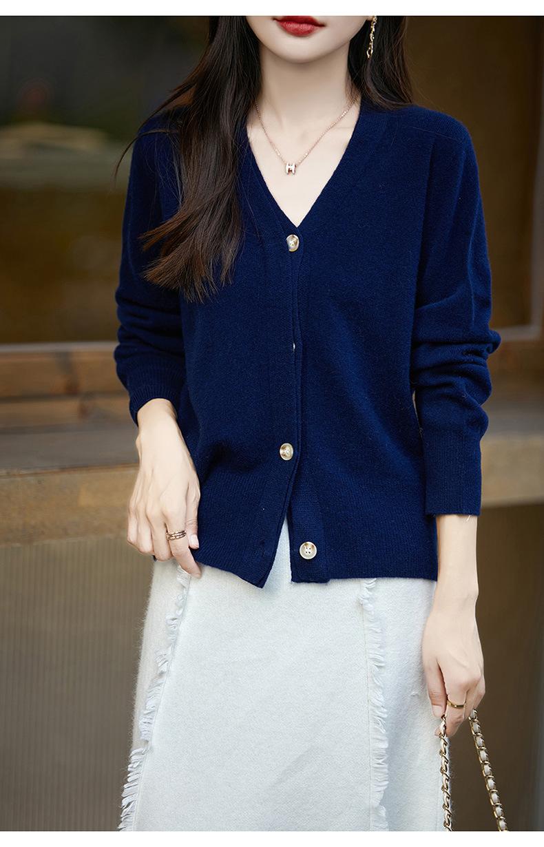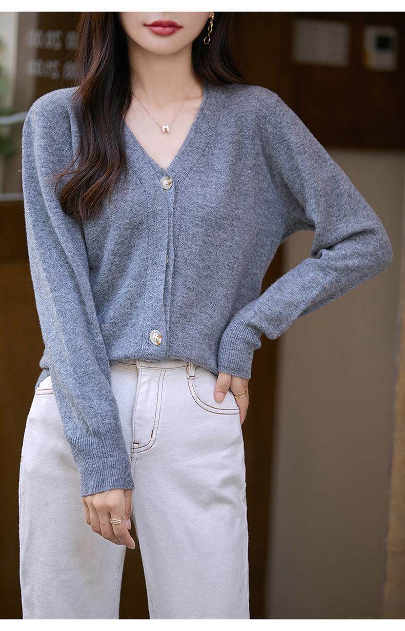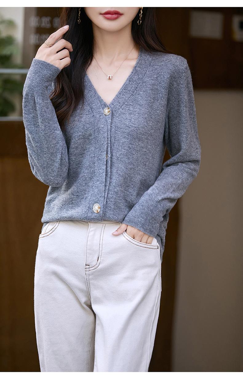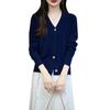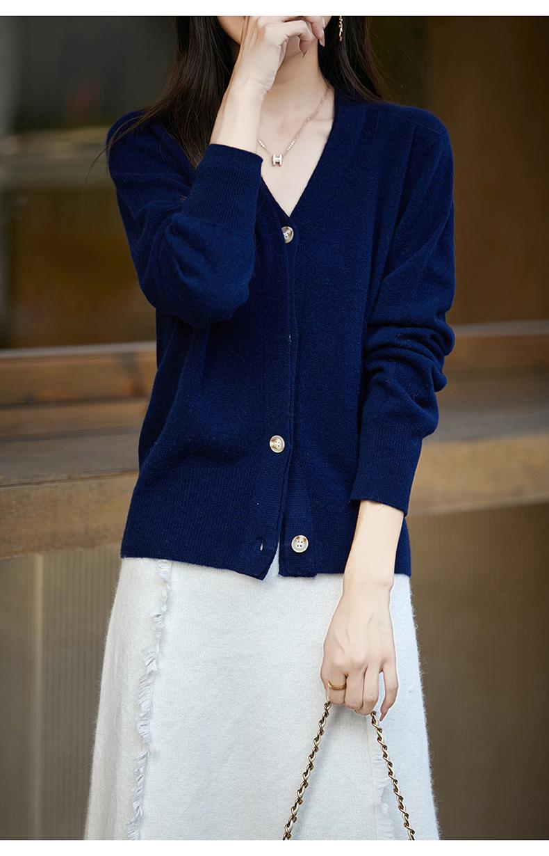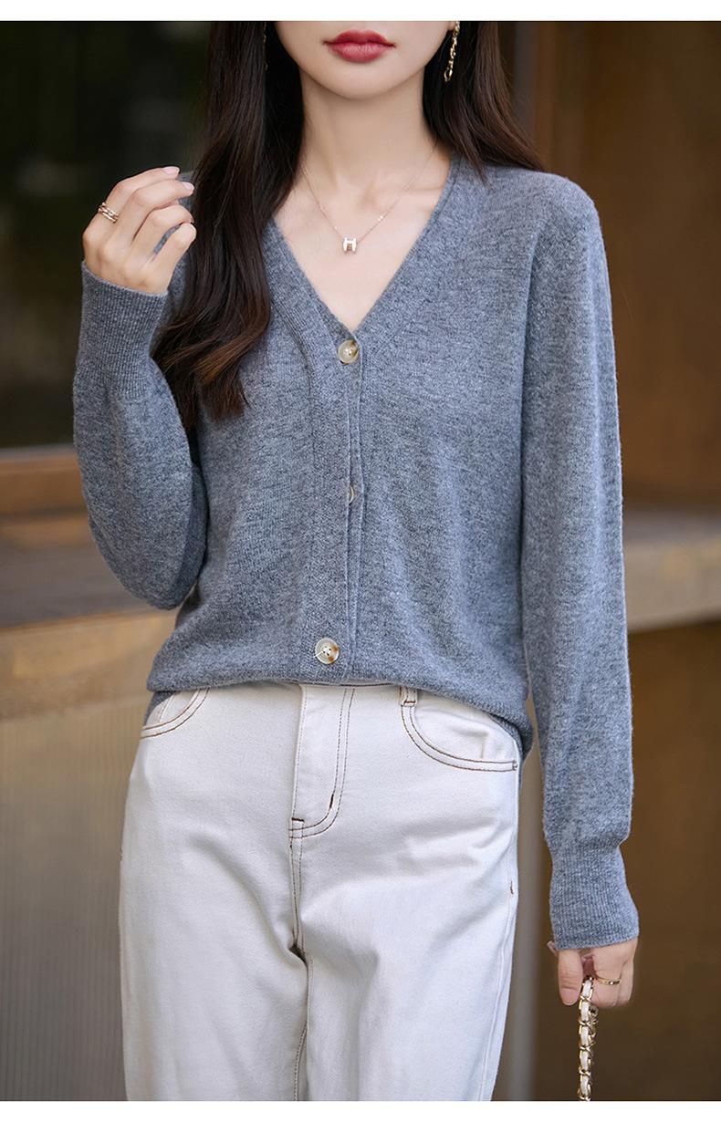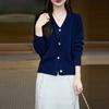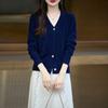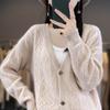 Cárdigan de lana pura 100% para mujer, otoño e invierno, cuello en V, cárdigan de punto, suéter elegante y suelto.