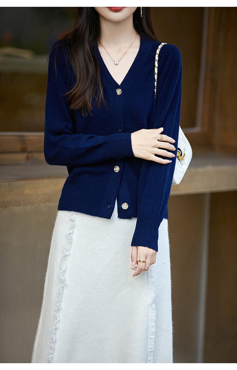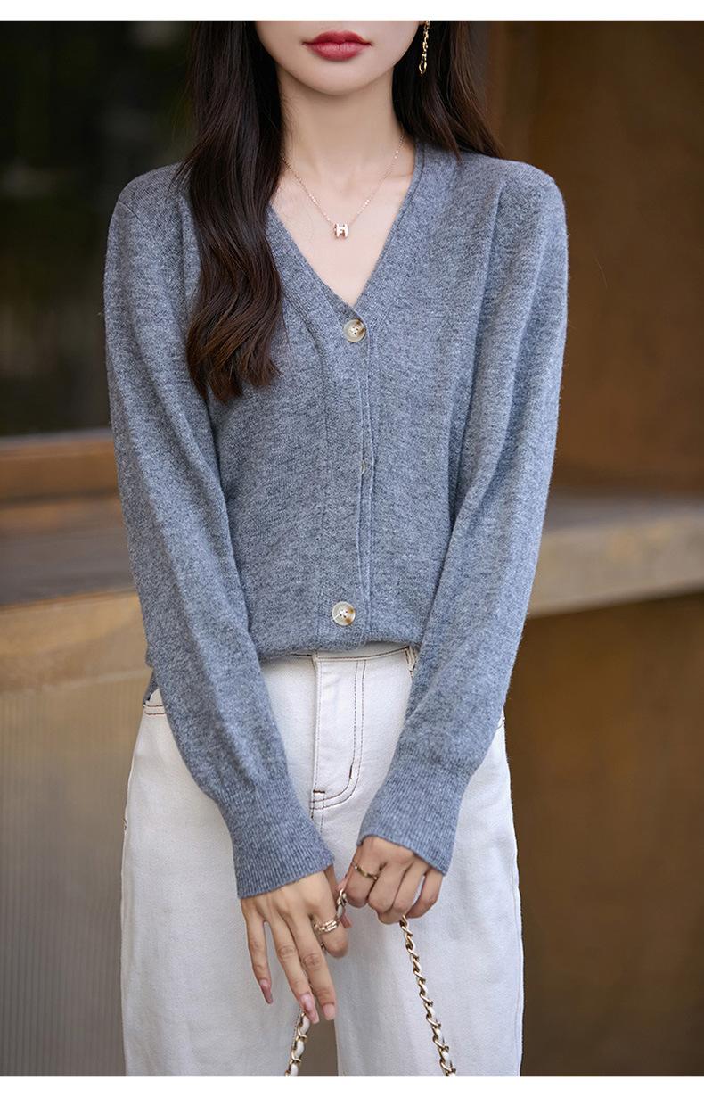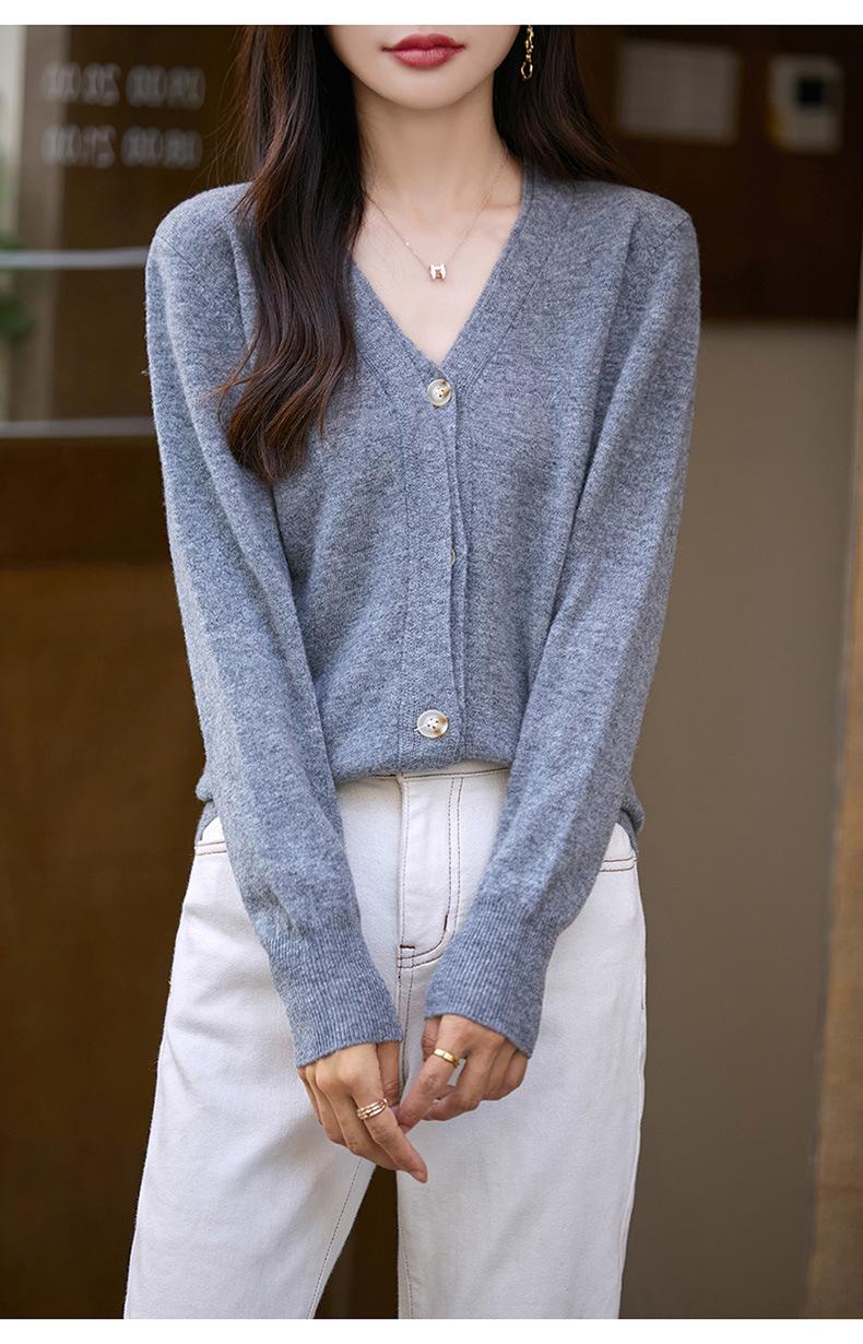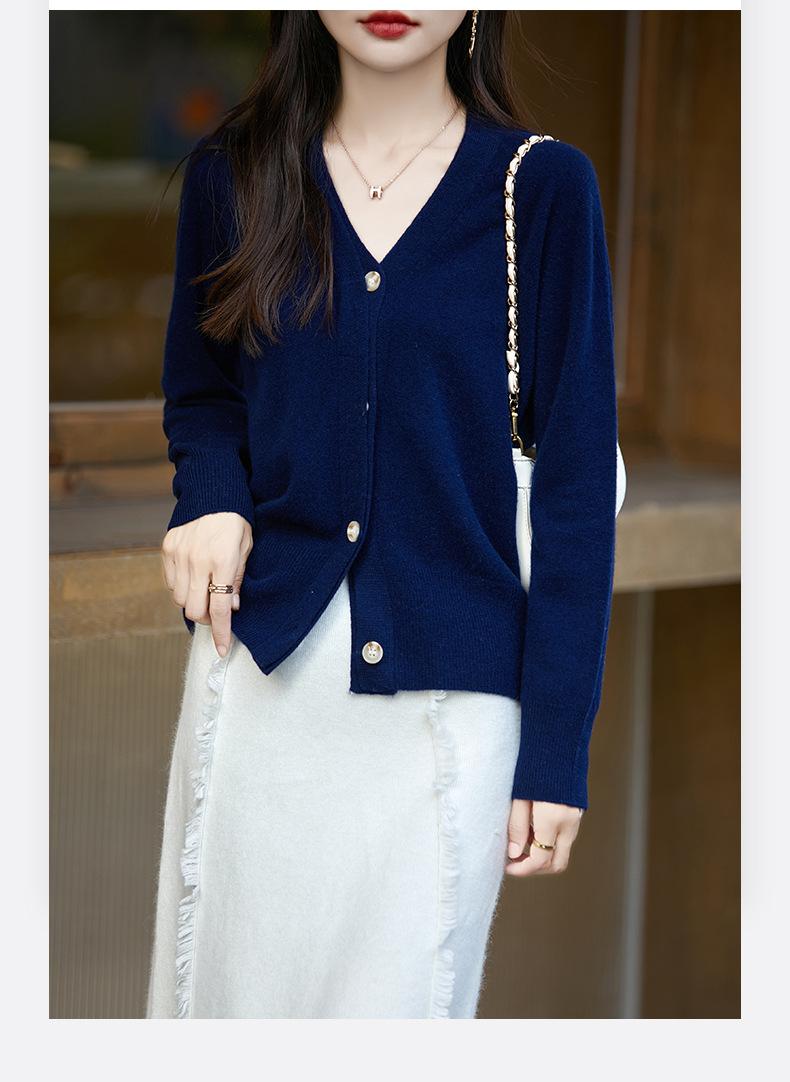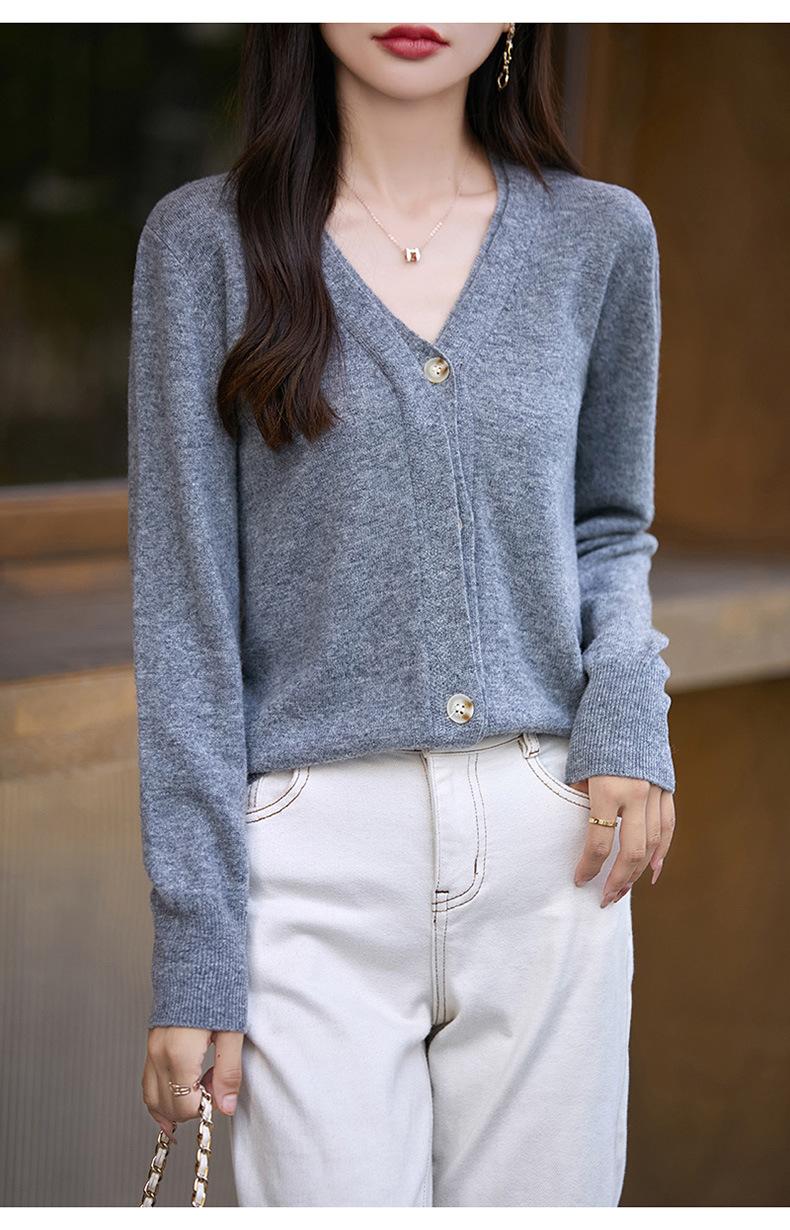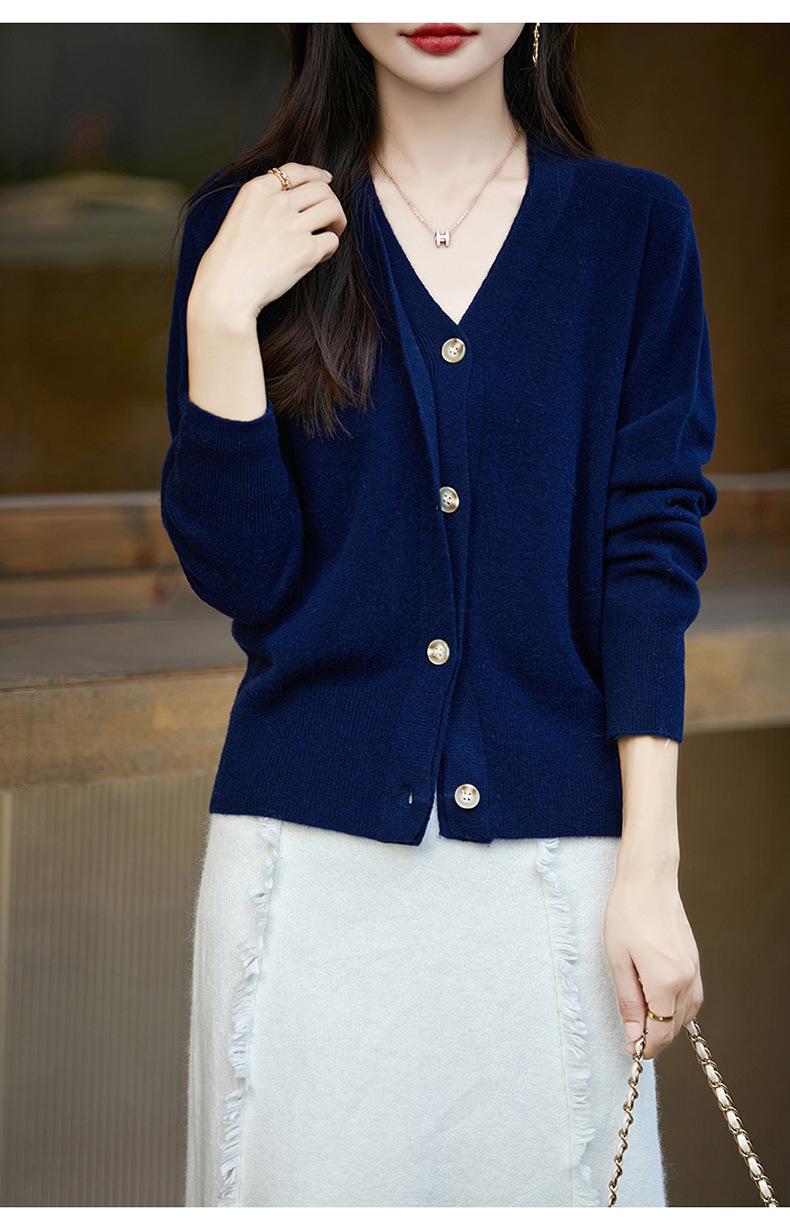 Cárdigan de lana pura 100% para mujer, otoño e invierno, cuello en V, cárdigan de punto, suéter elegante y suelto.