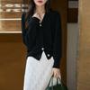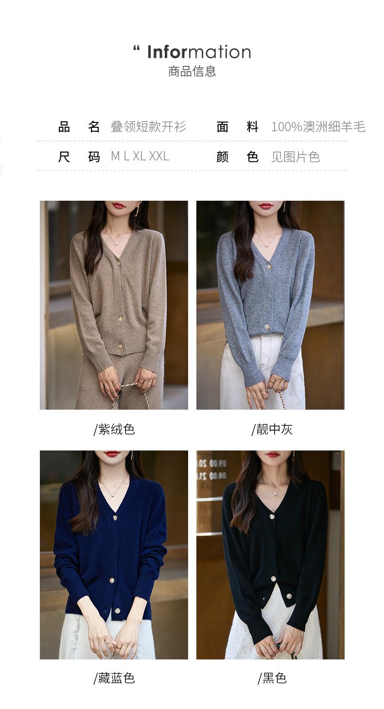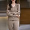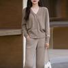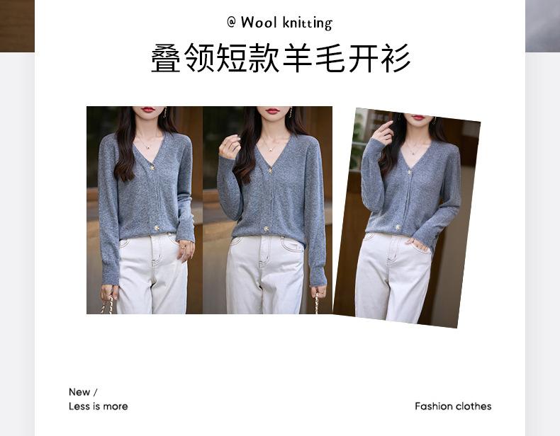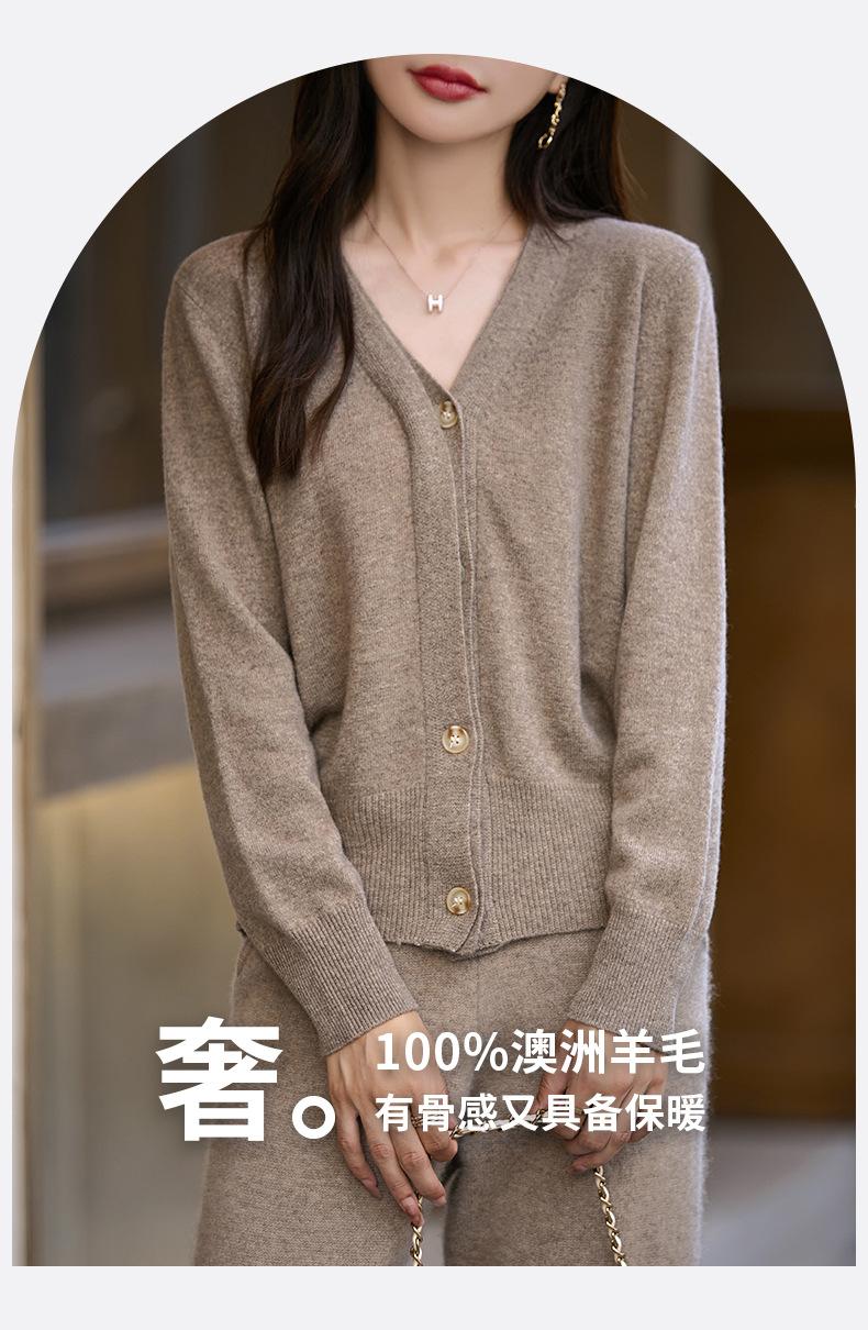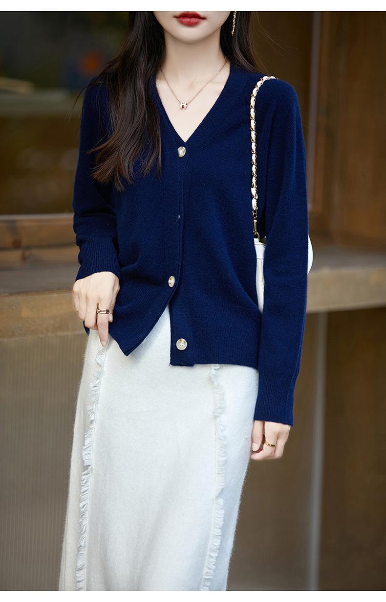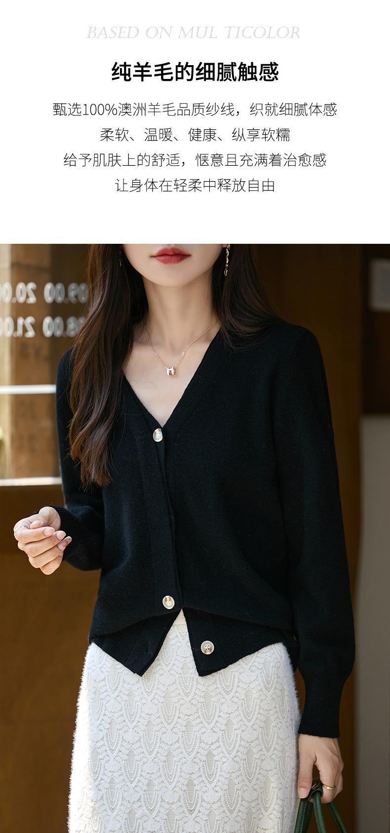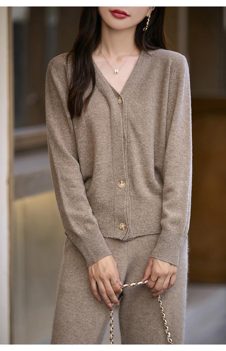 Cárdigan de lana pura 100% para mujer, otoño e invierno, cuello en V, cárdigan de punto, suéter elegante y suelto.