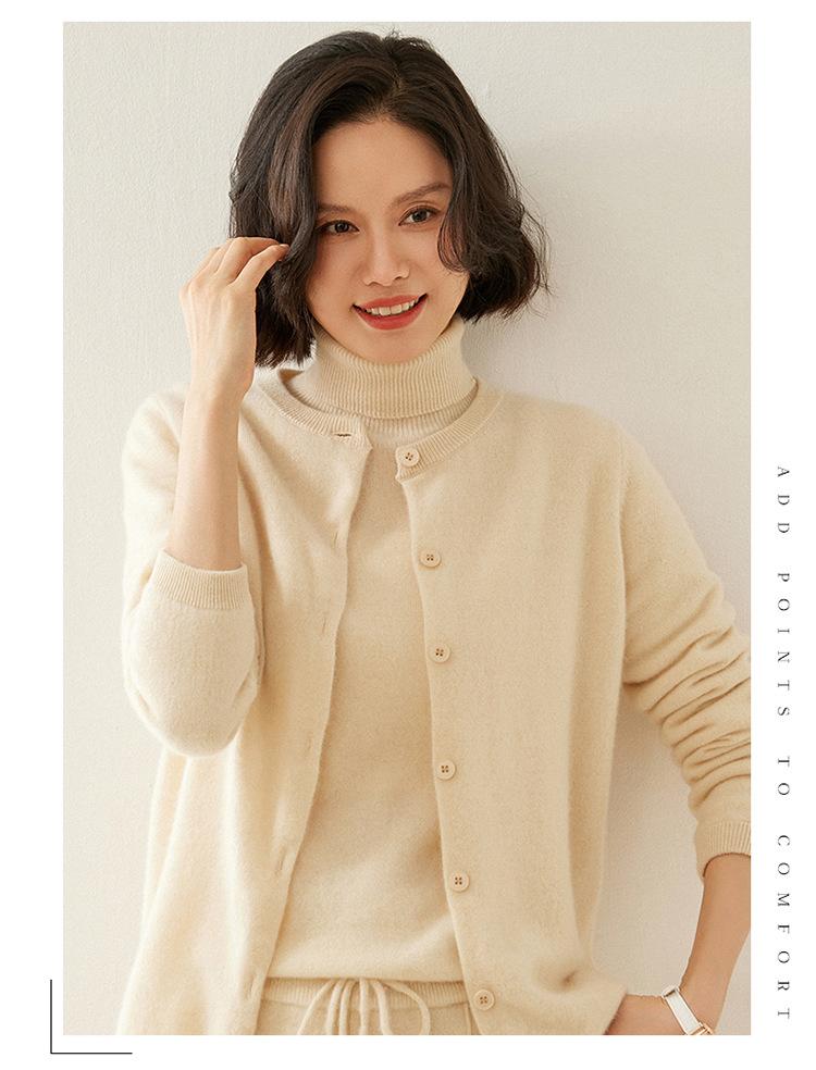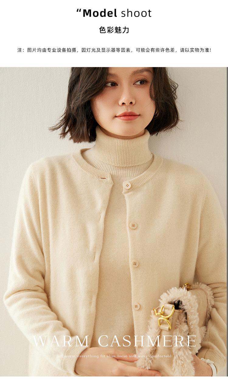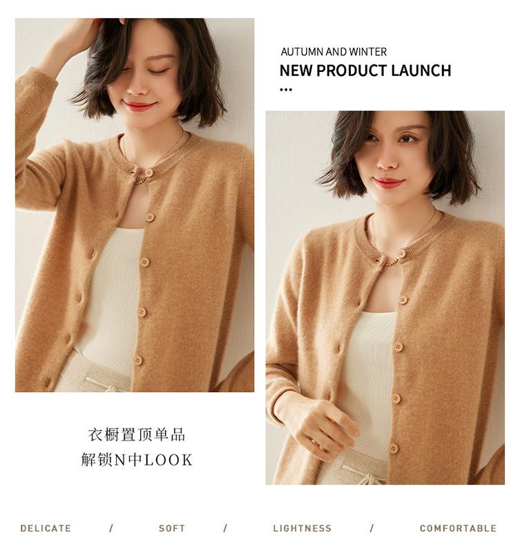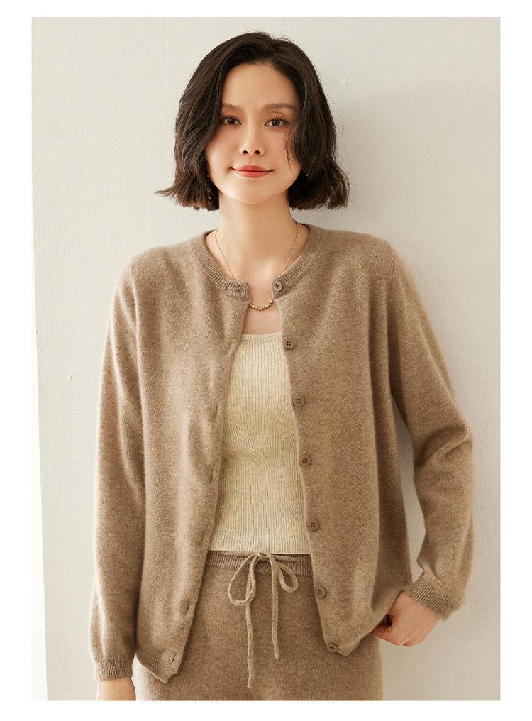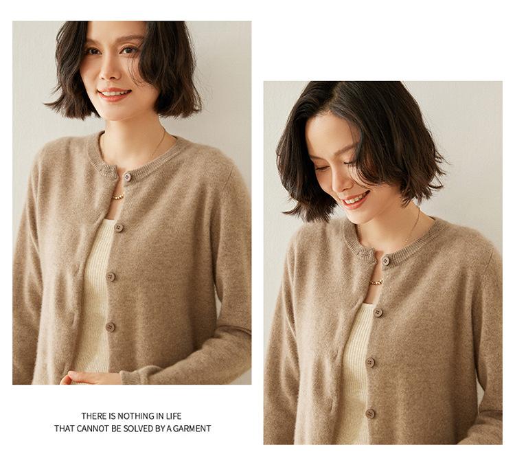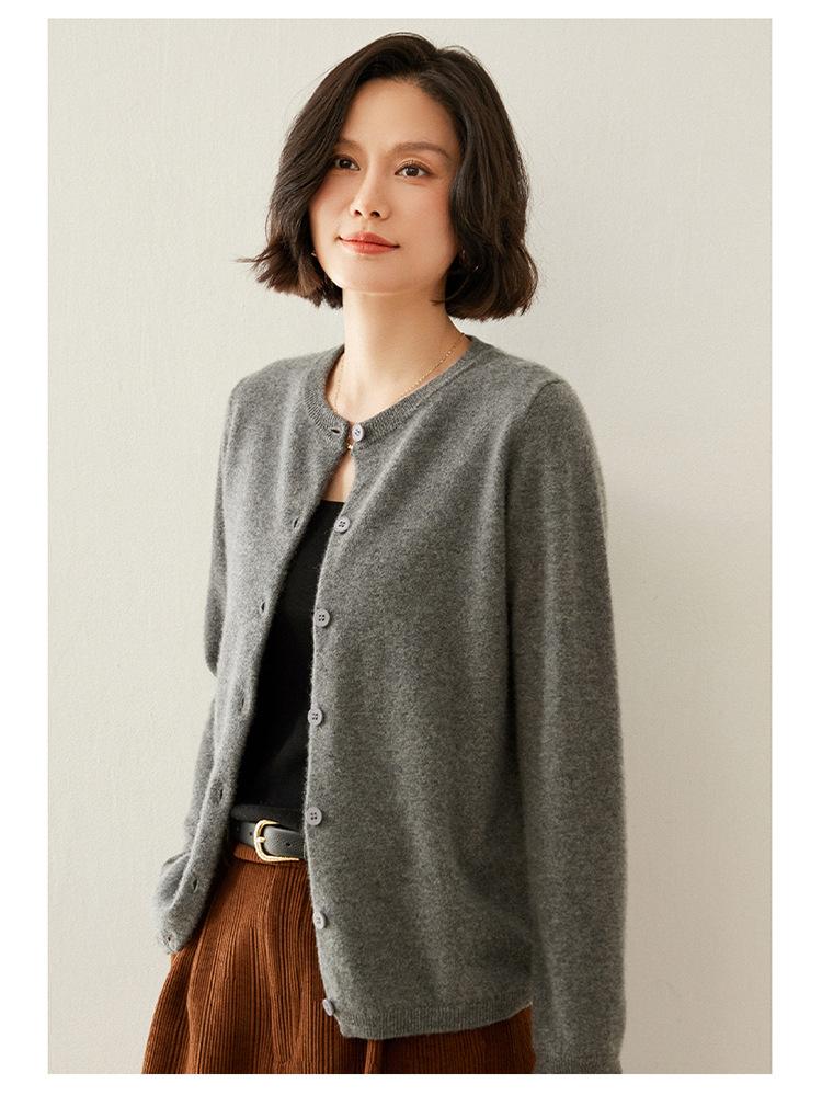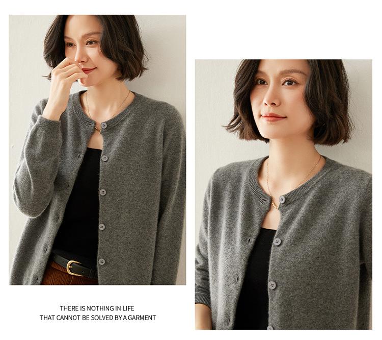 Suéter de punto para mujer, cárdigan informal de cachemira de color liso, cuello redondo, lana, otoño e invierno, 2024