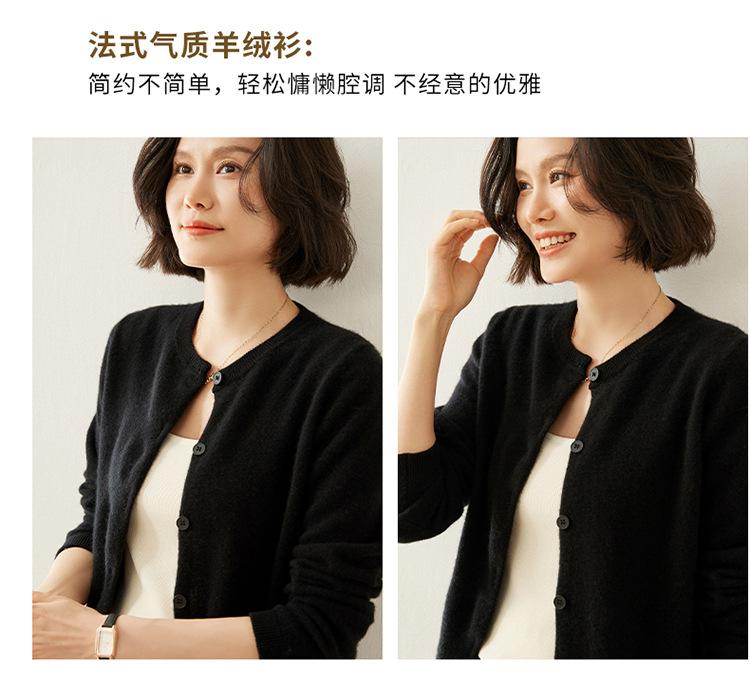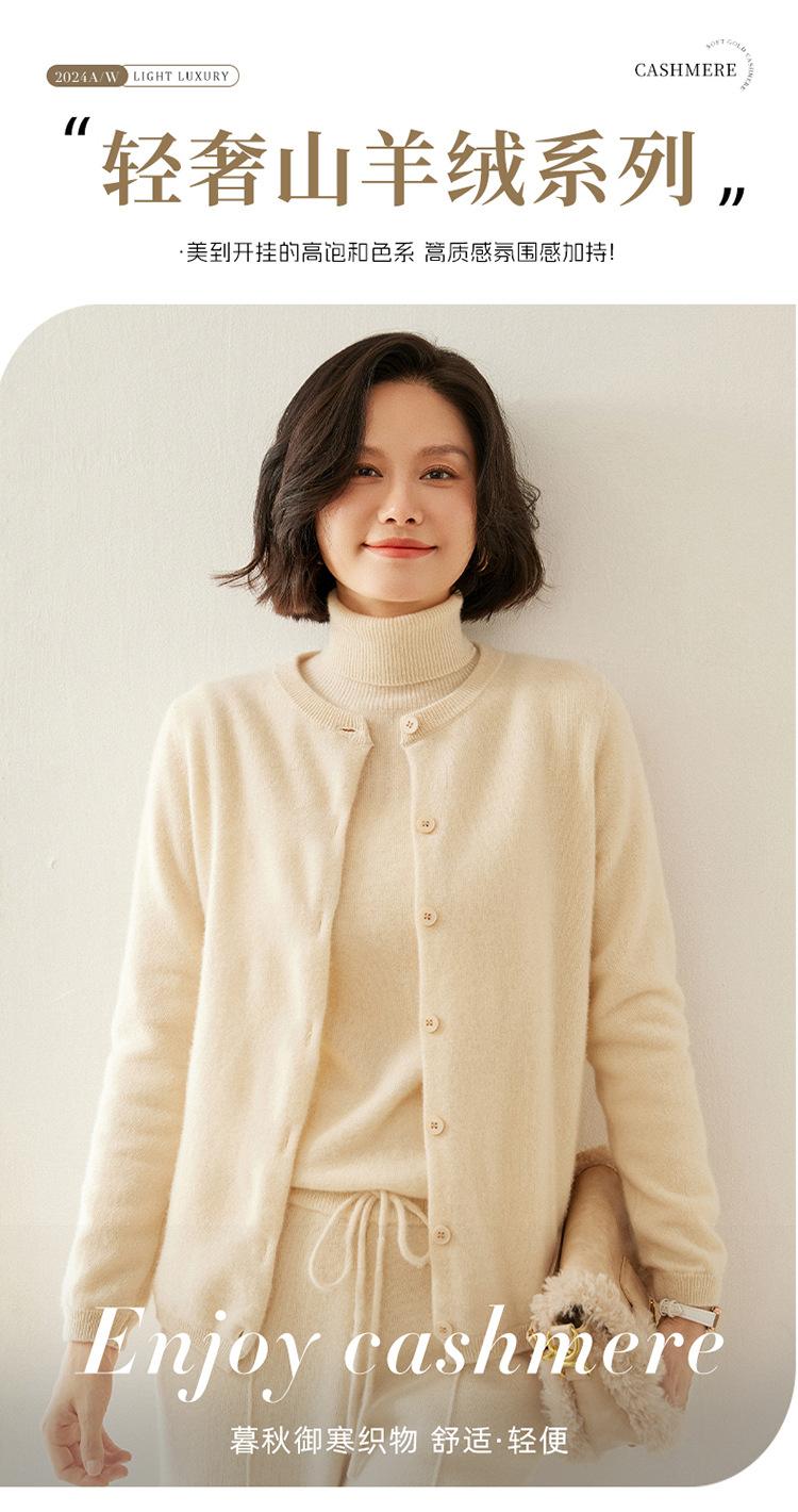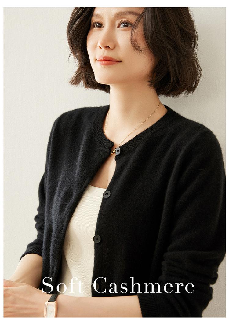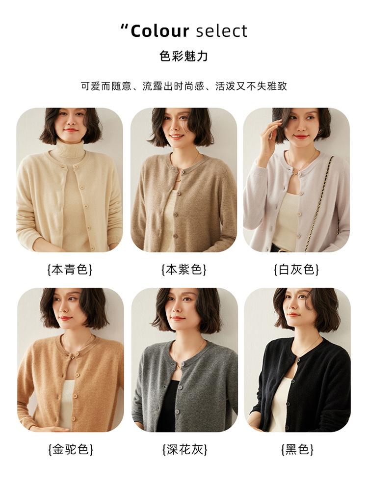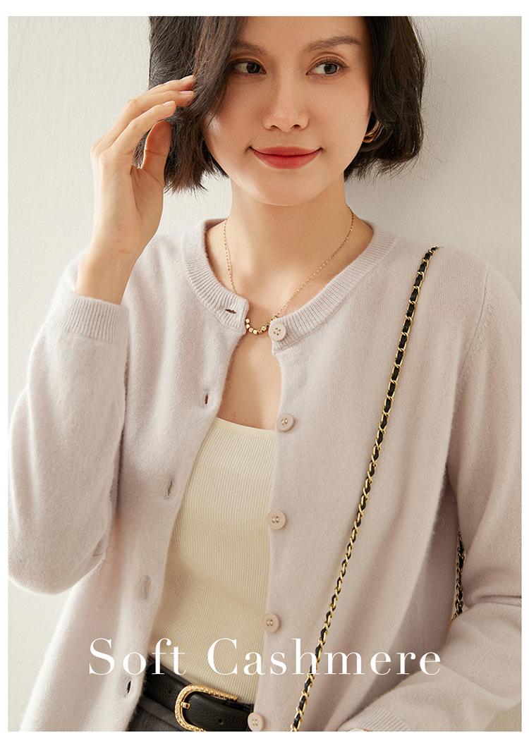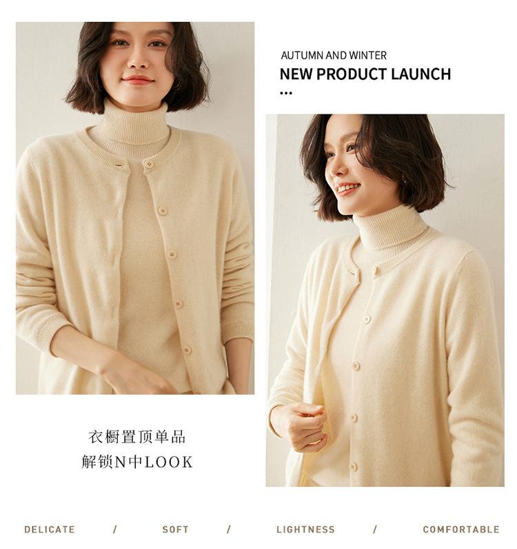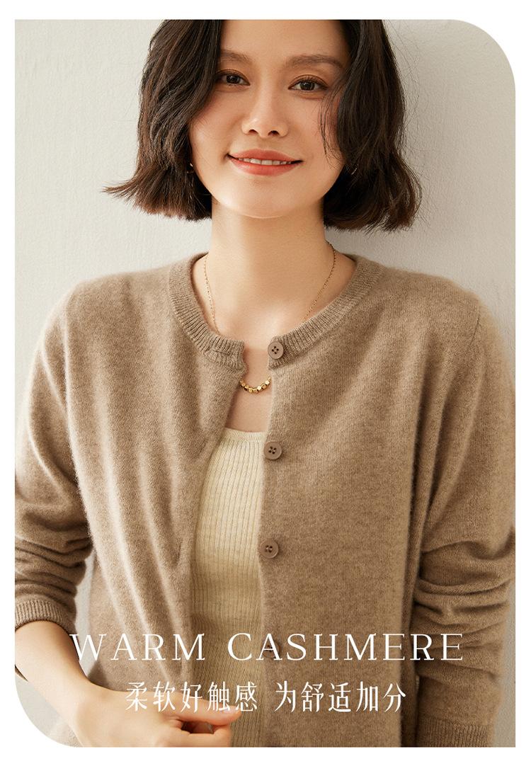 Suéter de punto para mujer, cárdigan informal de cachemira de color liso, cuello redondo, lana, otoño e invierno, 2024