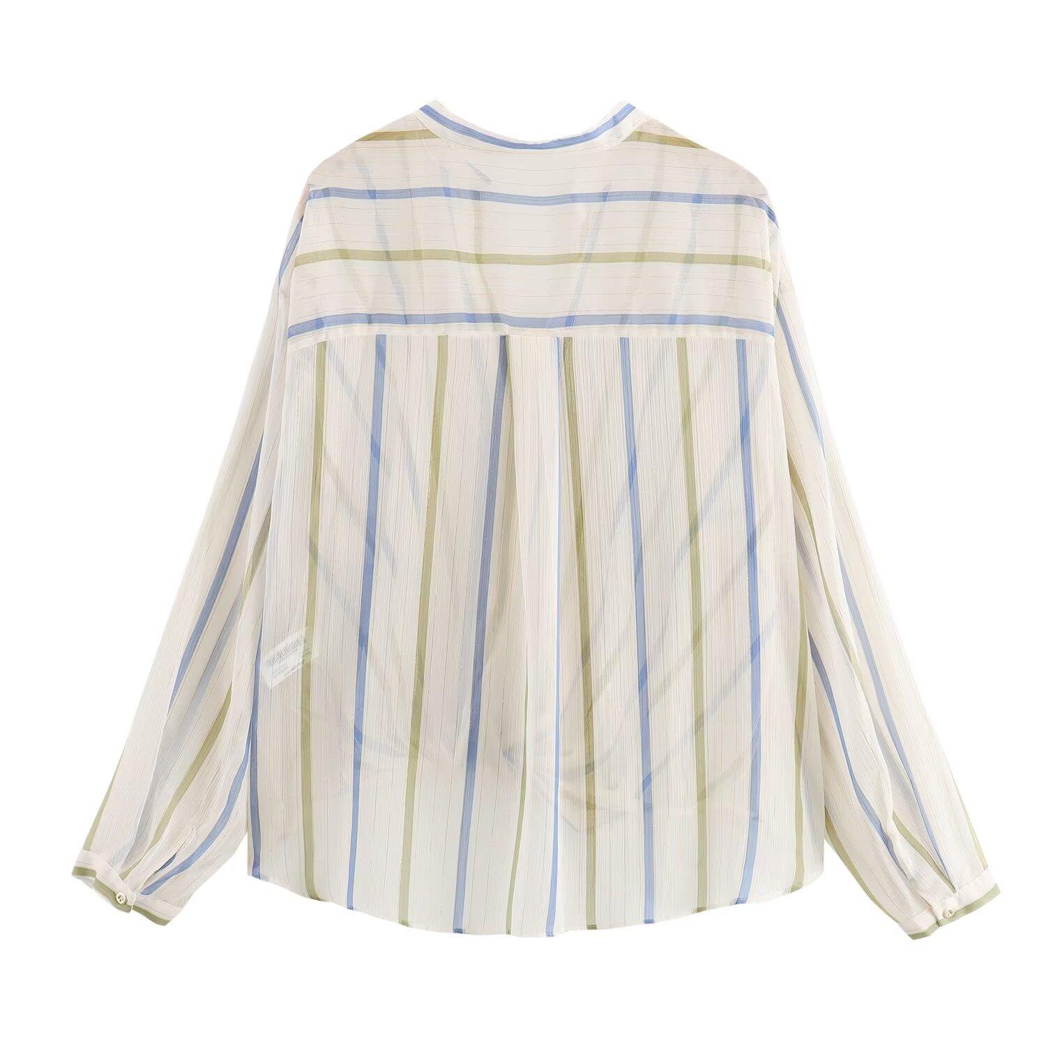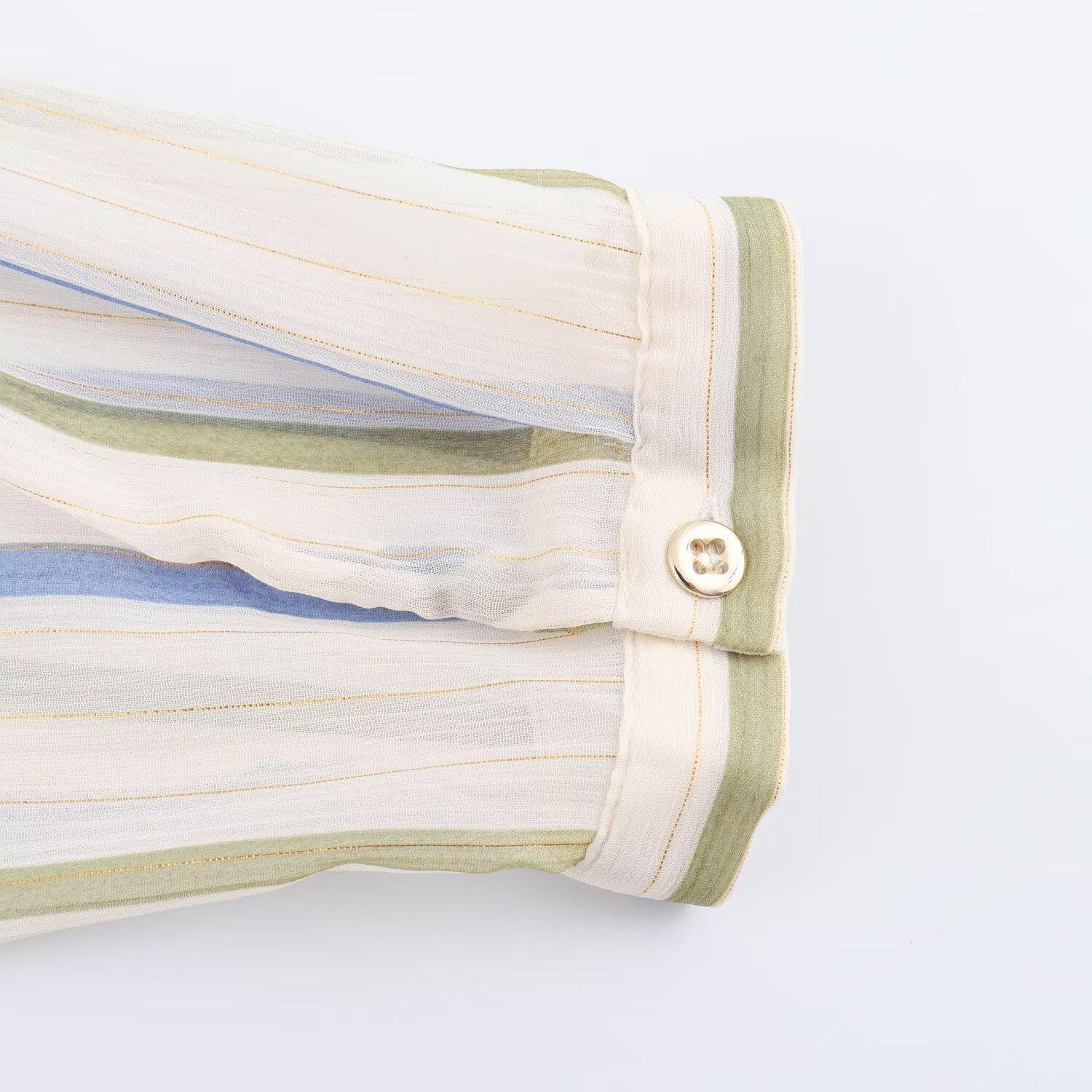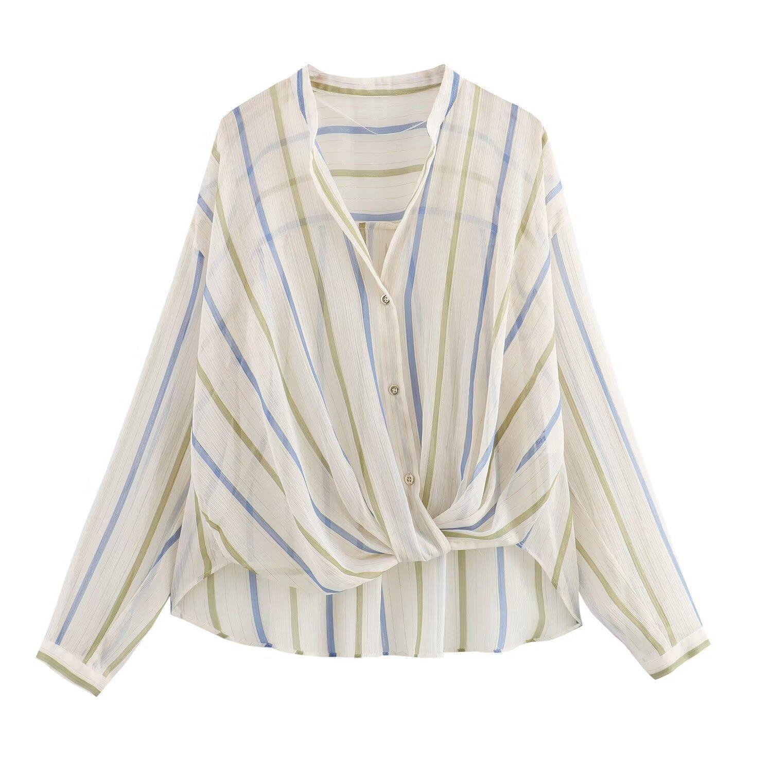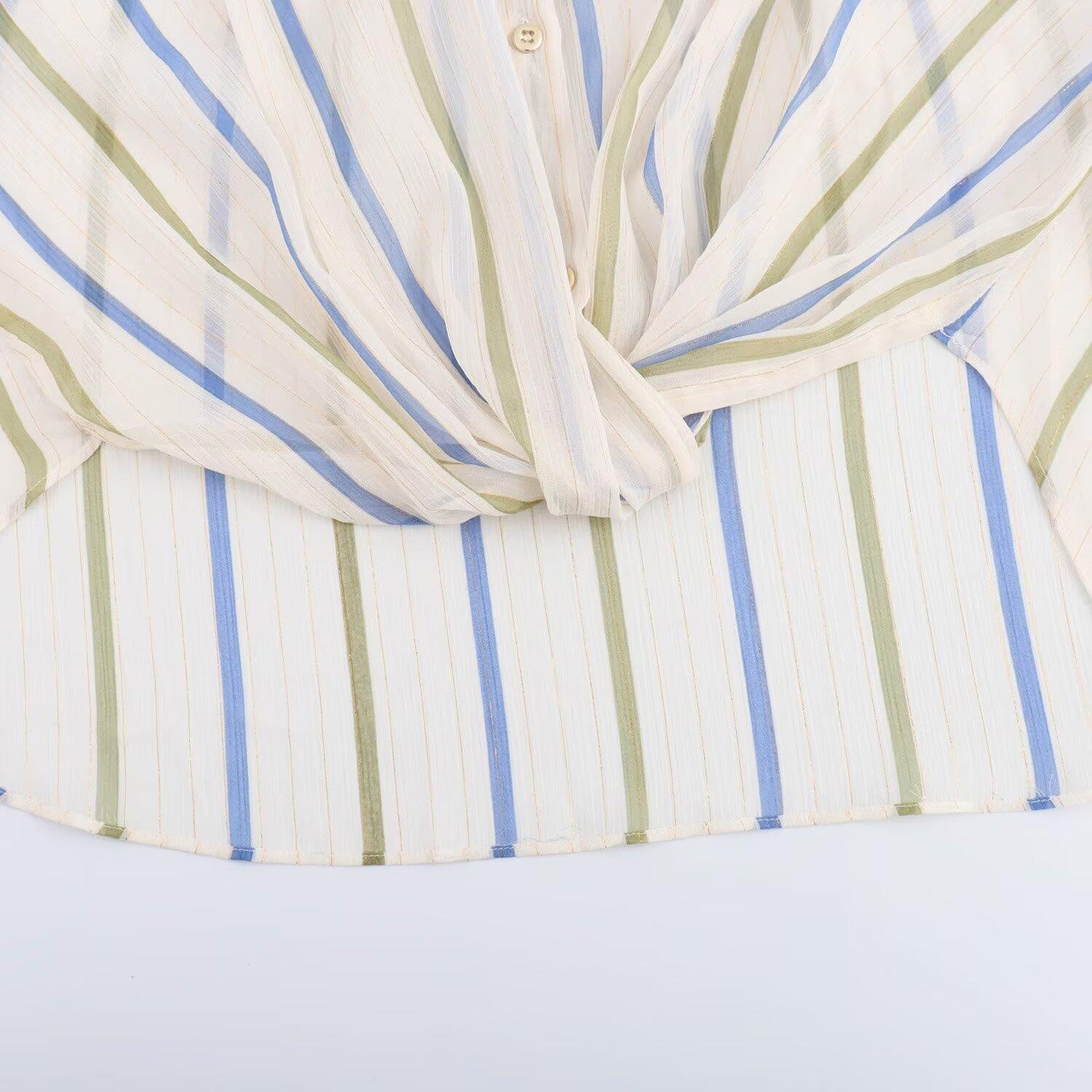Camisa de Manga Larga Holgada Casual para Exterior Otoño 2024 para Mujer Europea y Americana con Nudo y Raya Metálica F6676