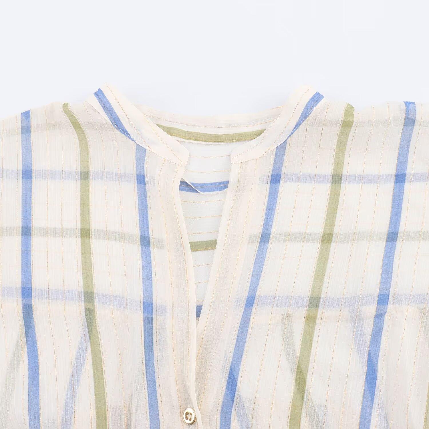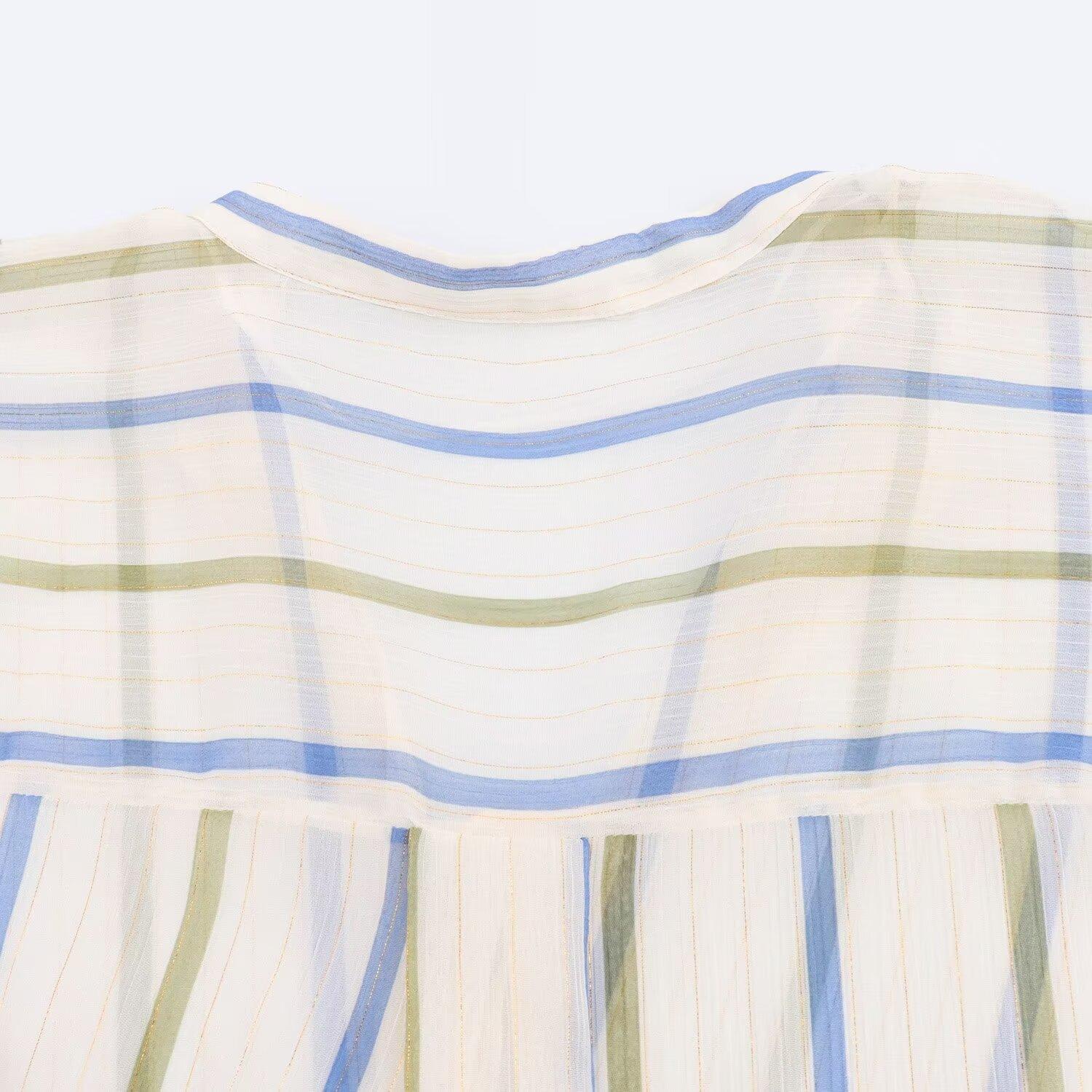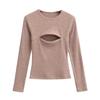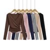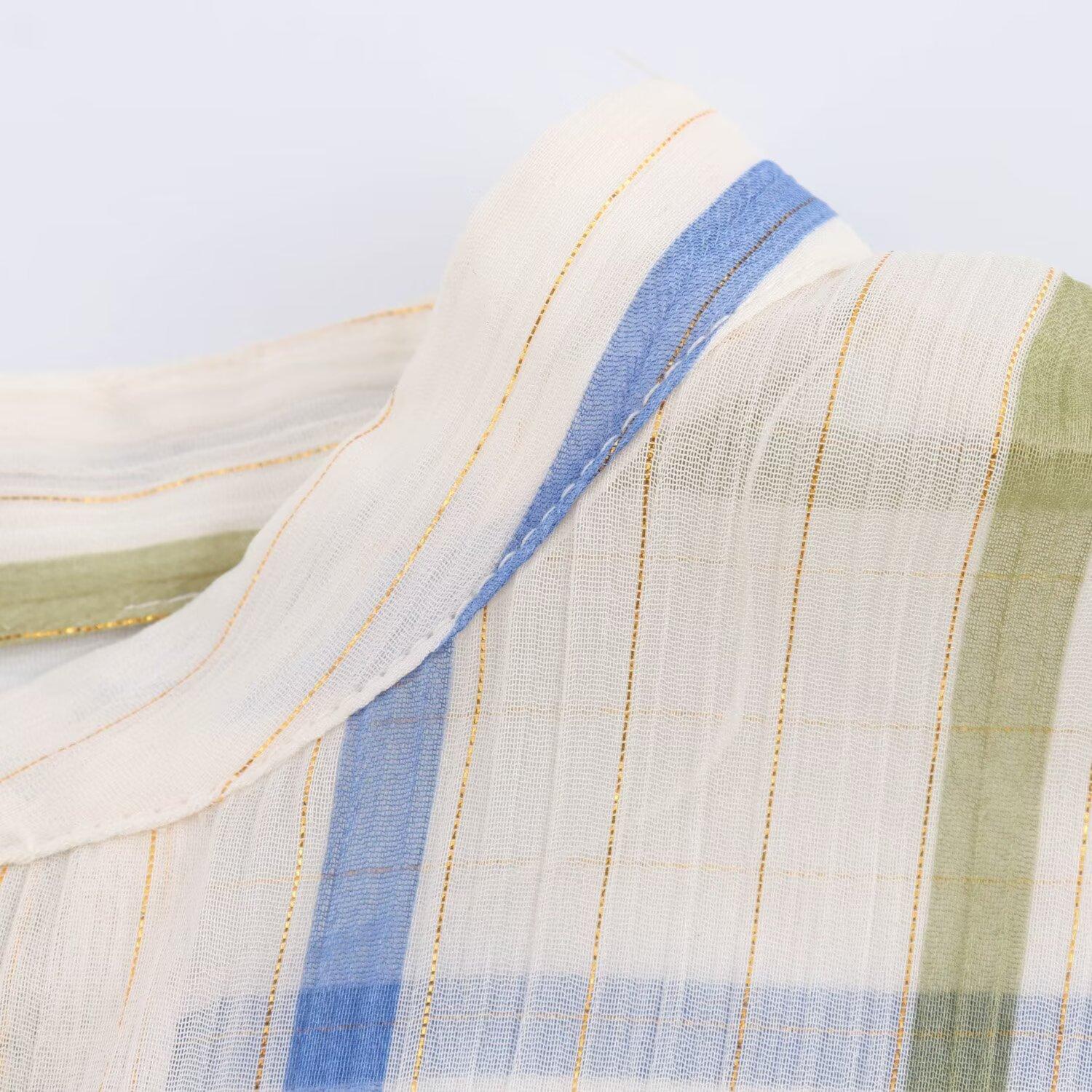Camisa de Manga Larga Holgada Casual para Exterior Otoño 2024 para Mujer Europea y Americana con Nudo y Raya Metálica F6676