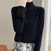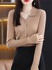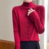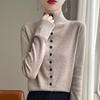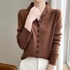 Cárdigan de punto de lana peinada para mujer, chaqueta de manga larga con hebilla, informal, sencilla y elegante, de color liso, con cuello medio alto, novedad de principios de otoño