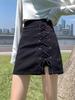 Falda corta de verano para mujer, cintura alta, corte A, ajustada, primavera 2024, nueva moda, falda negra tipo tubo para estudiantes.