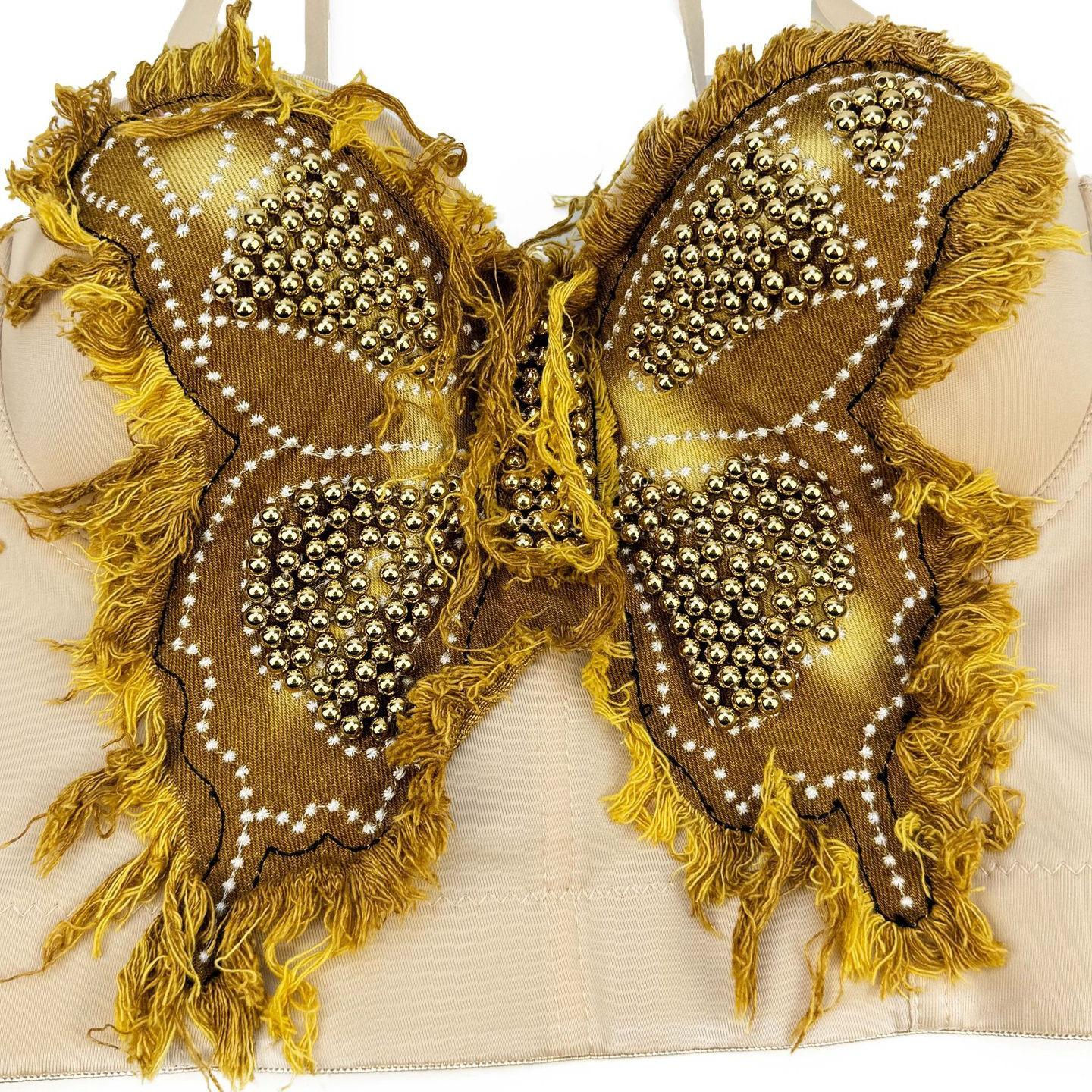 Ropa Exterior de Alta Gama para Mujer de Otoño Temprano Transfronteriza Europea y Americana Corsé Top de Tubo Mariposa con Tirantes Ropa Exterior Corsé Alto con Ballenas