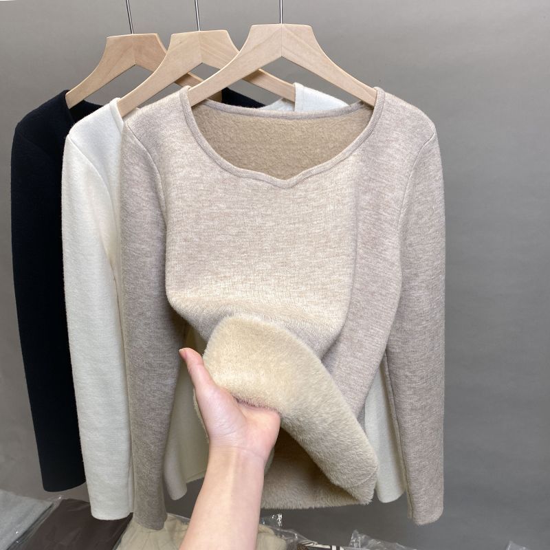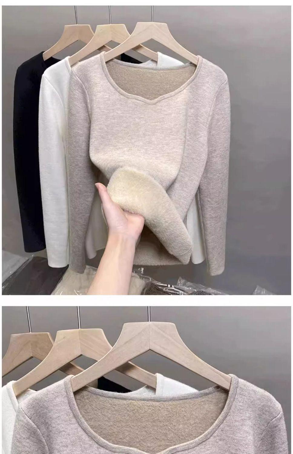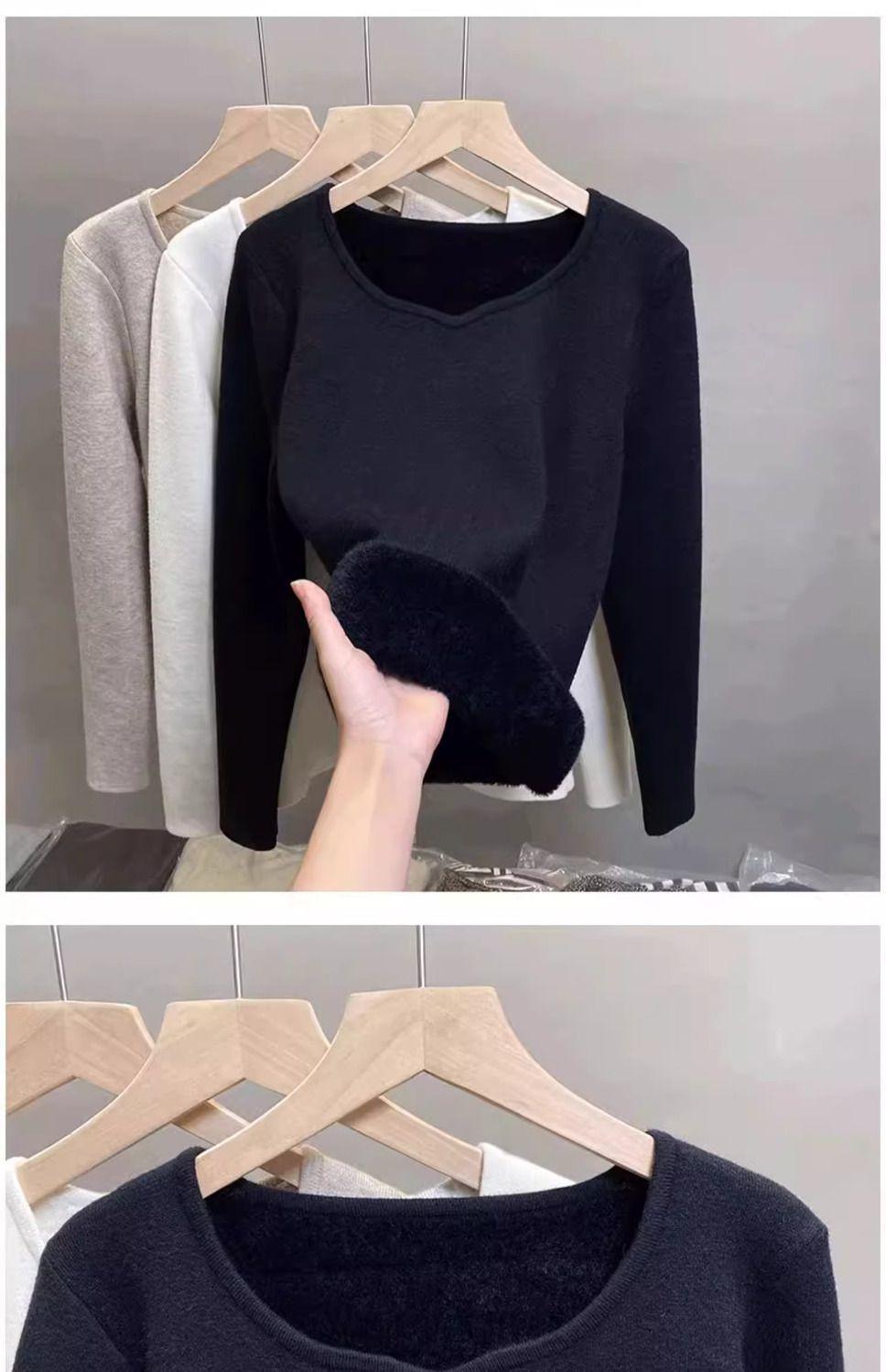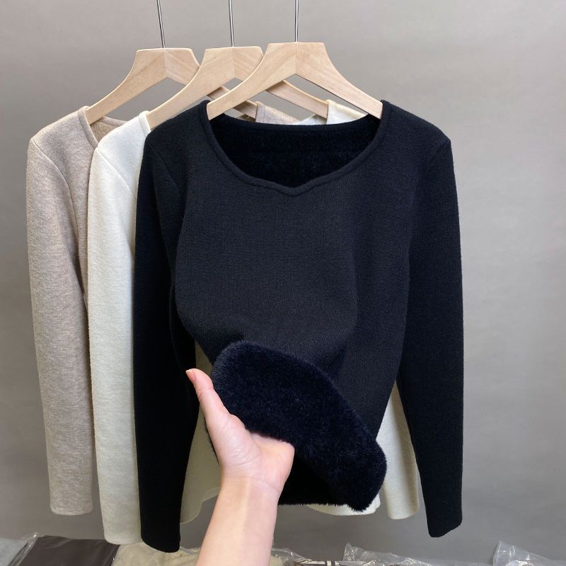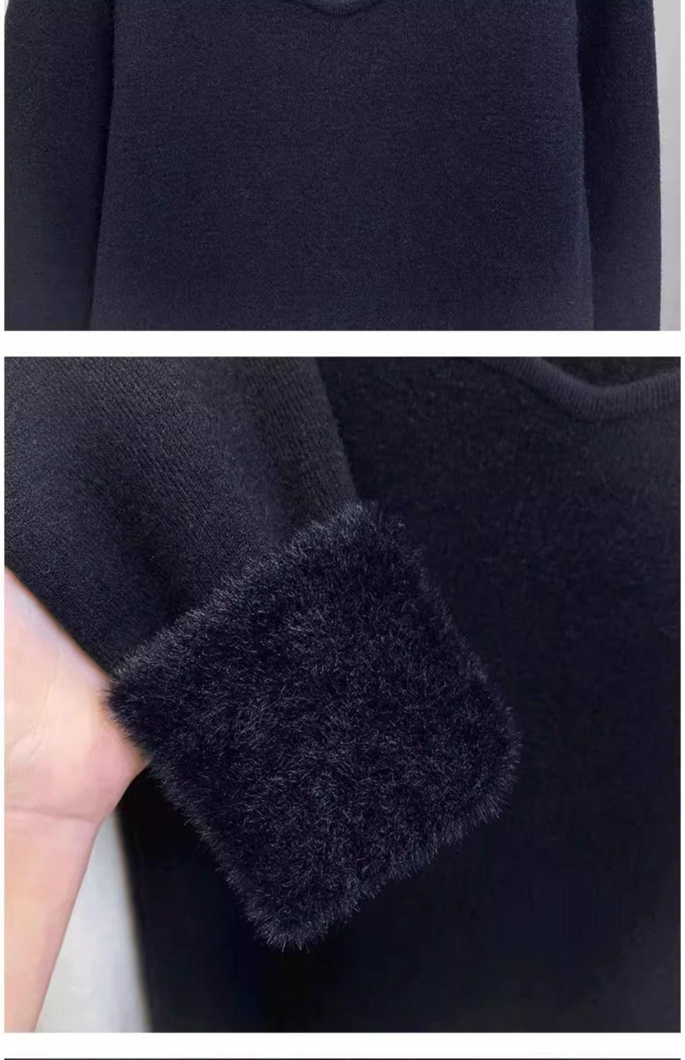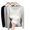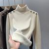 Suéter de punto grueso forrado de vellón con suéter interior cálido para mujer Invierno 2024 Nuevo cuello bajo de una pieza de terciopelo estilo occidental camisa base
