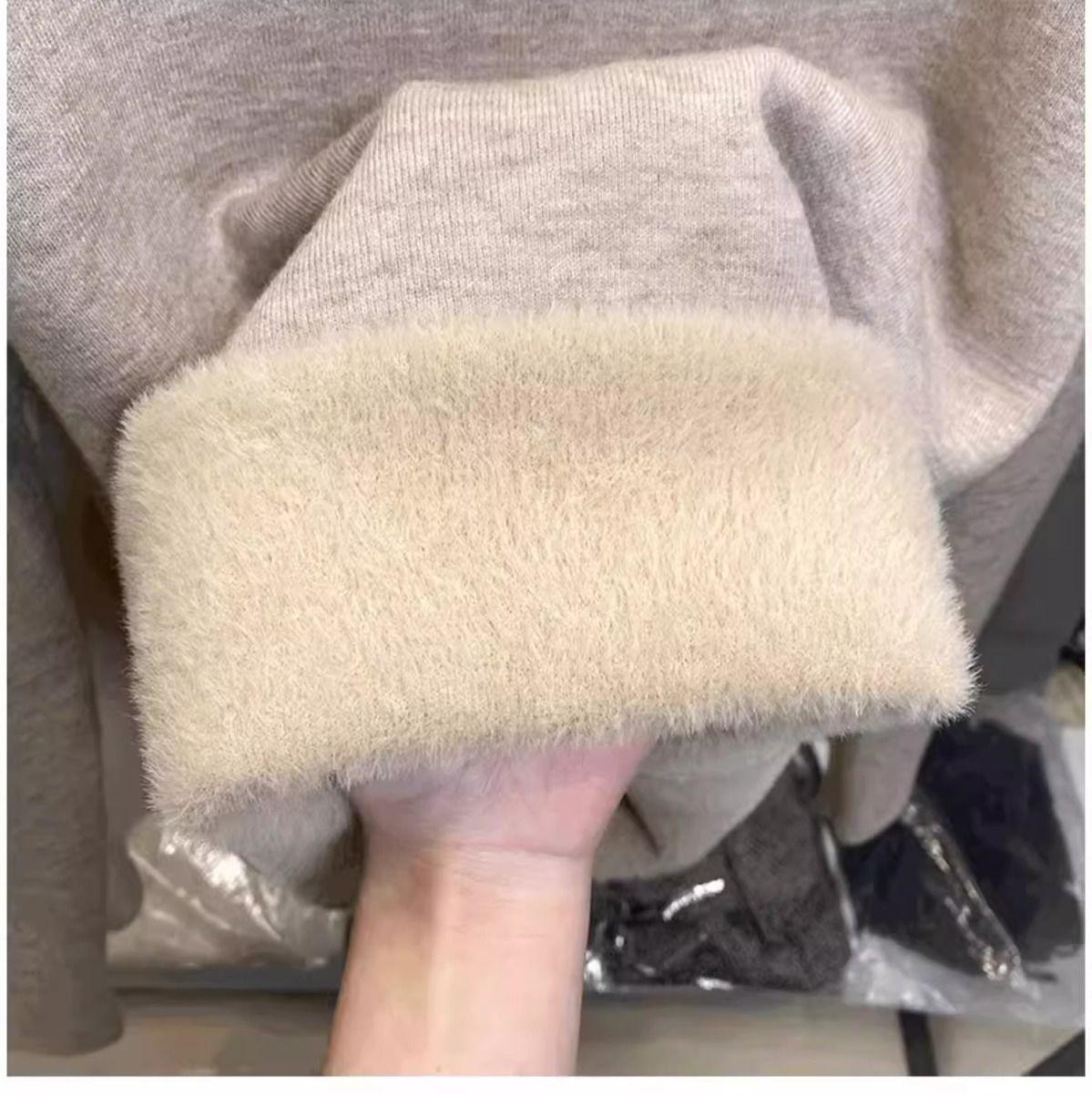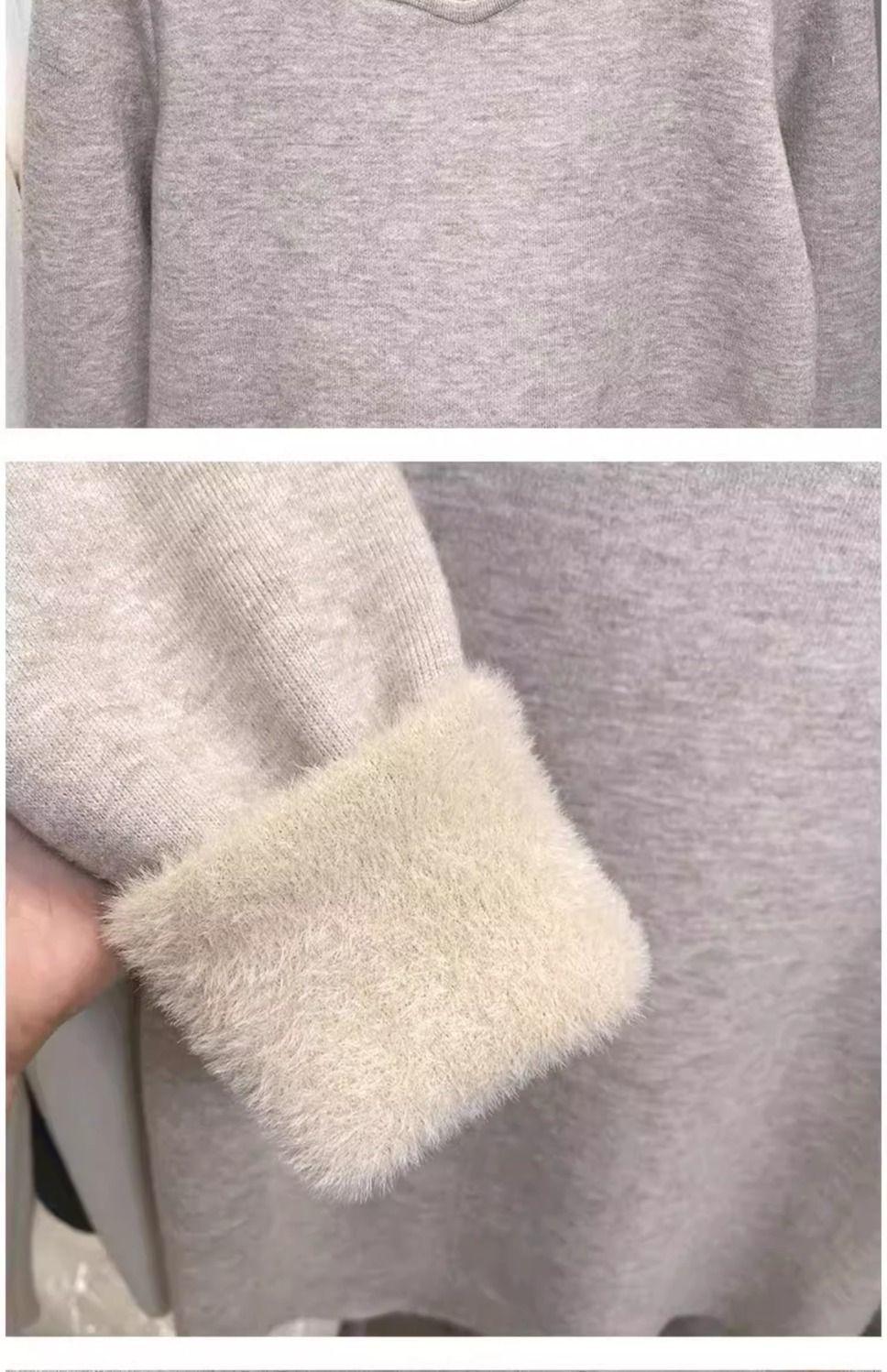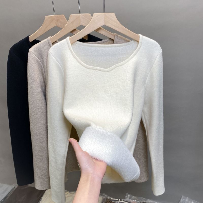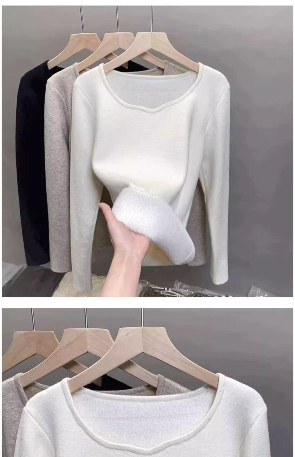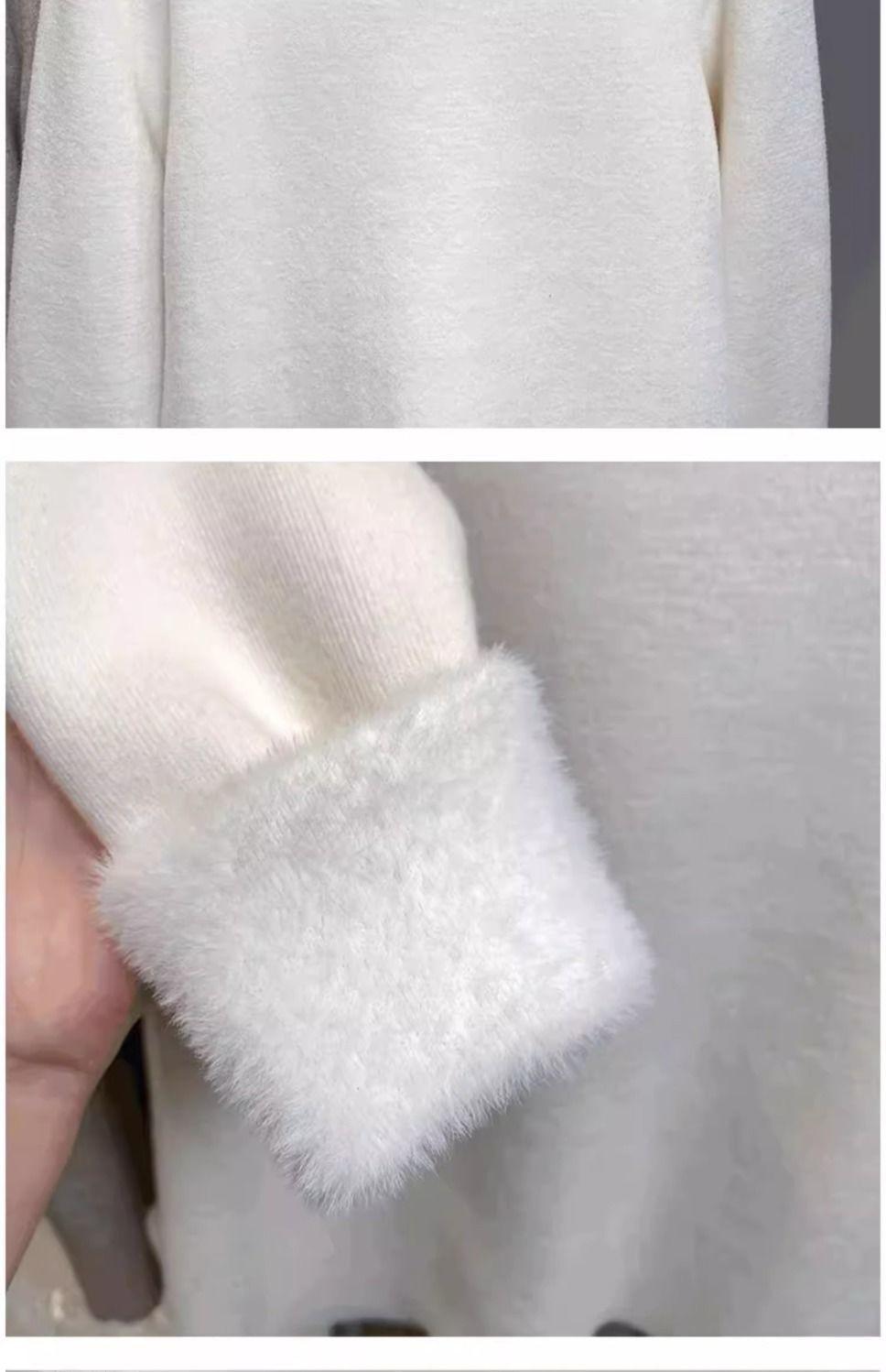 Suéter de punto grueso forrado de vellón con suéter interior cálido para mujer Invierno 2024 Nuevo cuello bajo de una pieza de terciopelo estilo occidental camisa base