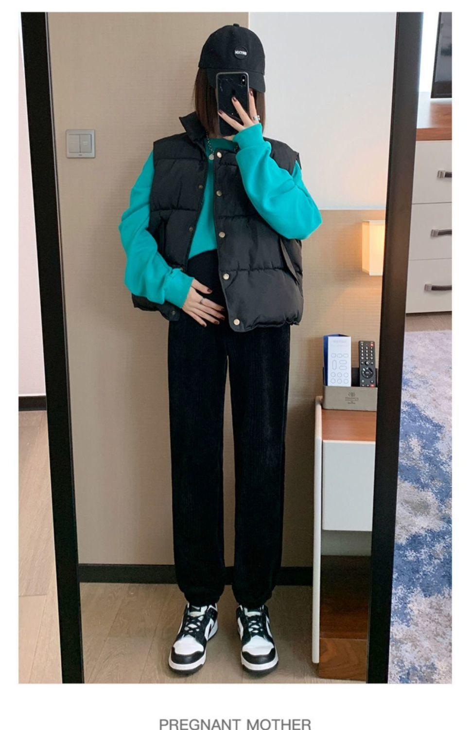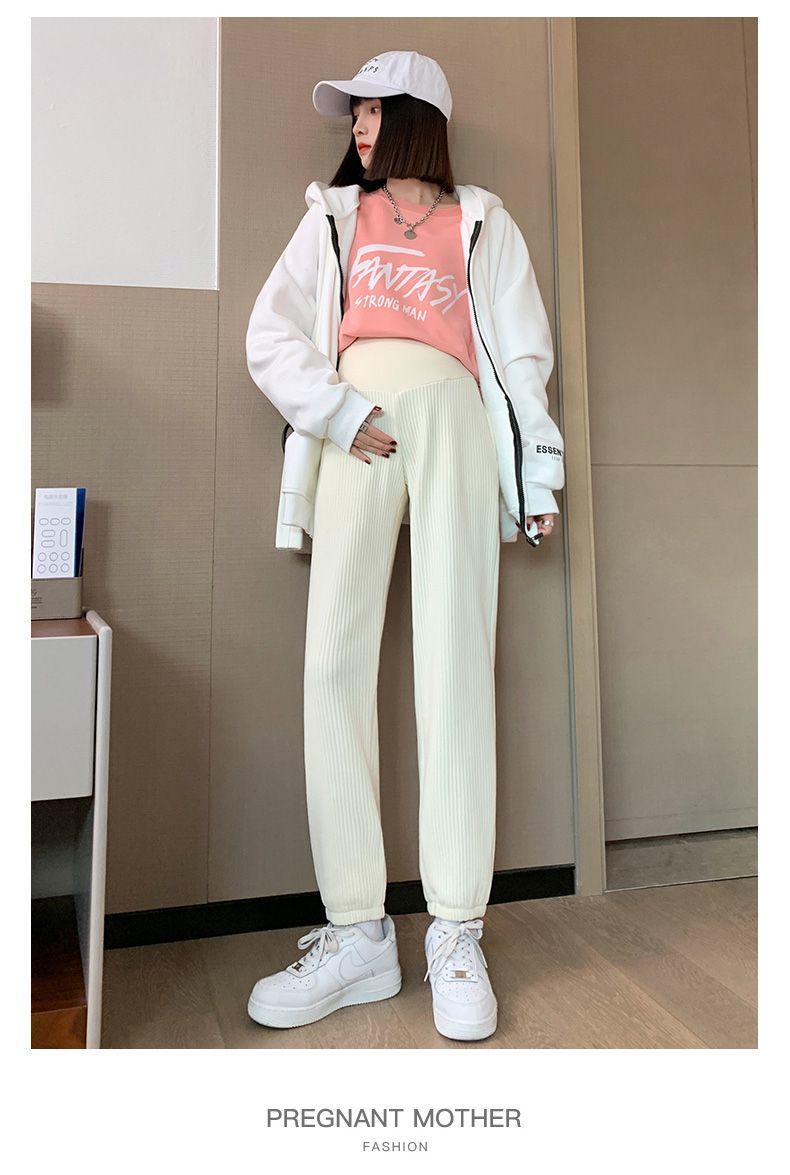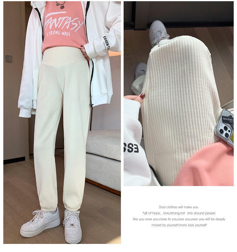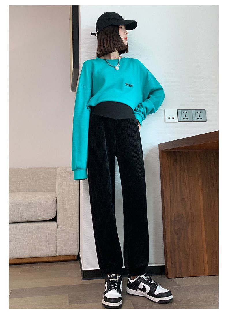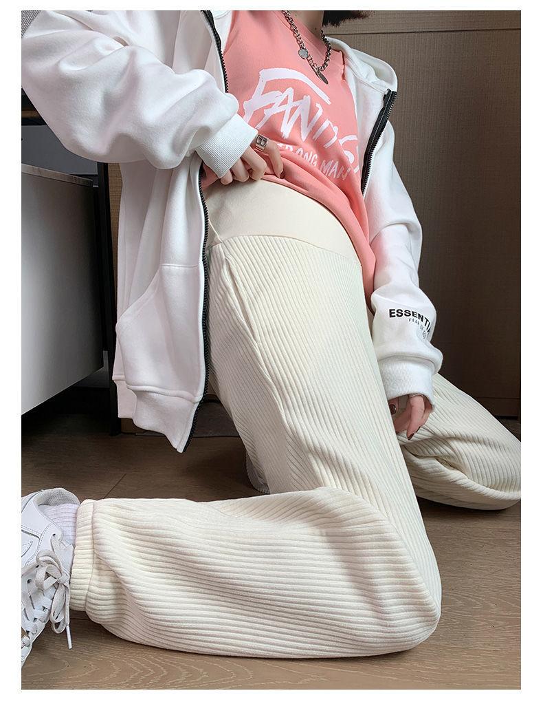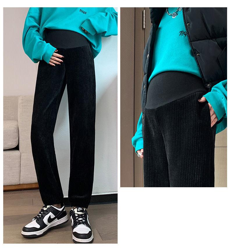 Pantalones de Maternidad para Otoño e Invierno, Pantalones Jogger de Chenilla Cortos, Forrados de Felpa y Gruesos, Ropa de Maternidad Holgada y Adelgazante para Otoño e Invierno