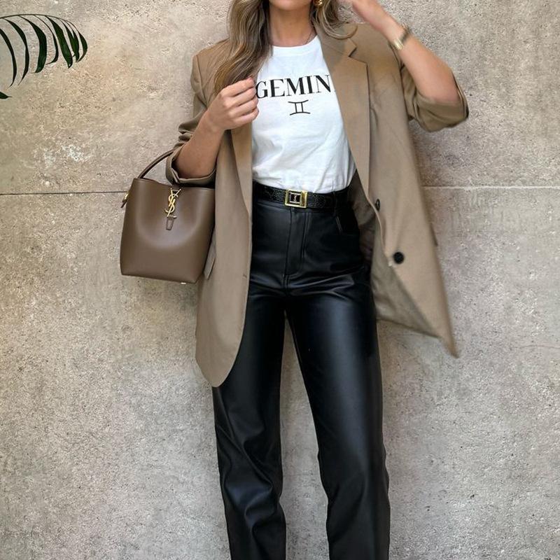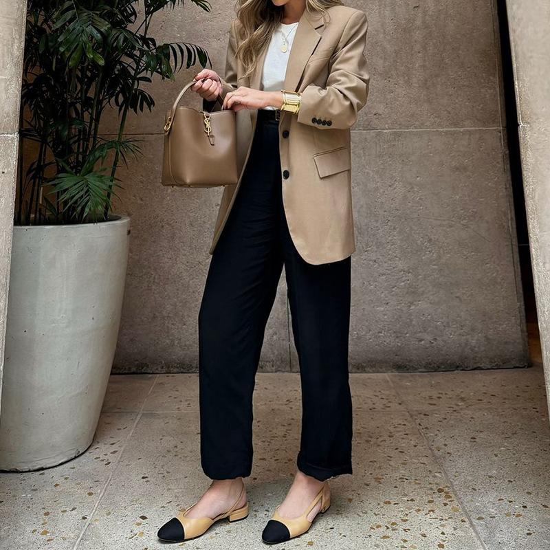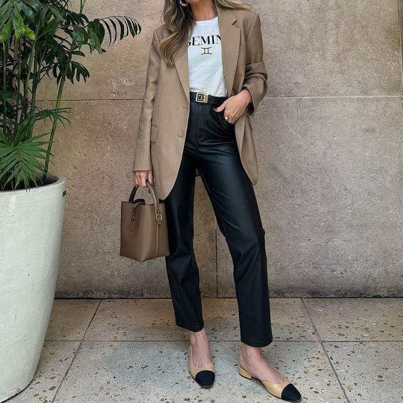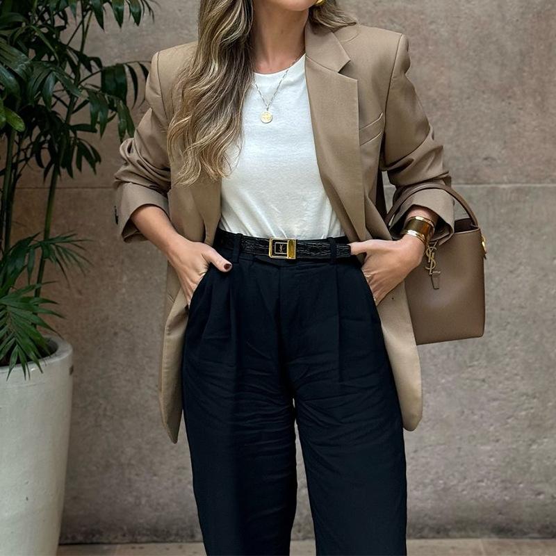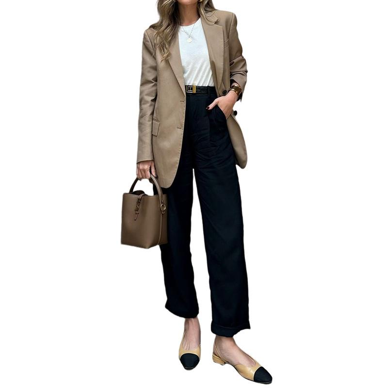 FD2292 Transfronterizo 2025 Moda Nueva Europea y Americana para Mujer Abrigo Profesional Pantalones Rectos Sueltos Conjunto de Dos Piezas