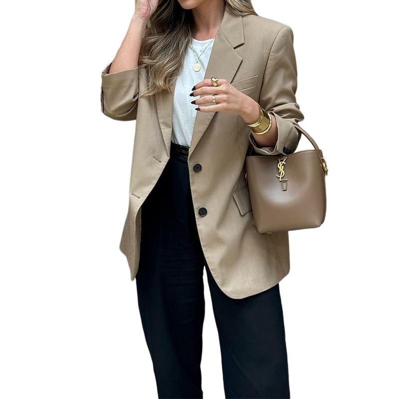 Chaqueta de traje de solapa de color sólido con temperamento de moda transfronteriza para mujer europea y americana de Amazon 2024 otoño e invierno nuevo
