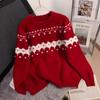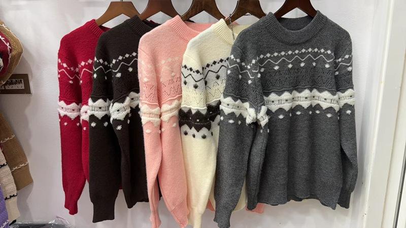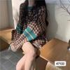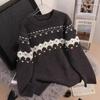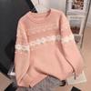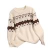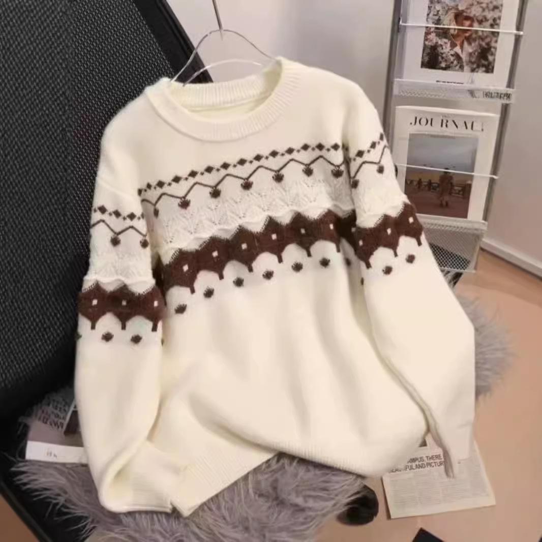 Suéter de punto con cuello redondo y contraste de colores para mujer, otoño e invierno 2024, nuevo, suave, de moda, estilo relajado, suelto, de manga larga.