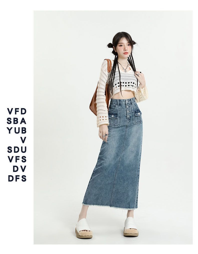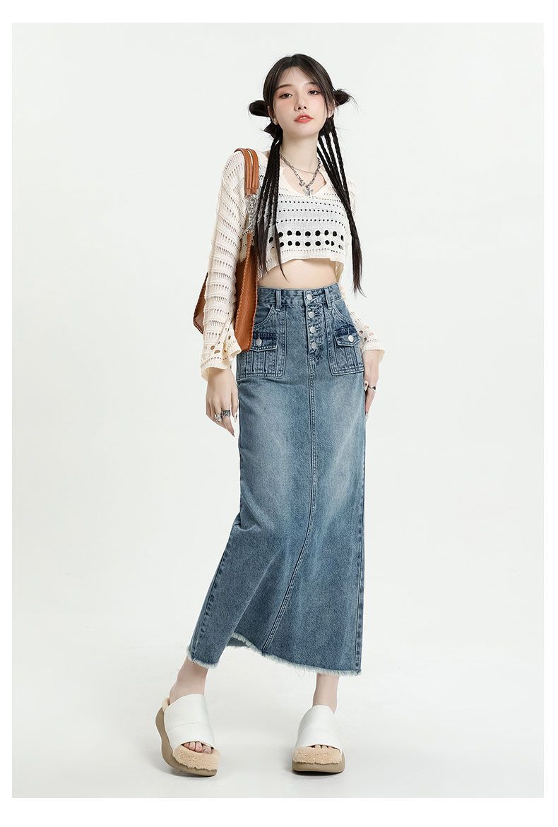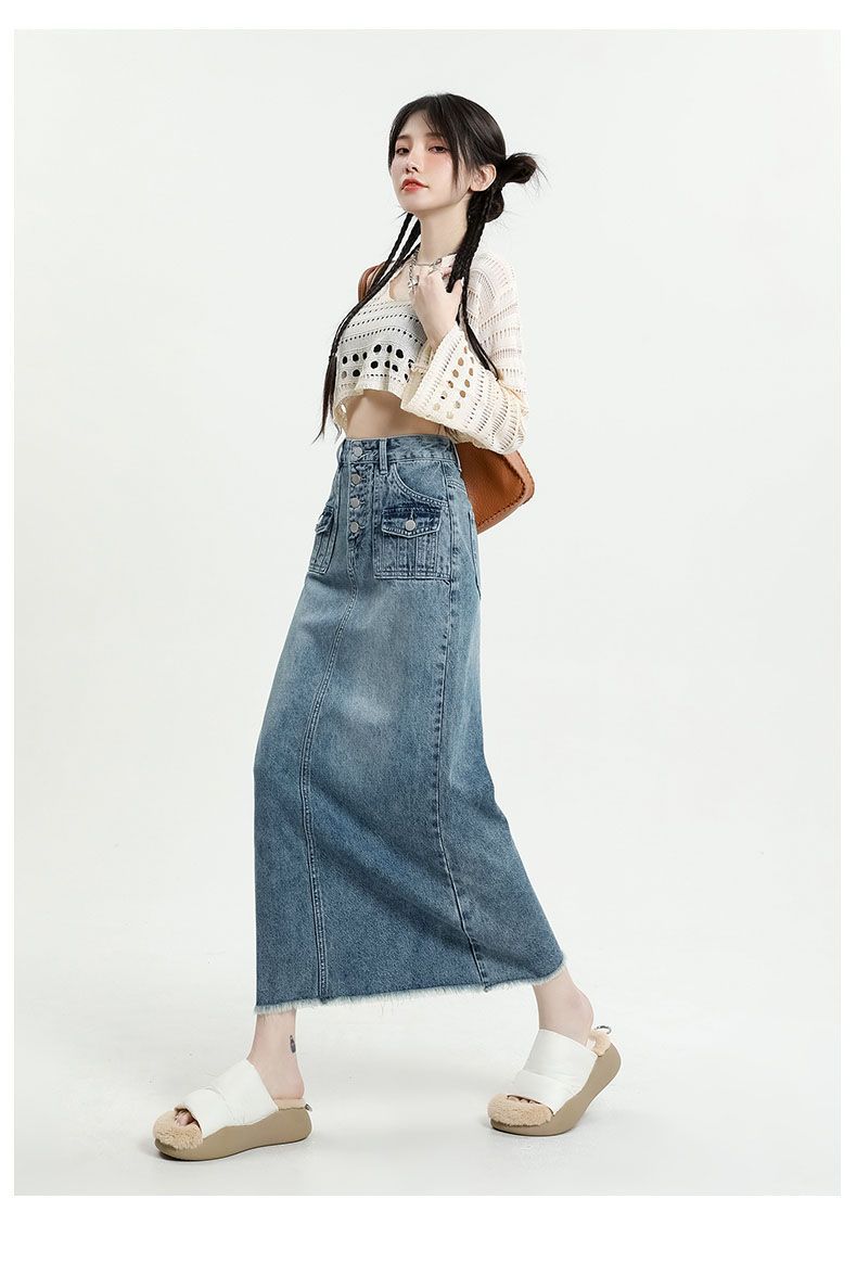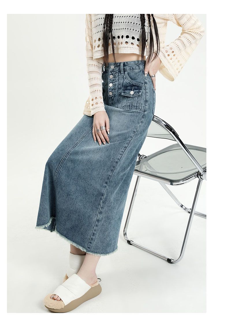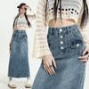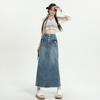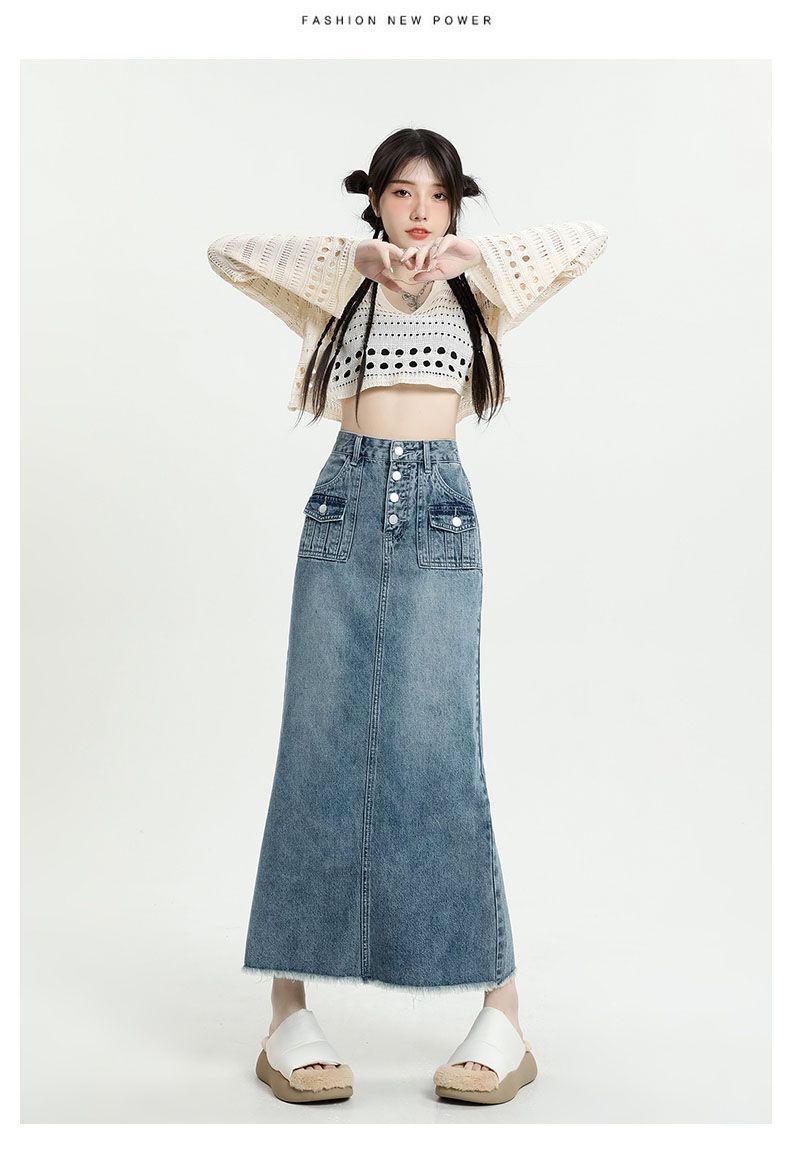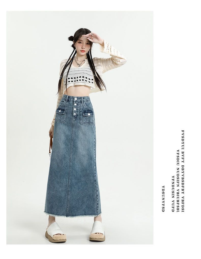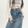Falda americana de cintura alta, estilo A, estilo retro, azul, para mujer, primavera y verano, longitud media, estilo 2024, falda vaquera con rebabas