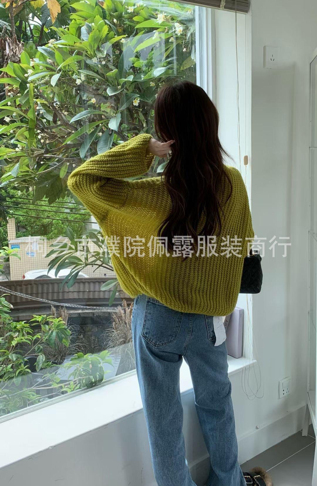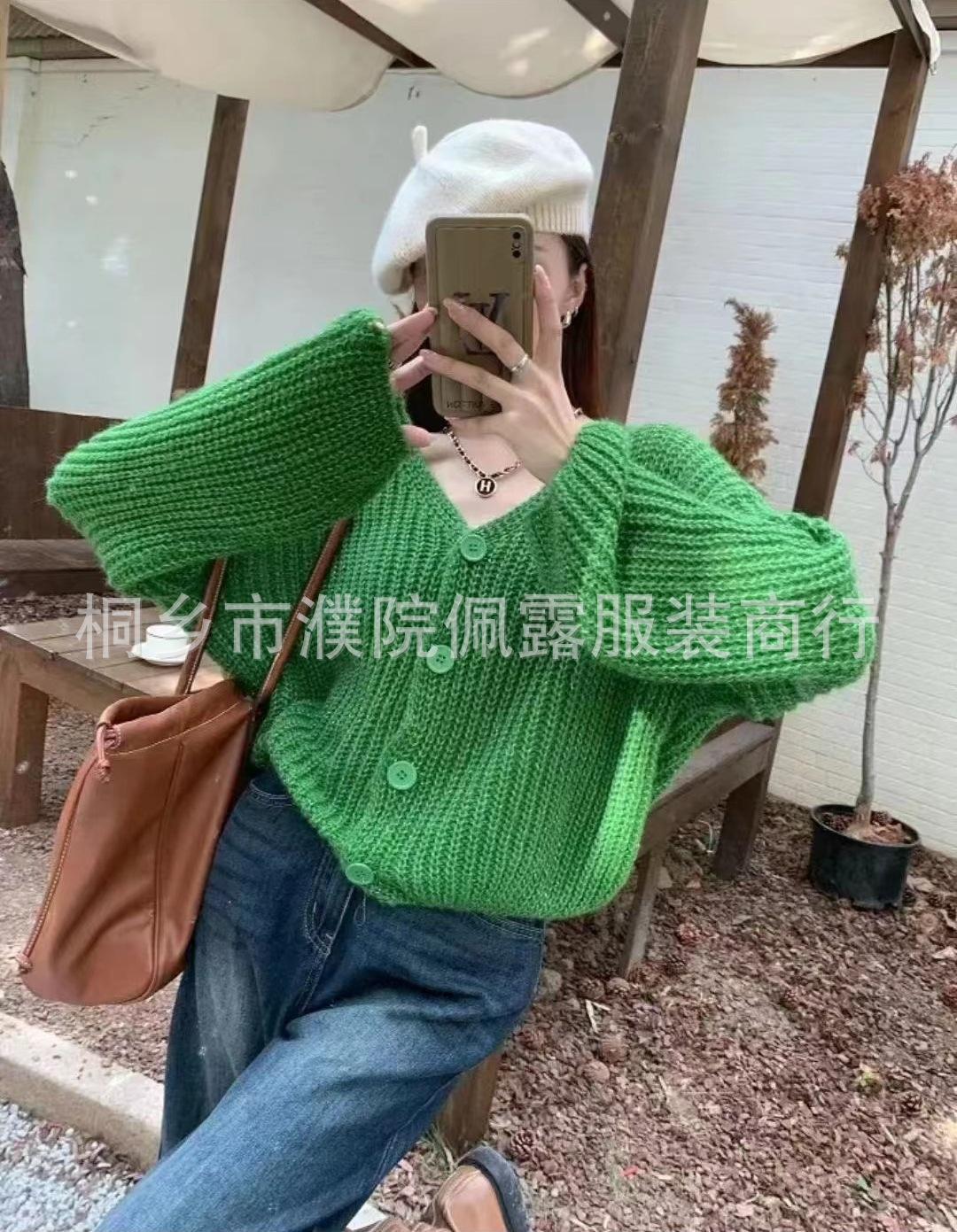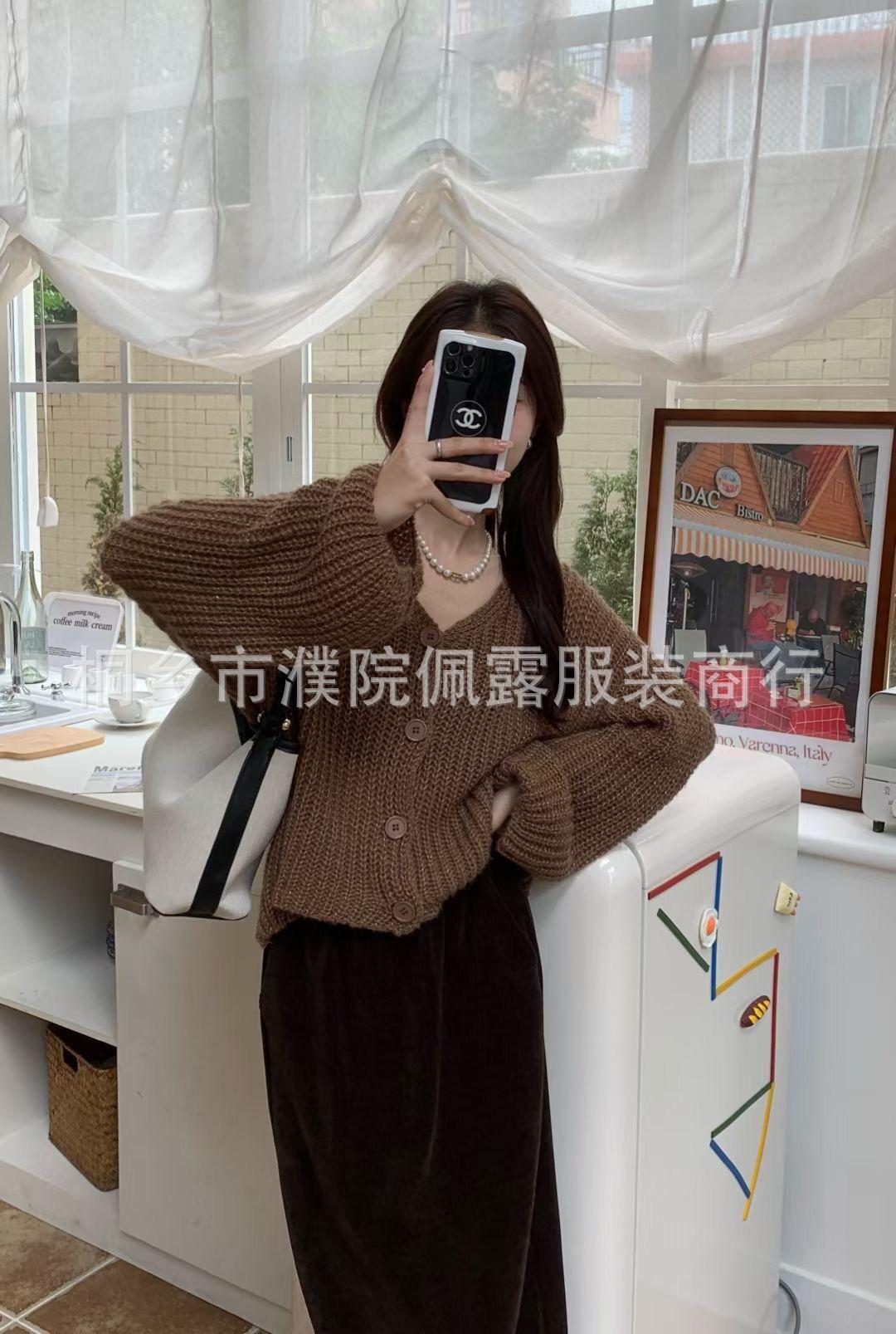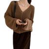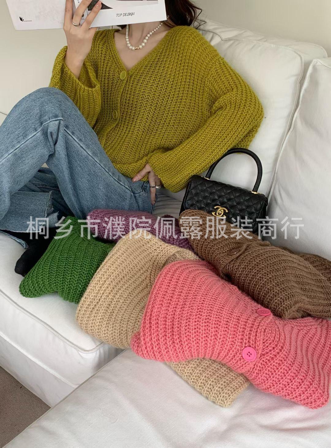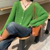 Estilo Coreano Retro Otoño e Invierno Nuevo Diseño Cuello en V Sentido Estilo Holgazán Suéter de Punto Grueso Cárdigan Top