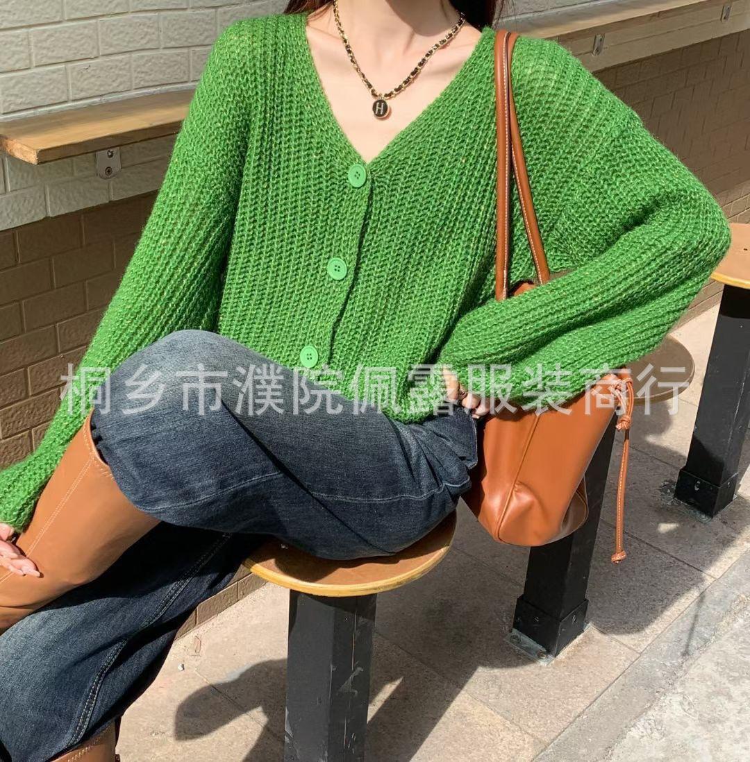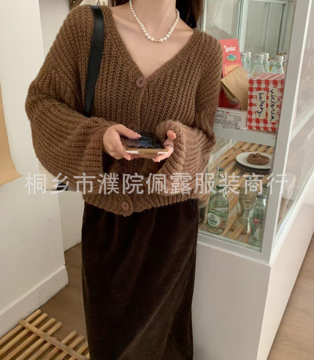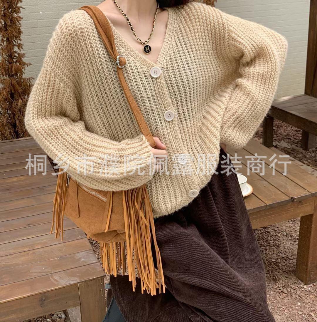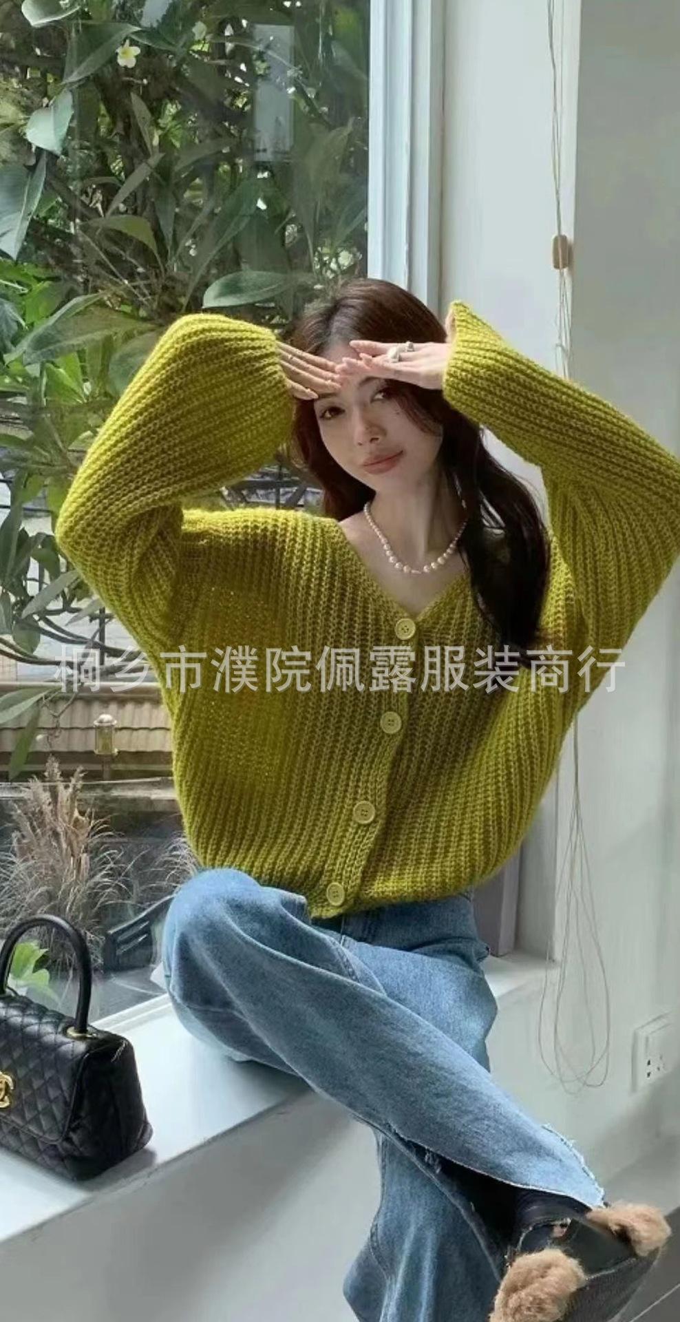 Estilo Coreano Retro Otoño e Invierno Nuevo Diseño Cuello en V Sentido Estilo Holgazán Suéter de Punto Grueso Cárdigan Top