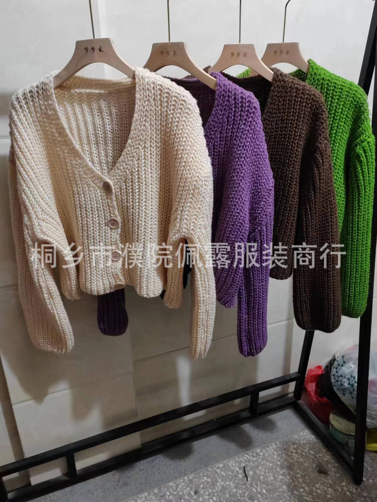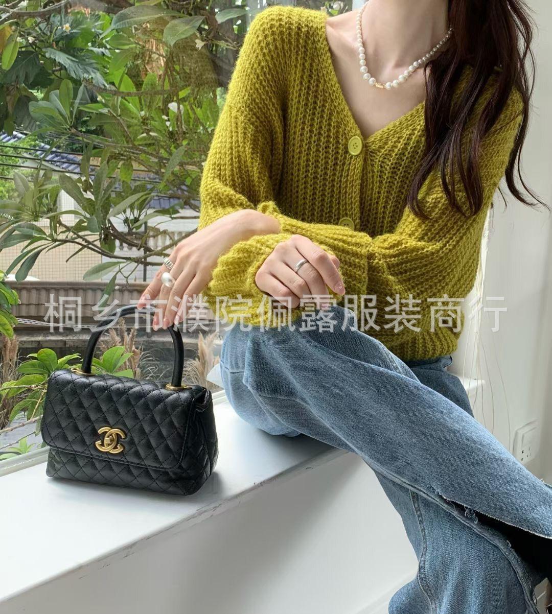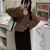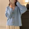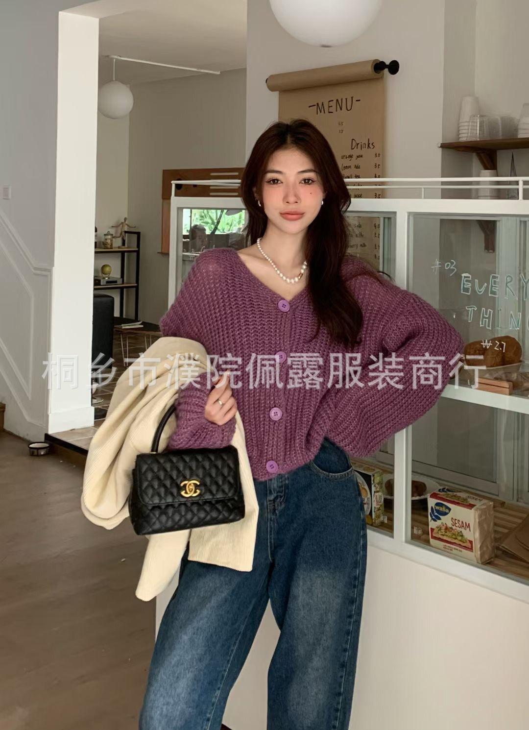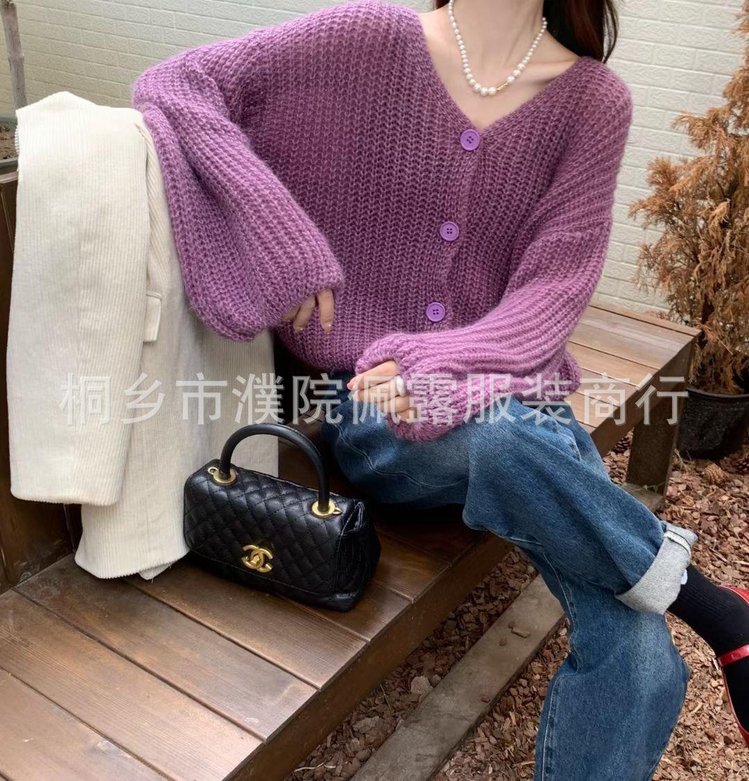 Estilo Coreano Retro Otoño e Invierno Nuevo Diseño Cuello en V Sentido Estilo Holgazán Suéter de Punto Grueso Cárdigan Top