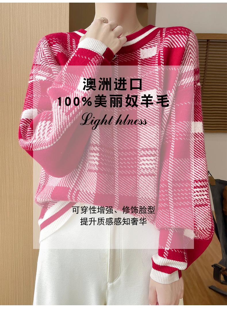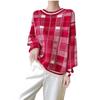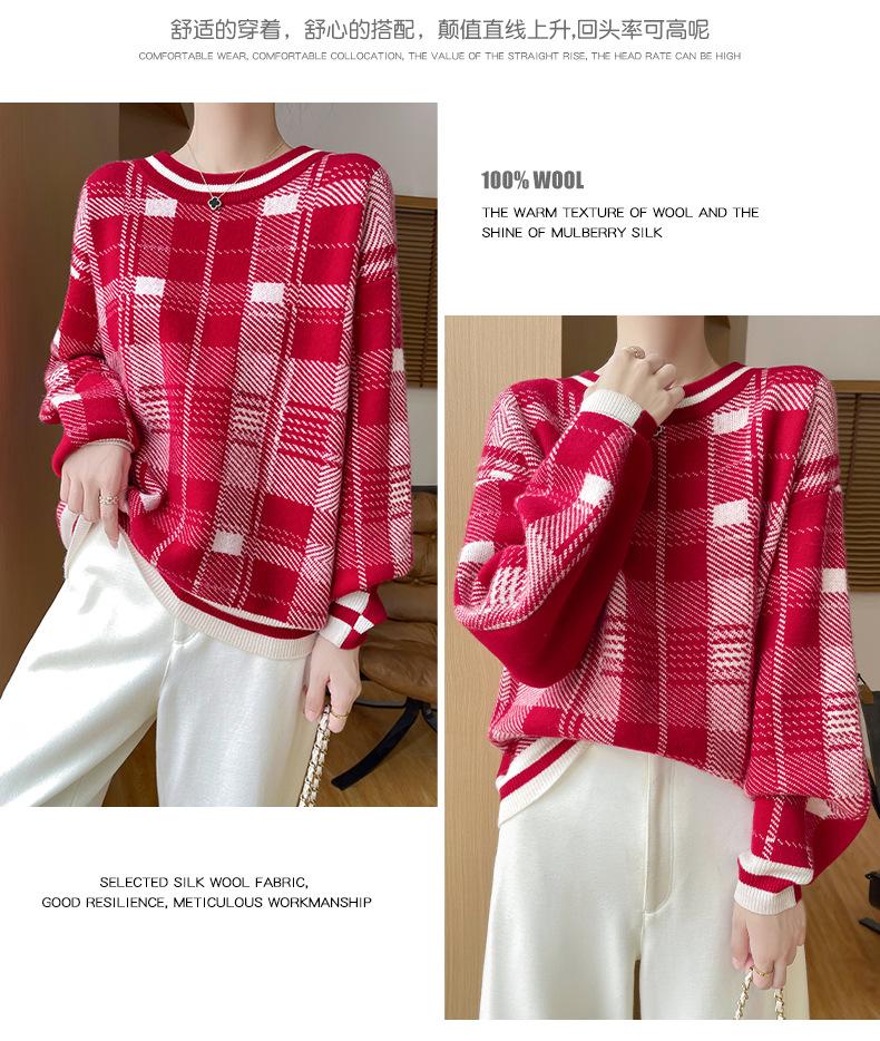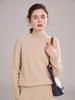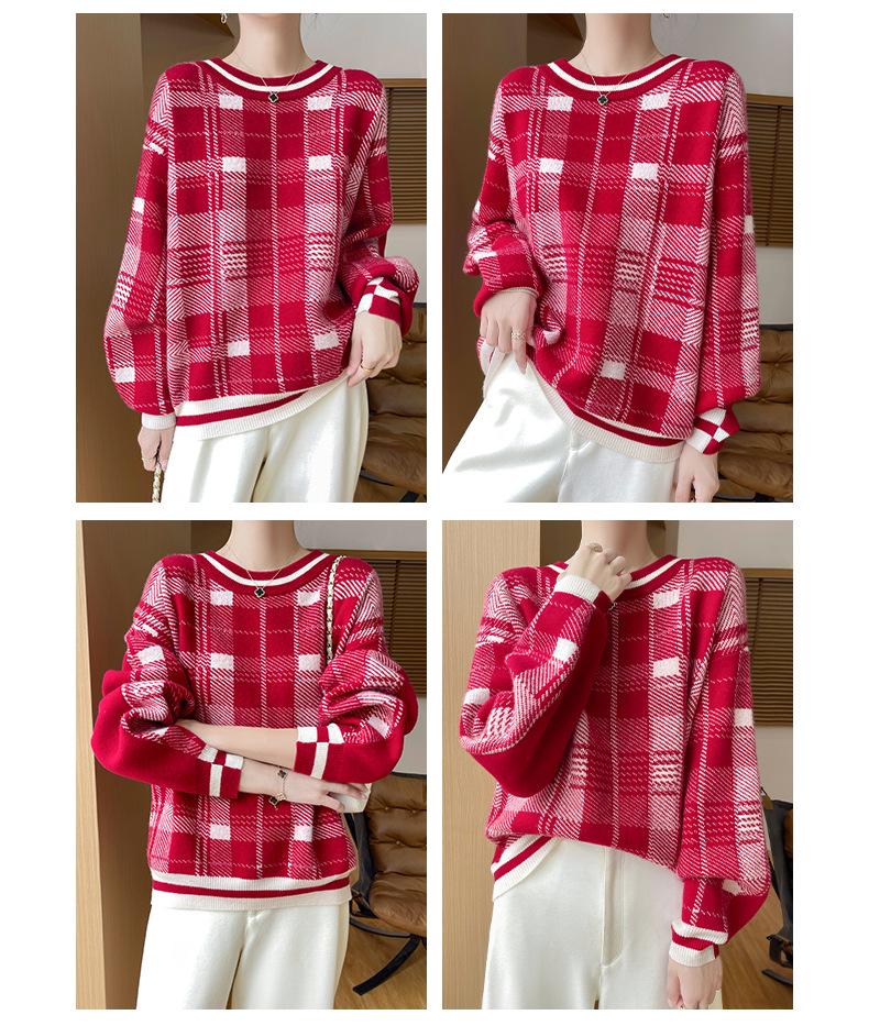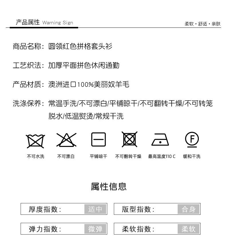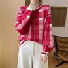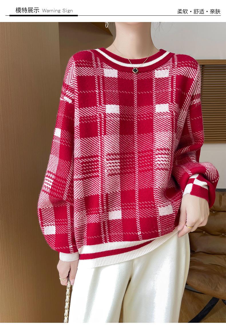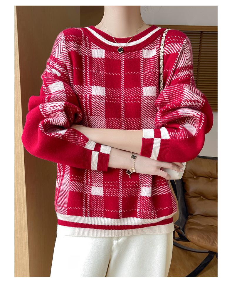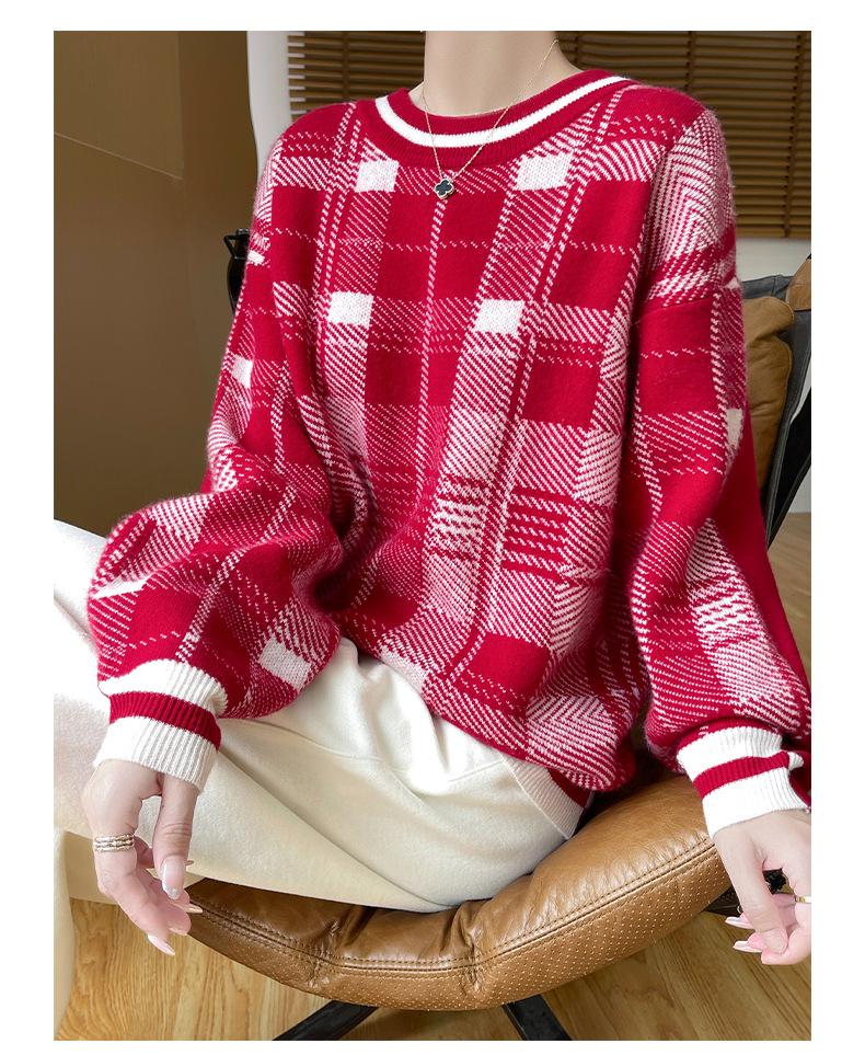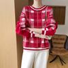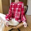 Suéter de punto de cachemira con cuello redondo y contraste de color, grueso y rojo con retazos, para mujer, otoño e invierno de 2024