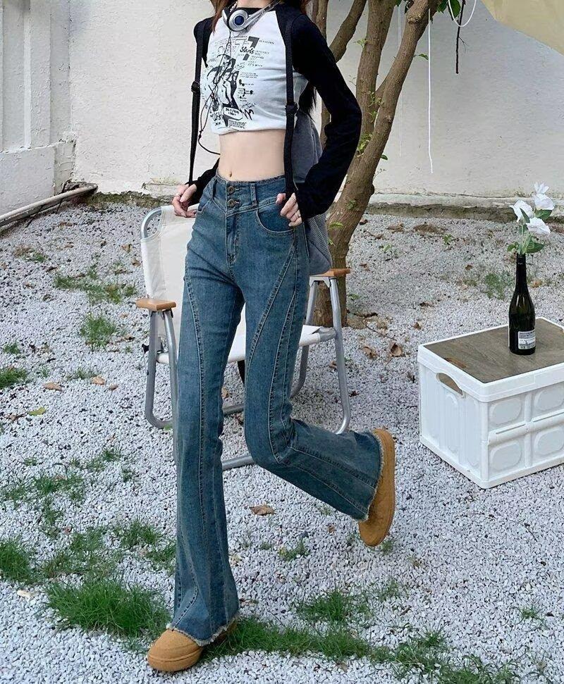 Pantalones vaqueros de cintura alta para mujer, de primavera y verano, con diseño de herradura fina y acampanada