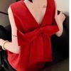 Camiseta de tirantes con lazo rojo en la espalda y diseño elegante para mujer, estilo celebridad, holgada