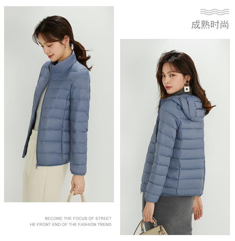 Chaqueta de plumón europea para mujer, nueva chaqueta de plumón de pato blanco de 90 cm, ligera, gruesa, cálida y ajustada, estilo coreano, 2023