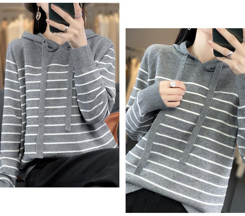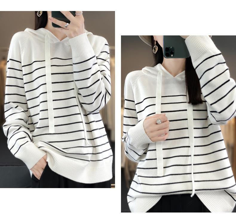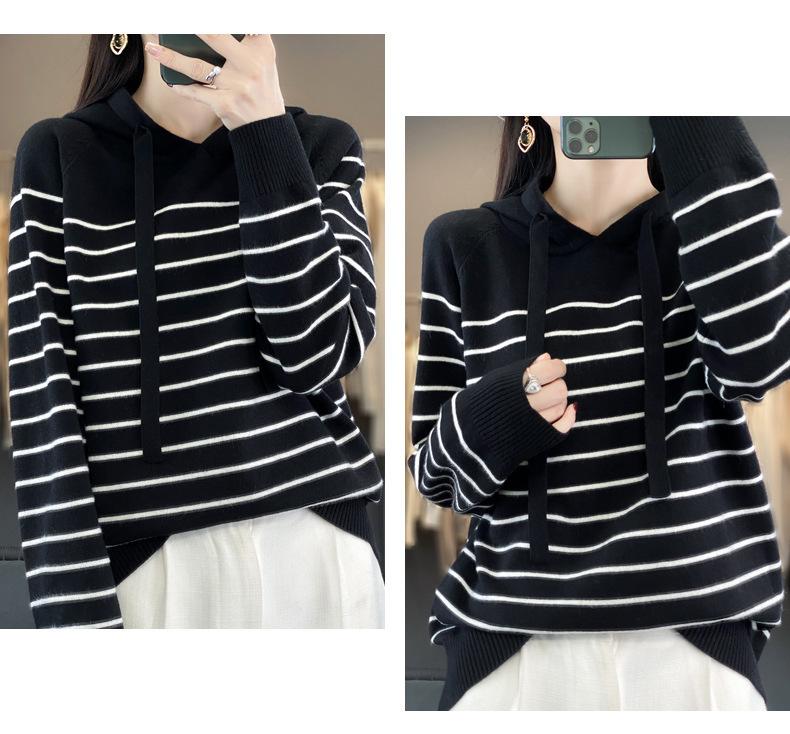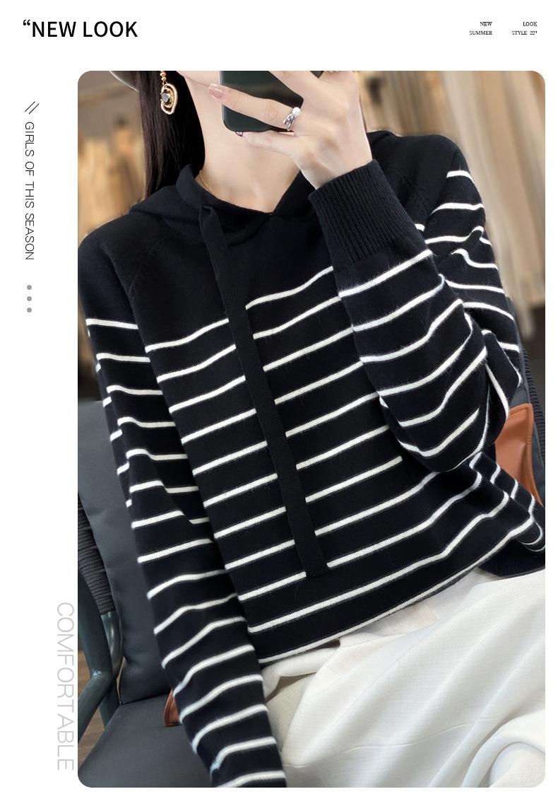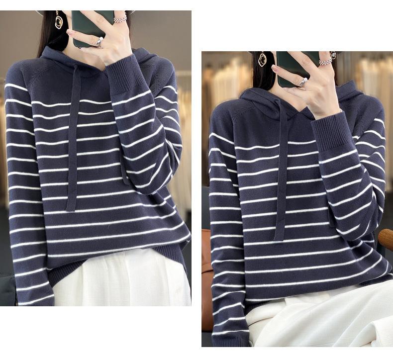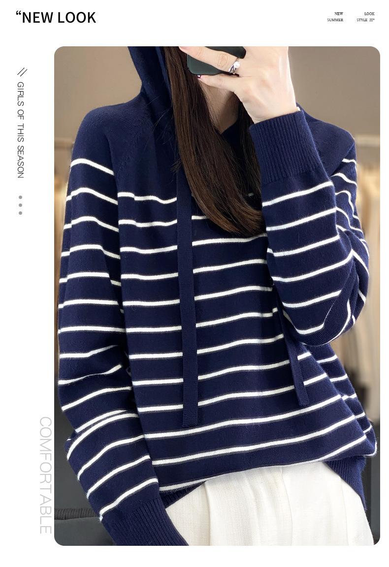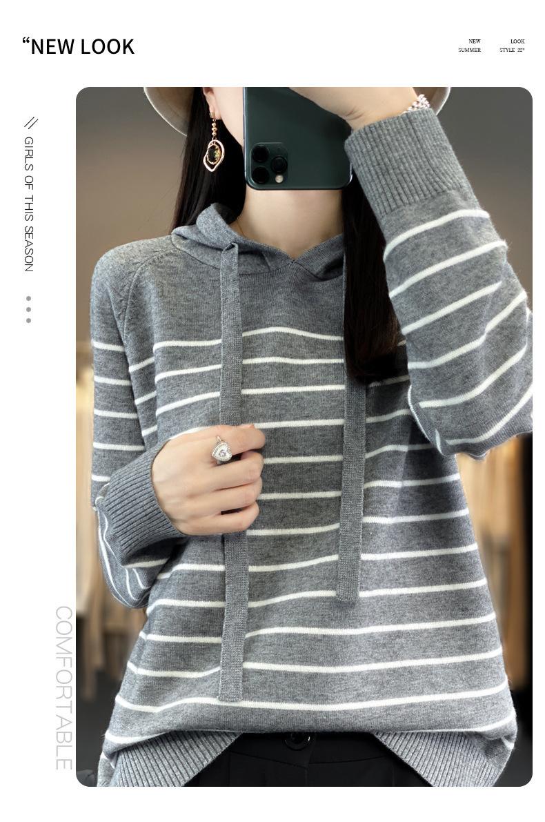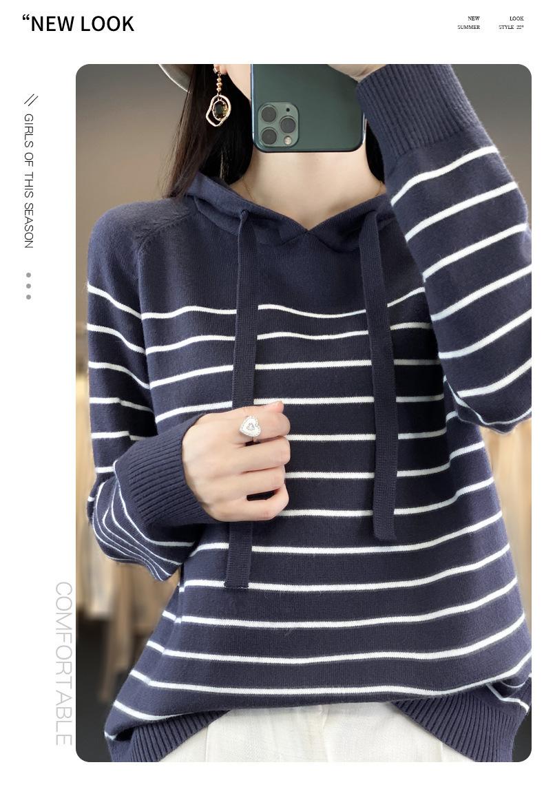 Chamarra Sudadera de Manga Larga a Rayas para Mujer Otoño e Invierno Prendas de Punto Casuales para Mujer Nuevo Jersey con Capucha Estilo Coreano 2025