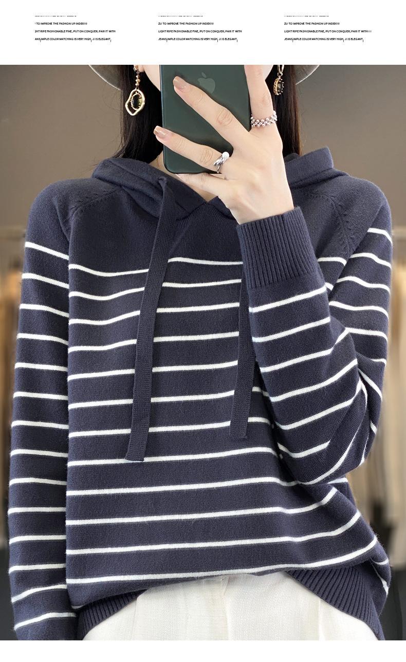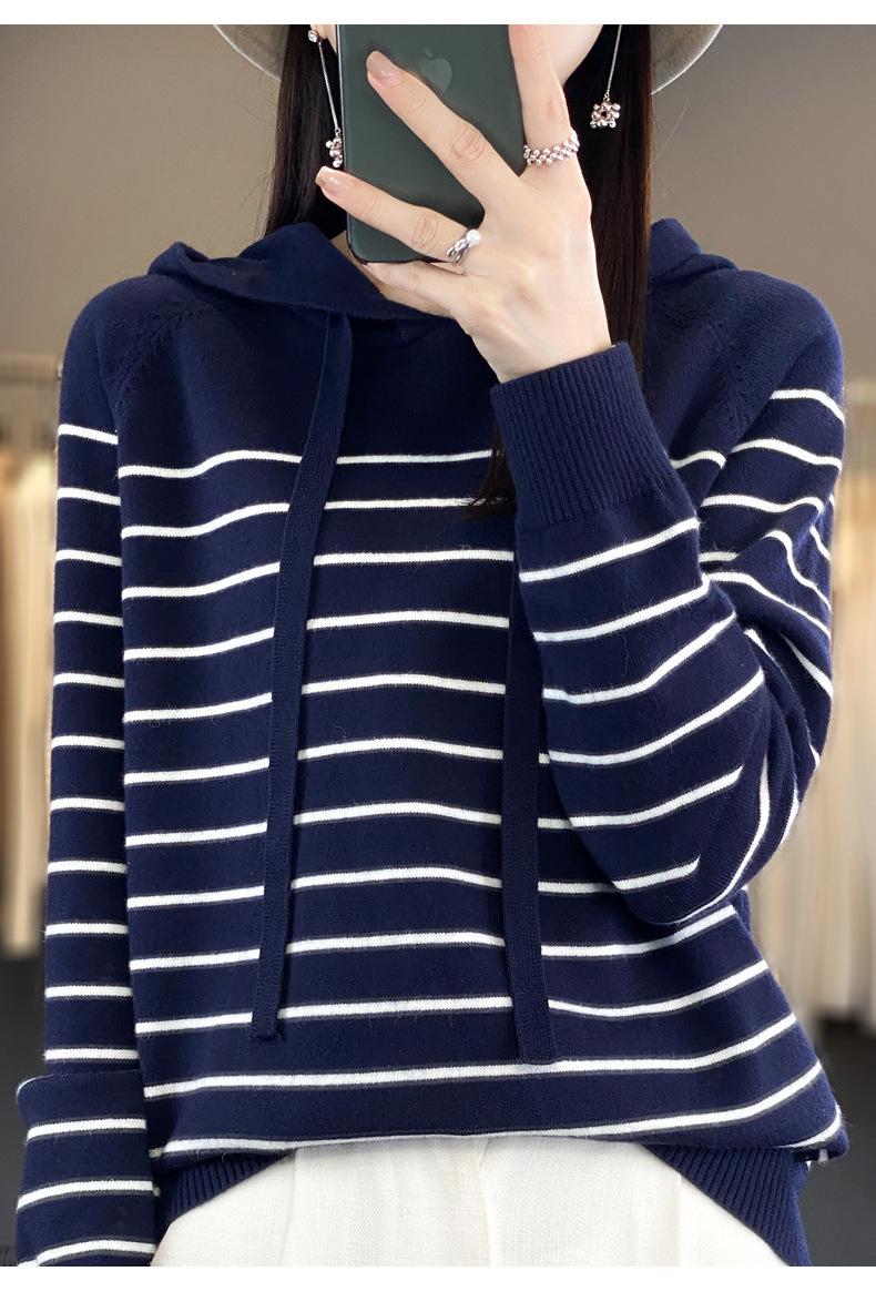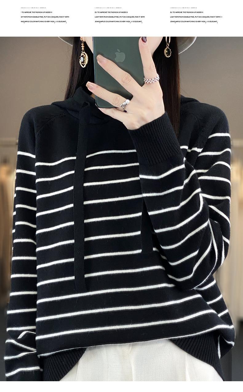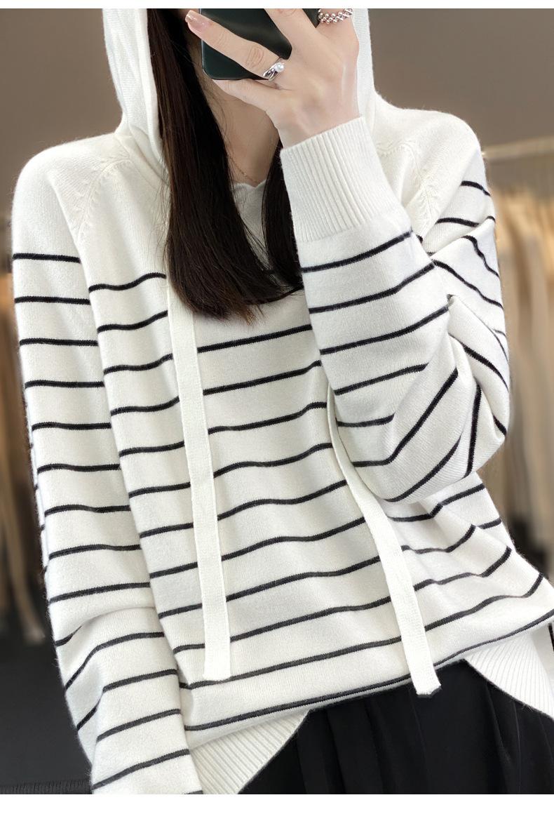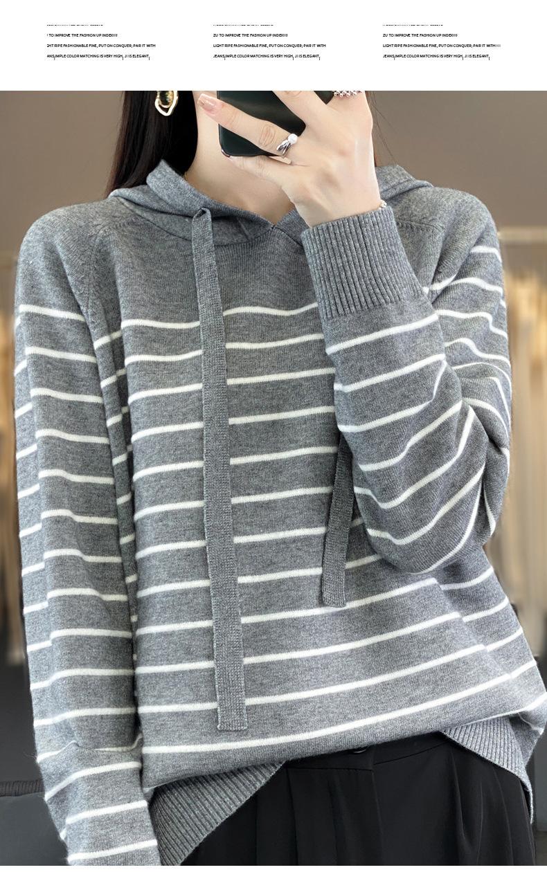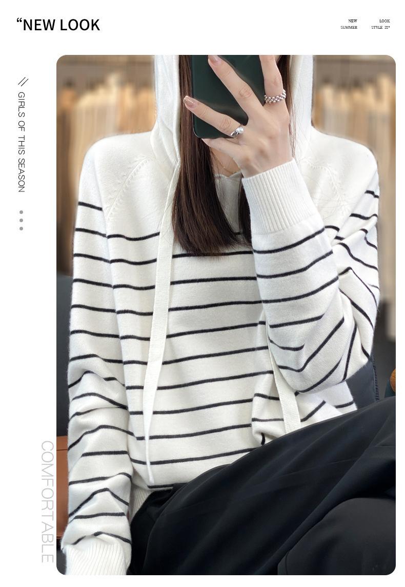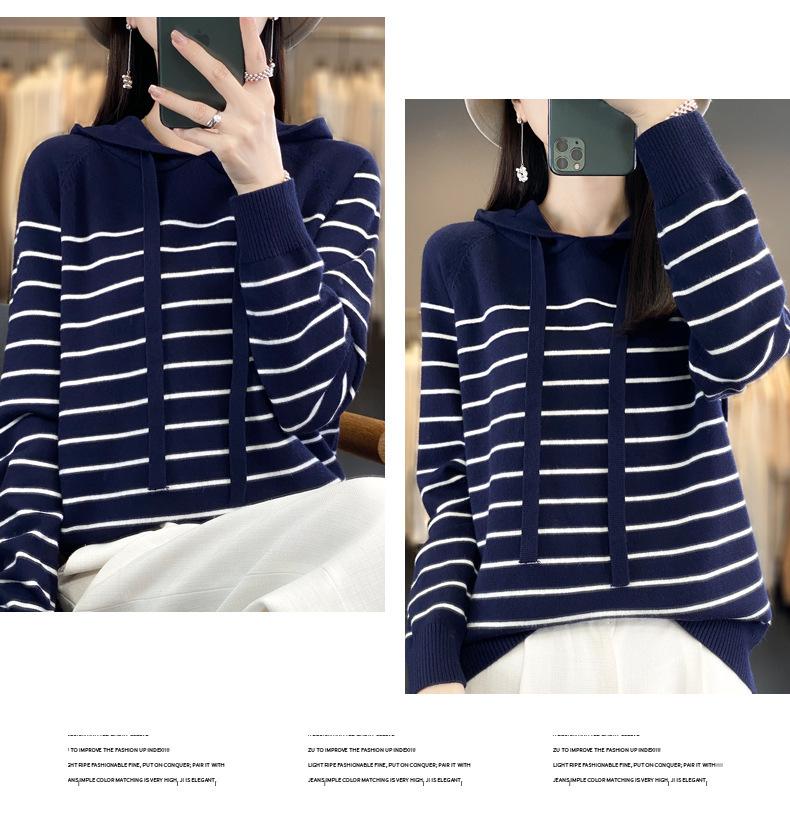 Chamarra Sudadera de Manga Larga a Rayas para Mujer Otoño e Invierno Prendas de Punto Casuales para Mujer Nuevo Jersey con Capucha Estilo Coreano 2025