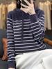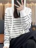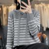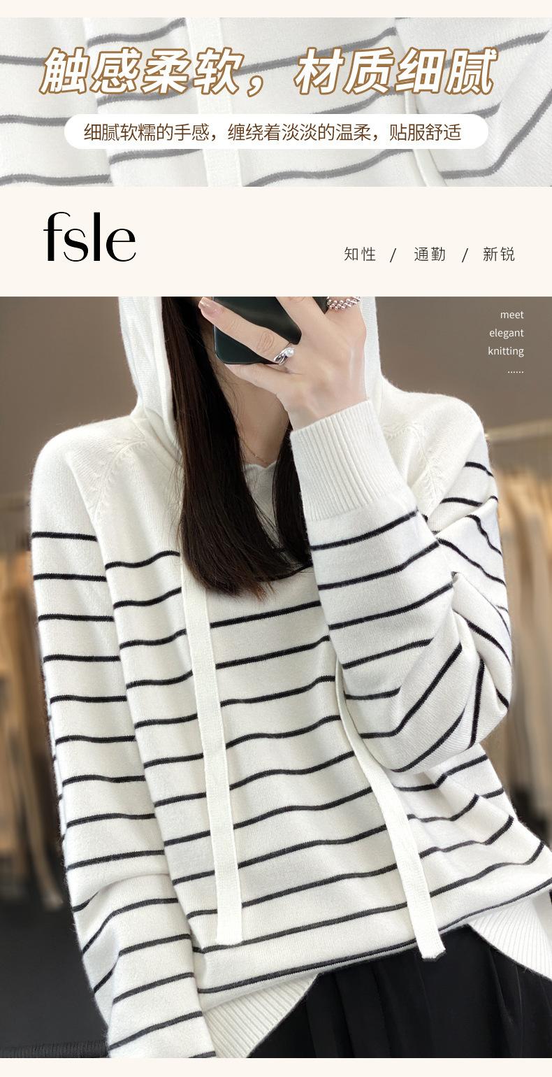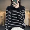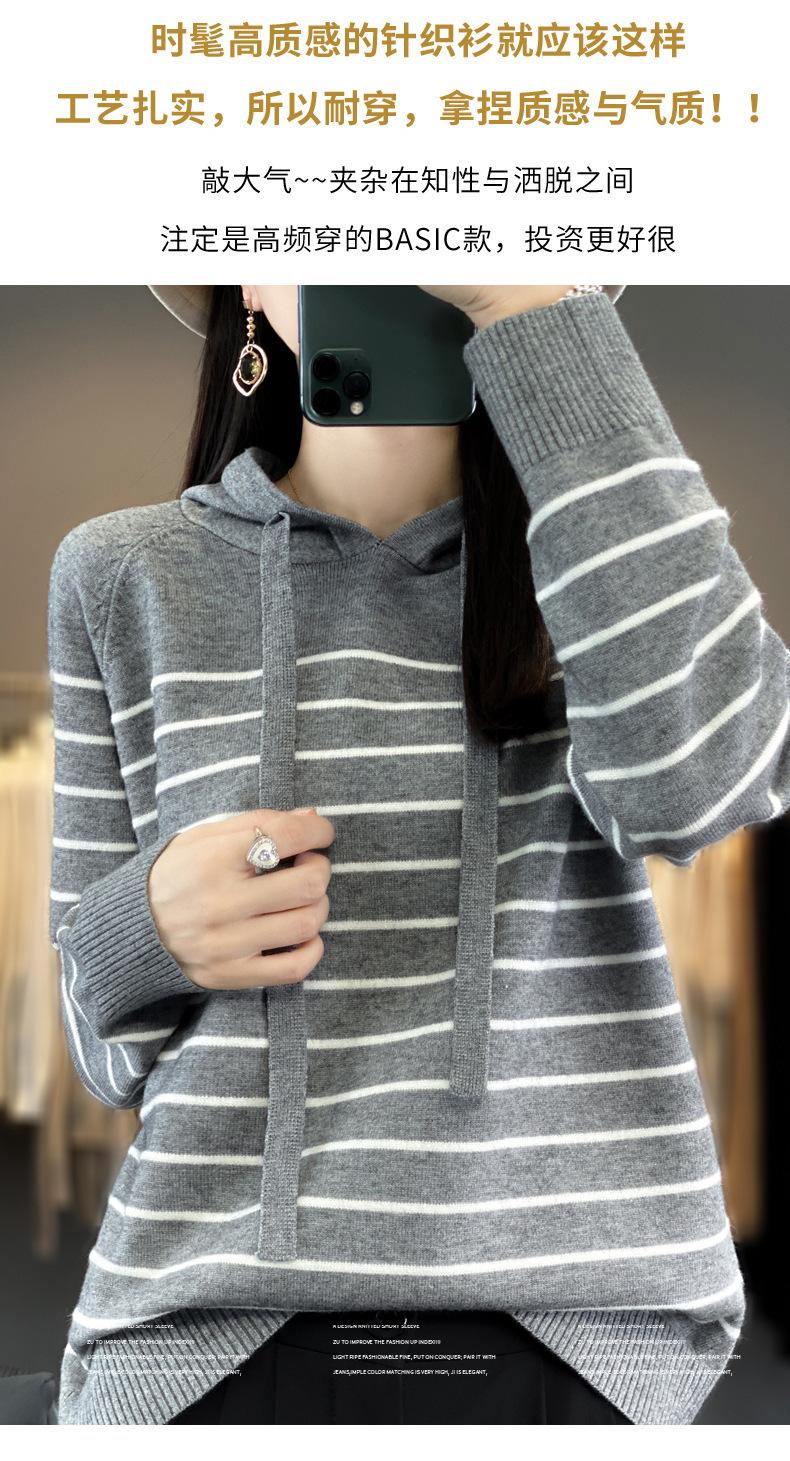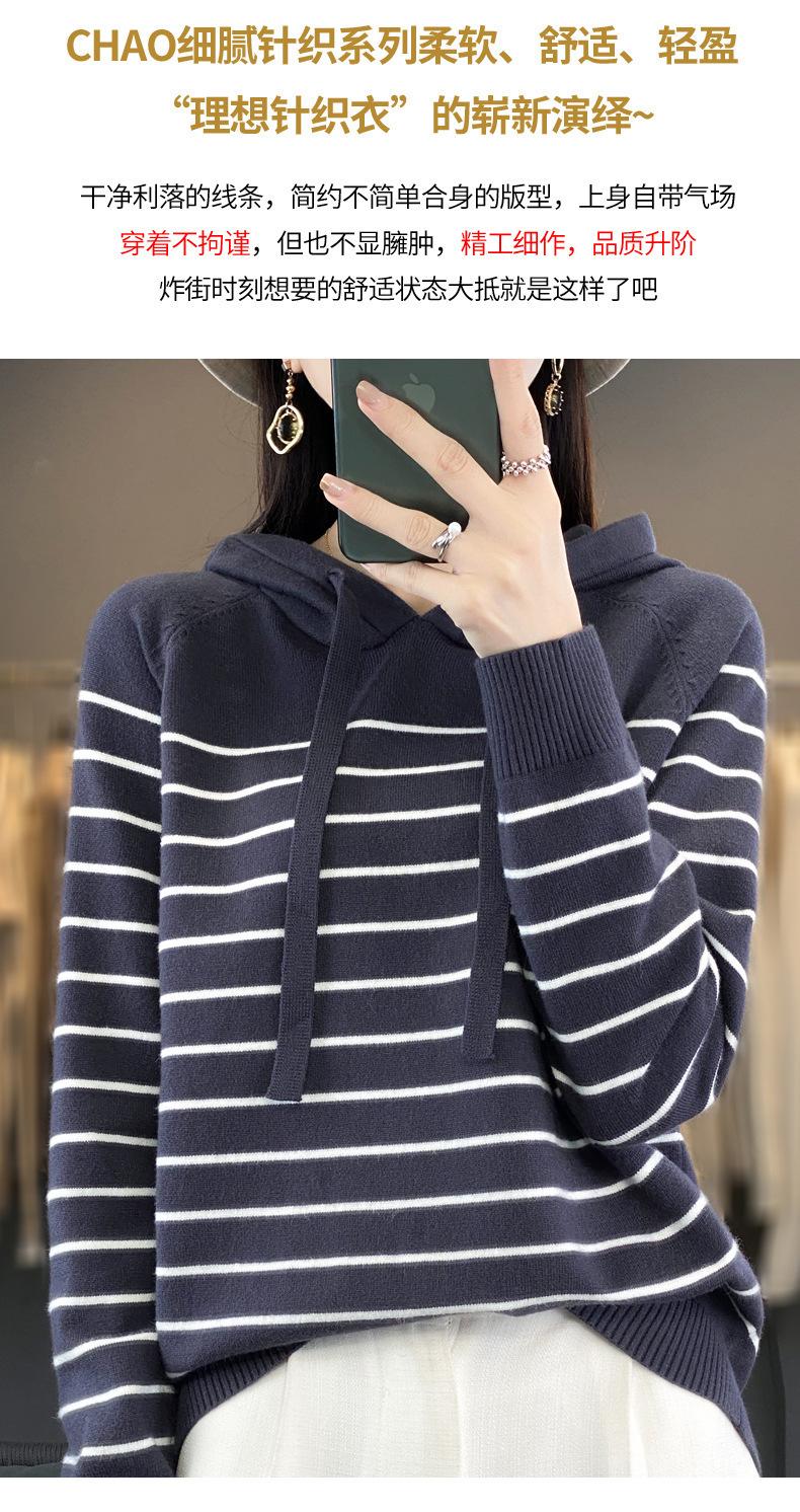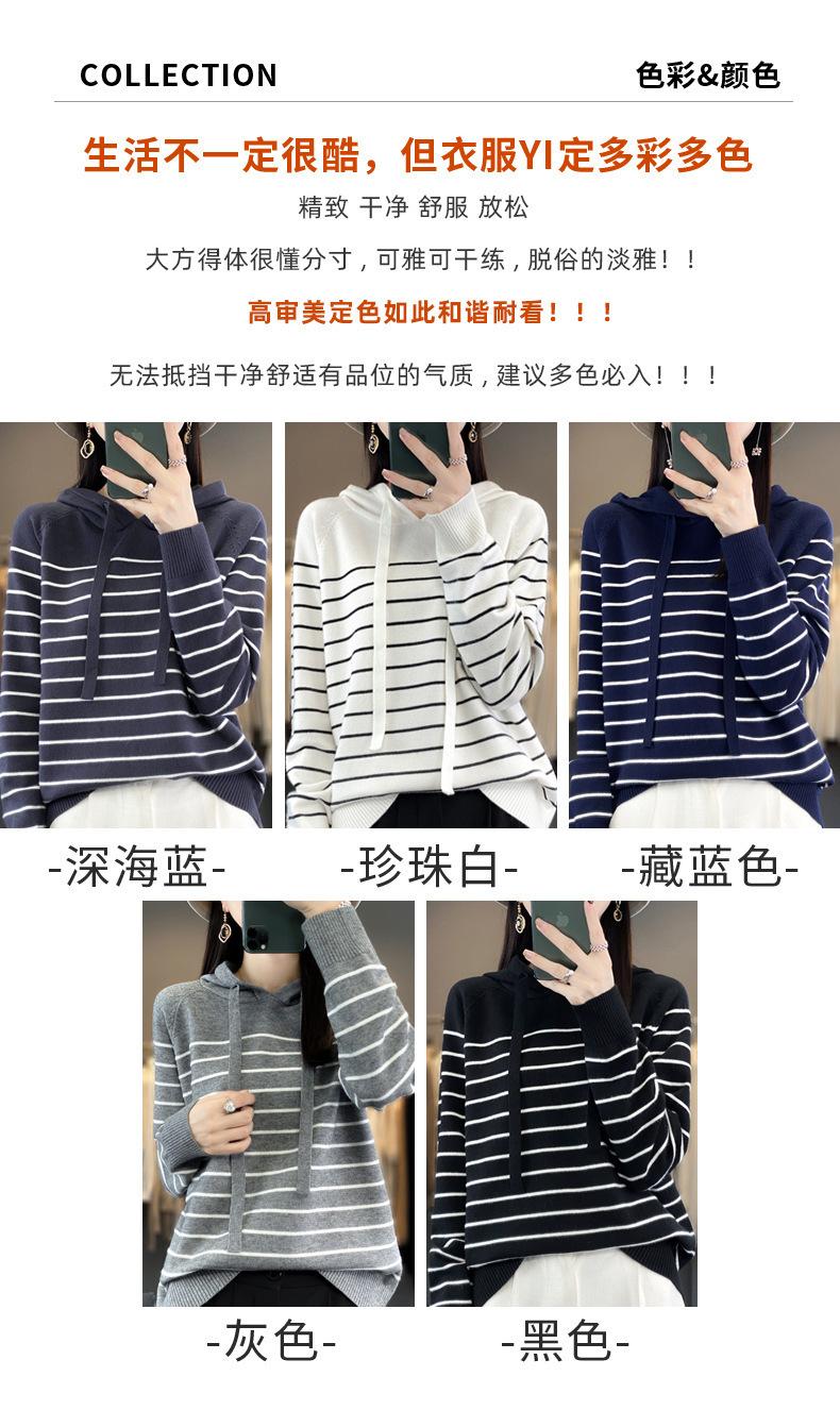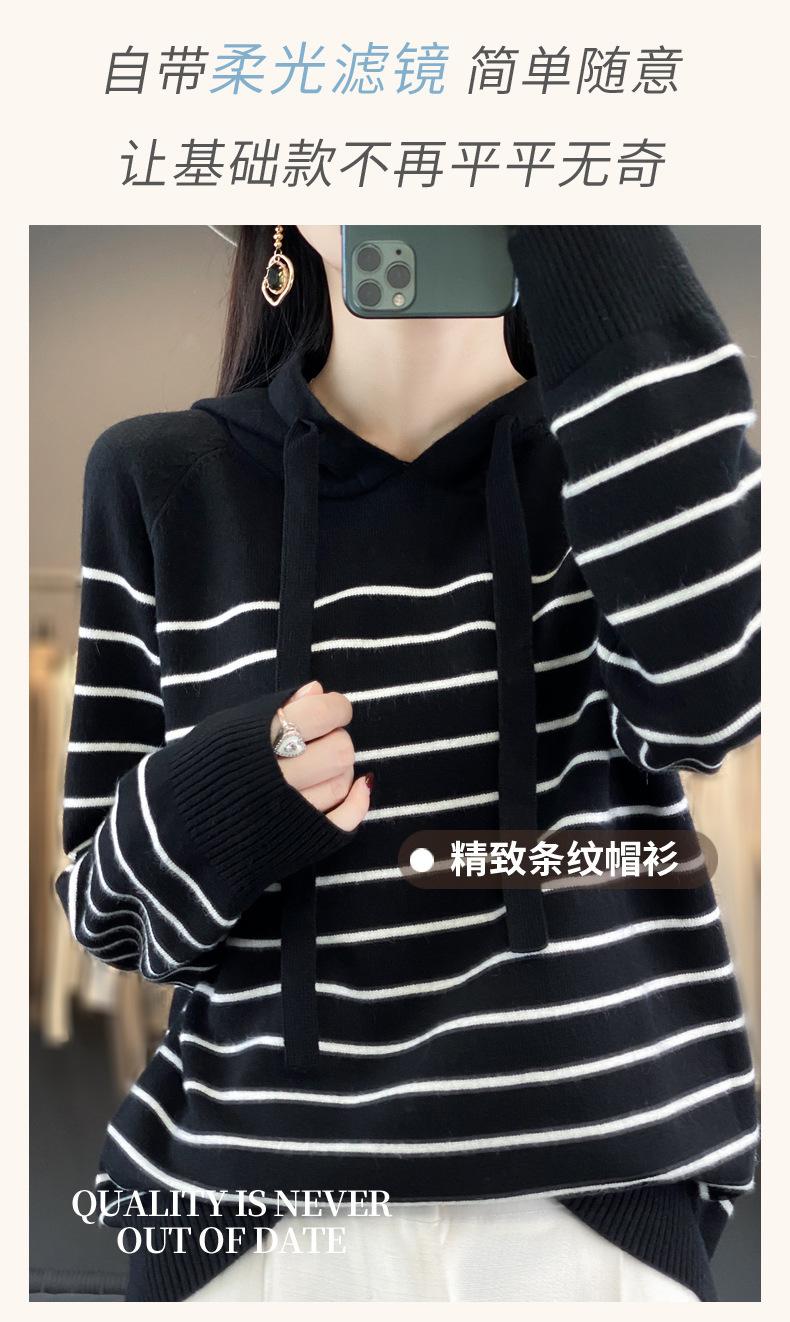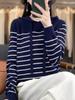 Chamarra Sudadera de Manga Larga a Rayas para Mujer Otoño e Invierno Prendas de Punto Casuales para Mujer Nuevo Jersey con Capucha Estilo Coreano 2025
