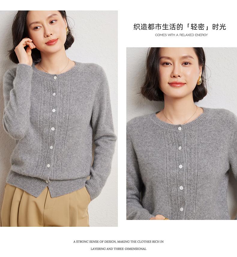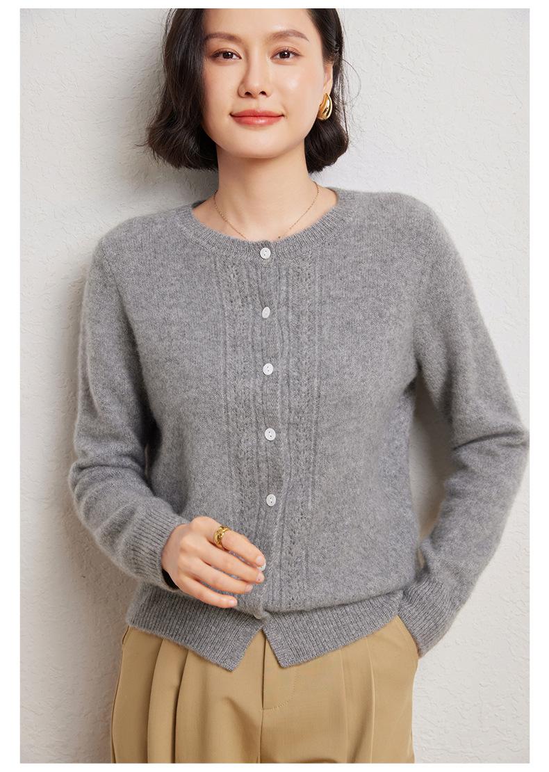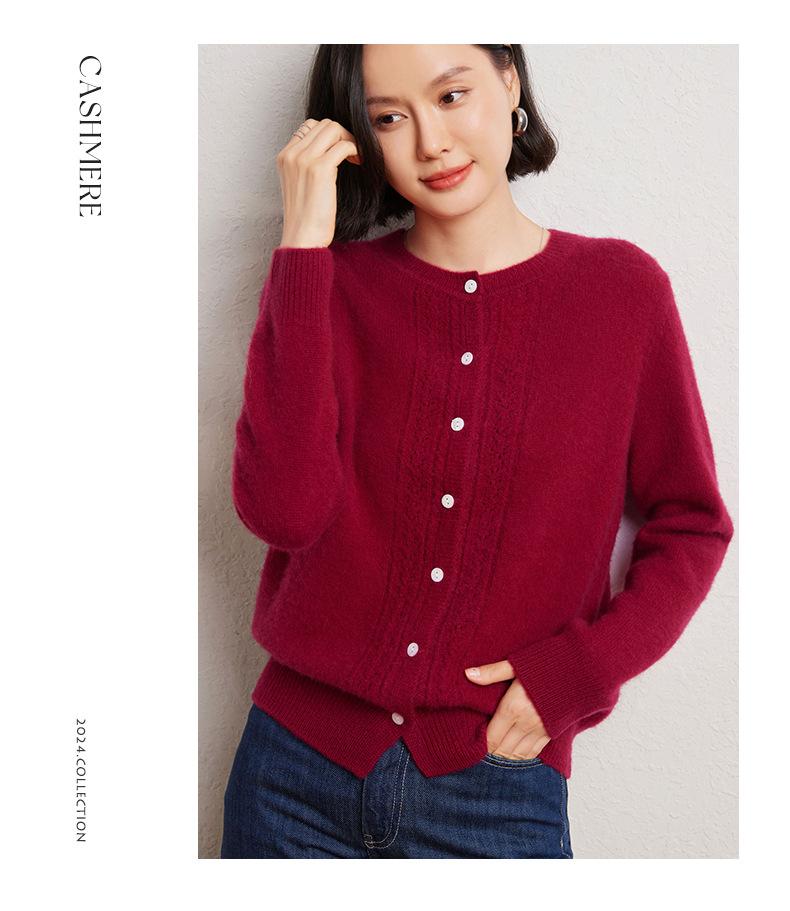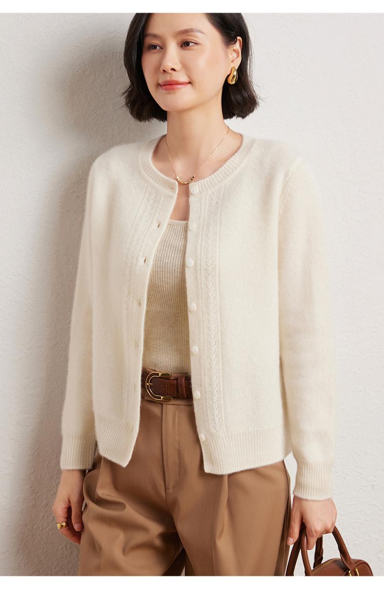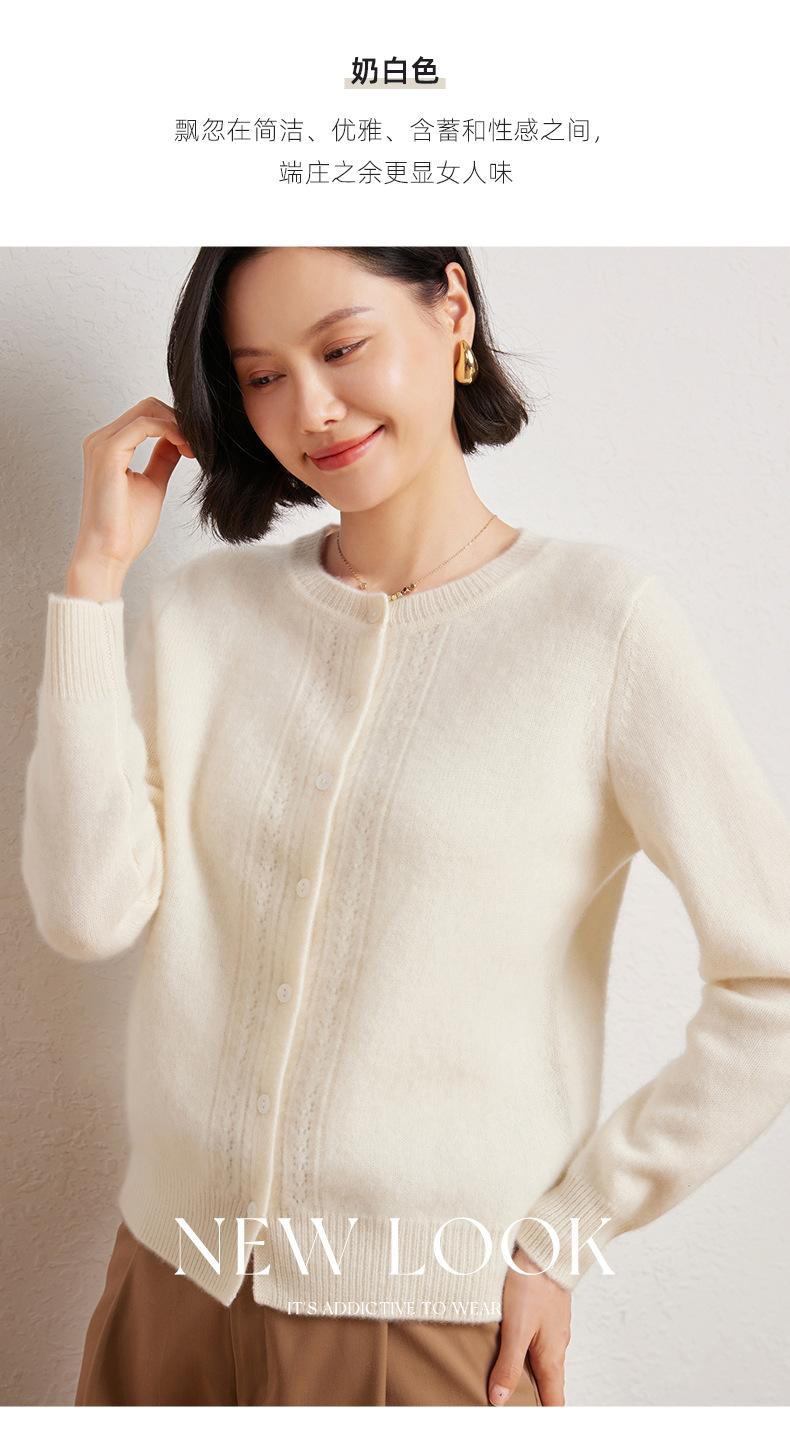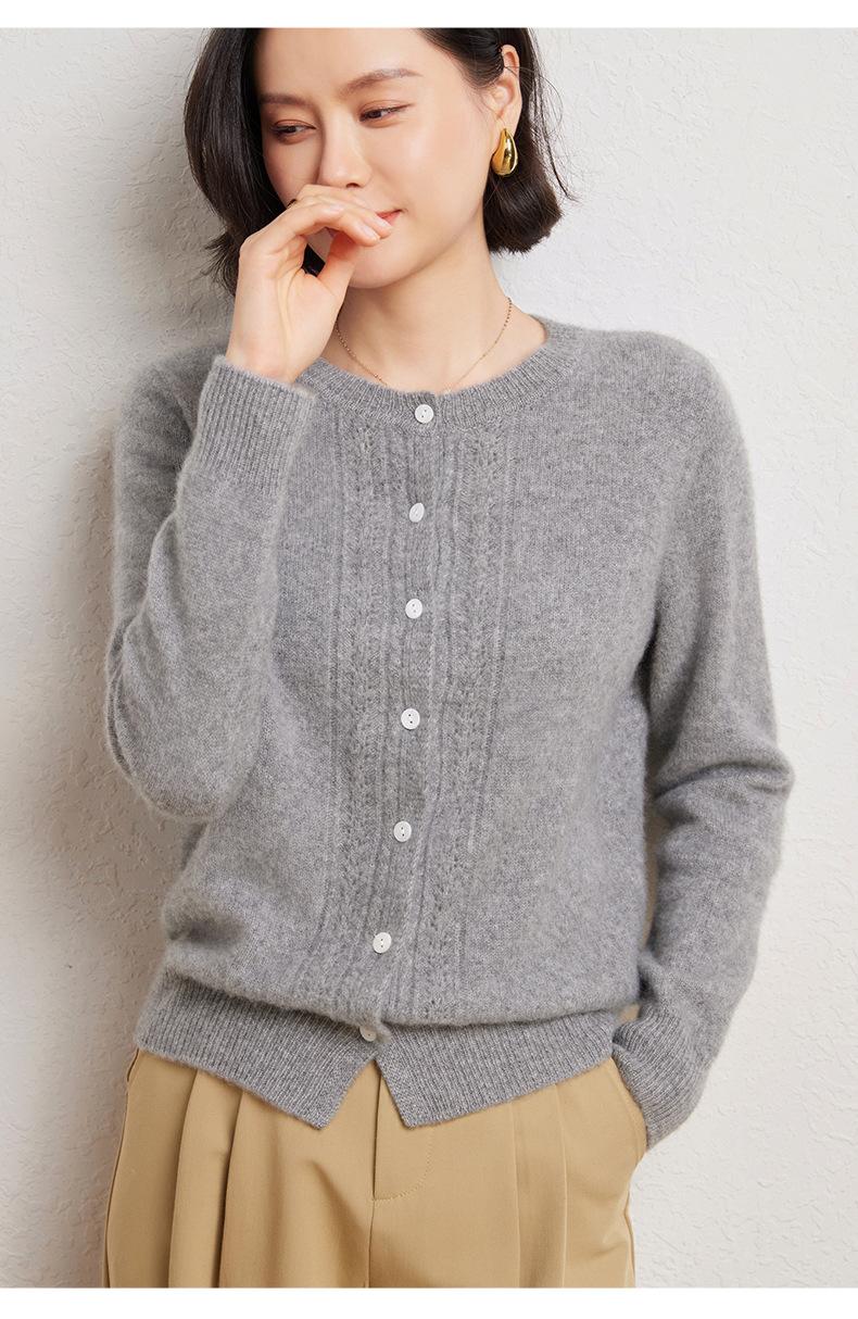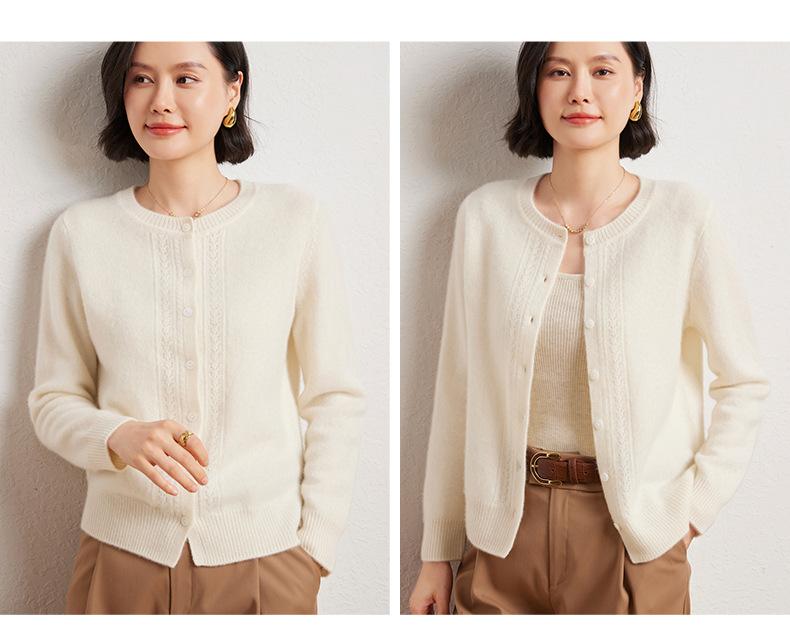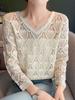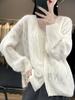 Suéter de manga larga para mujer, cárdigan de punto hueco con encaje de cachemira y cuello redondo suelto de 7 pines, otoño e invierno de 24 años