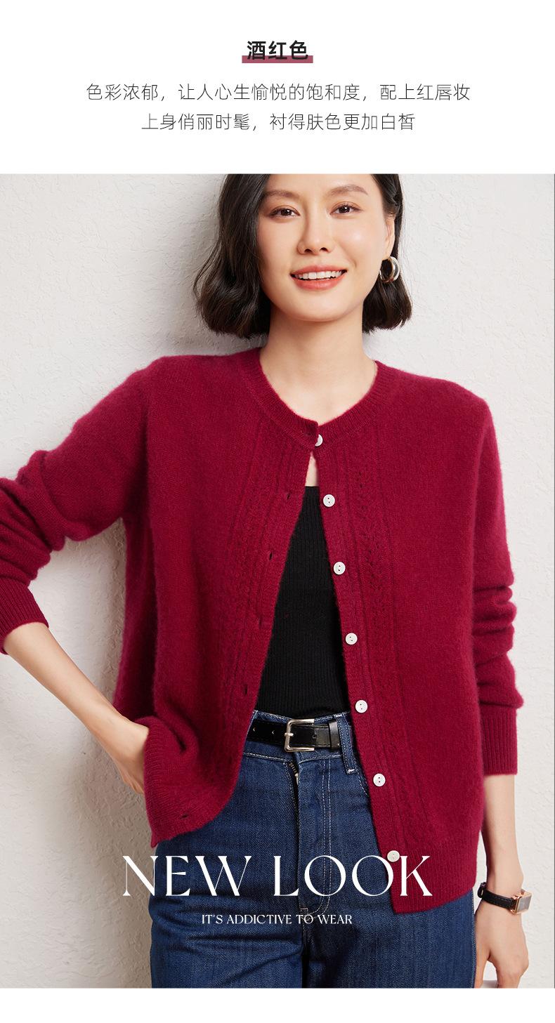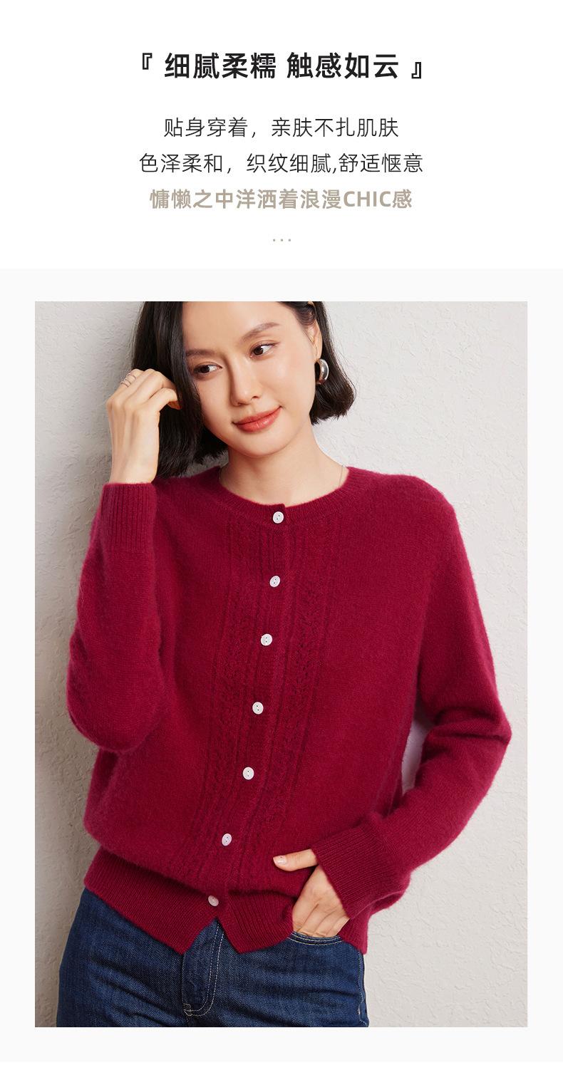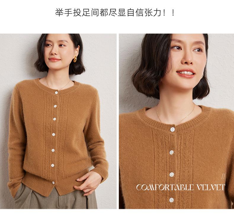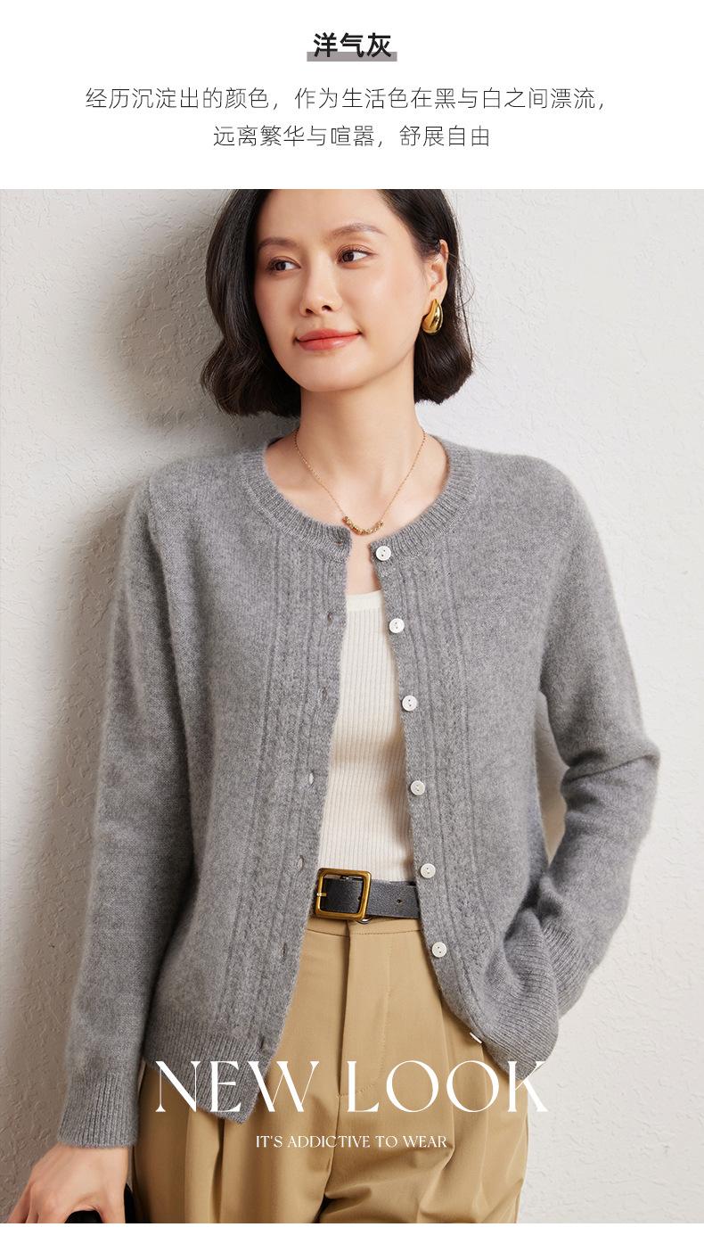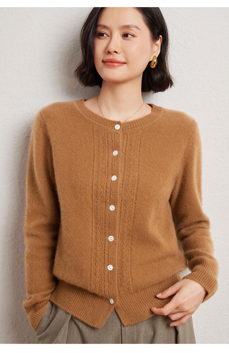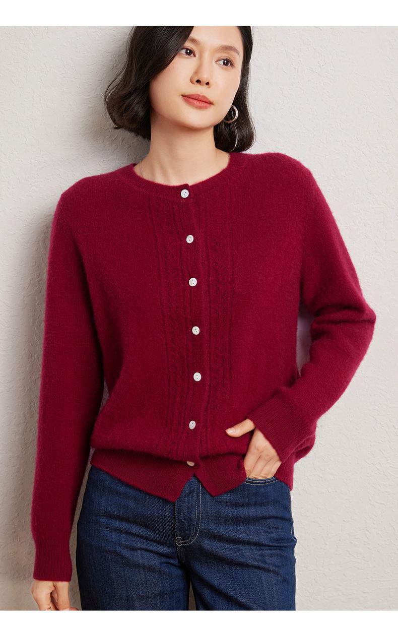 Suéter de manga larga para mujer, cárdigan de punto hueco con encaje de cachemira y cuello redondo suelto de 7 pines, otoño e invierno de 24 años