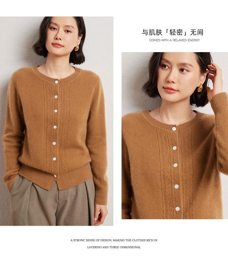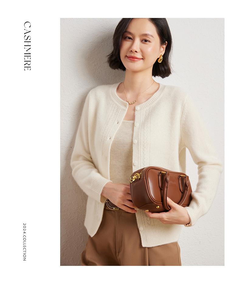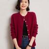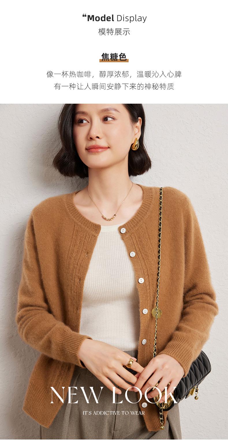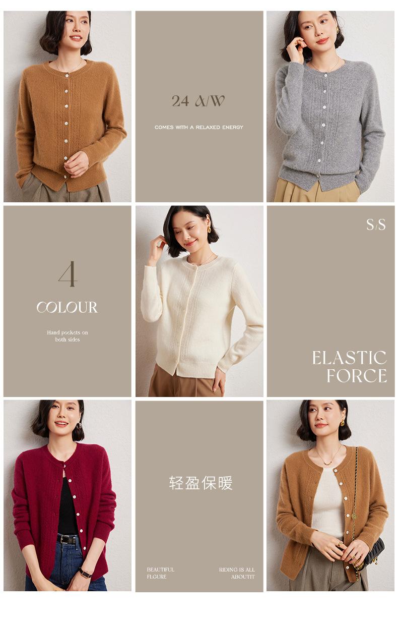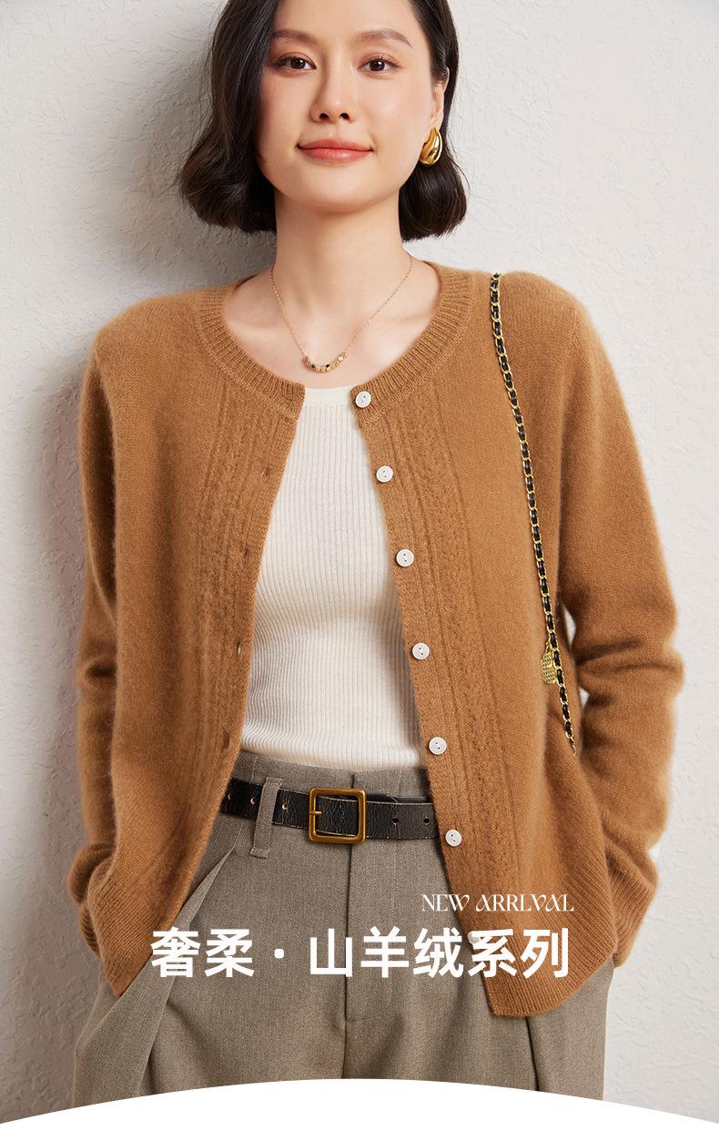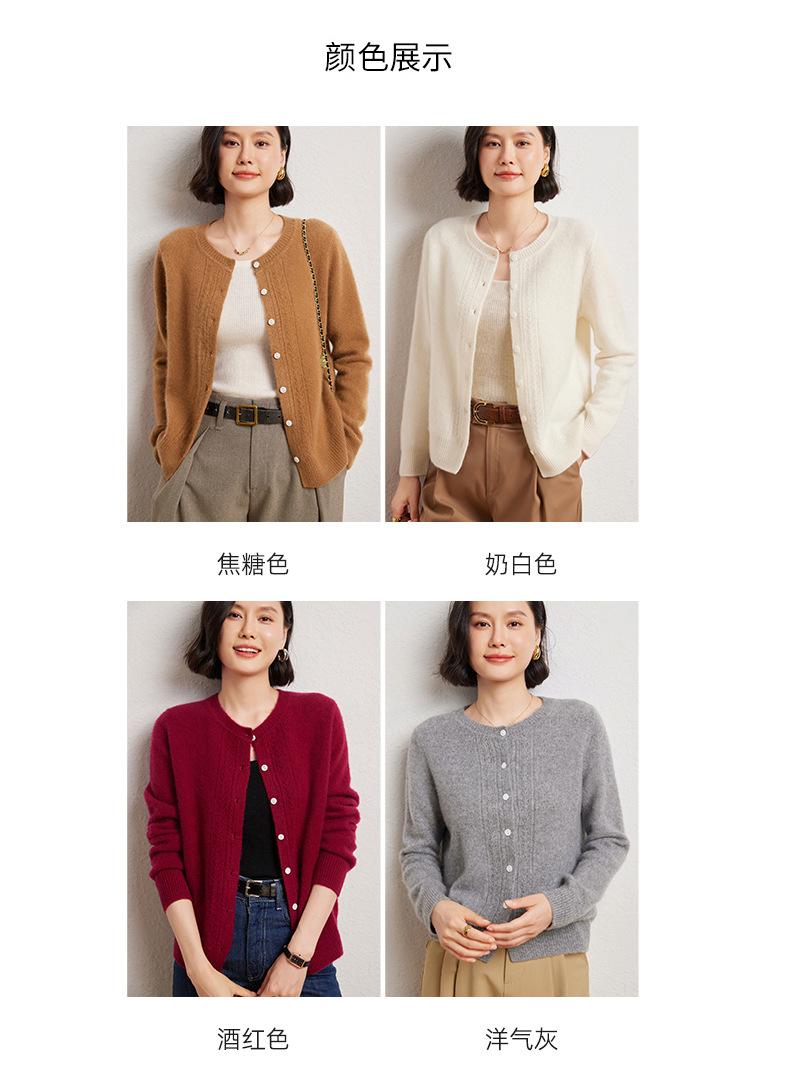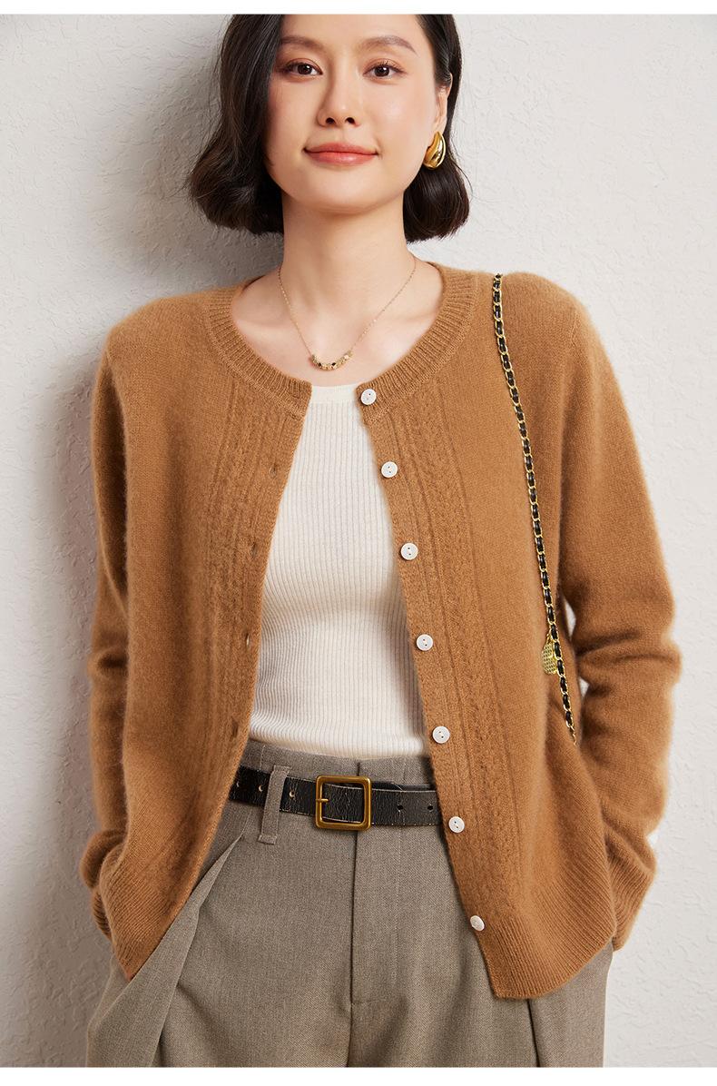 Suéter de manga larga para mujer, cárdigan de punto hueco con encaje de cachemira y cuello redondo suelto de 7 pines, otoño e invierno de 24 años