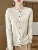 Cárdigan de punto de lana pura sin costuras de una sola línea para mujer, abrigo sencillo de manga larga con cuello redondo grueso y botonadura sencilla para ir al trabajo.