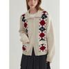 Suéter Cárdigan Retro Francés de Cuello en V con Bloques de Color Argyle para Mujer, Grueso, Diseño Único, Corte Holgado, Tejido de Punto Adelgazante