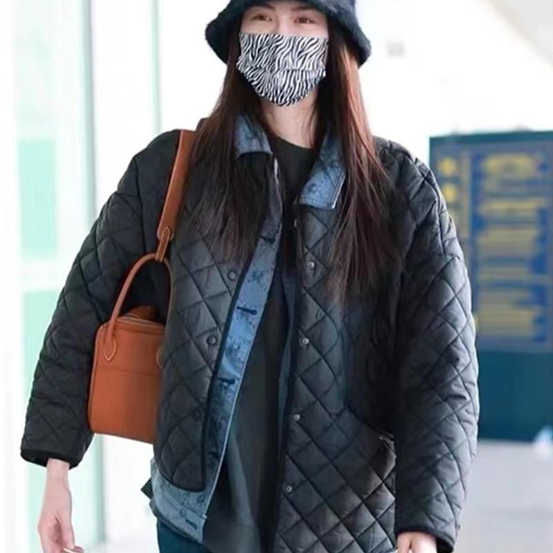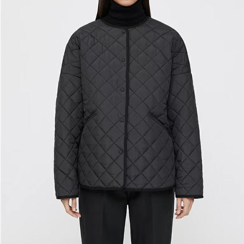 Abrigo de Algodón para Mujer Otoño e Invierno Nuevo Estilo Ins Estilo Coreano Acolchado Acolchado Chaqueta Cuello Redondo Moda Personalizada Algodón Abrigo Chaqueta para Mujer