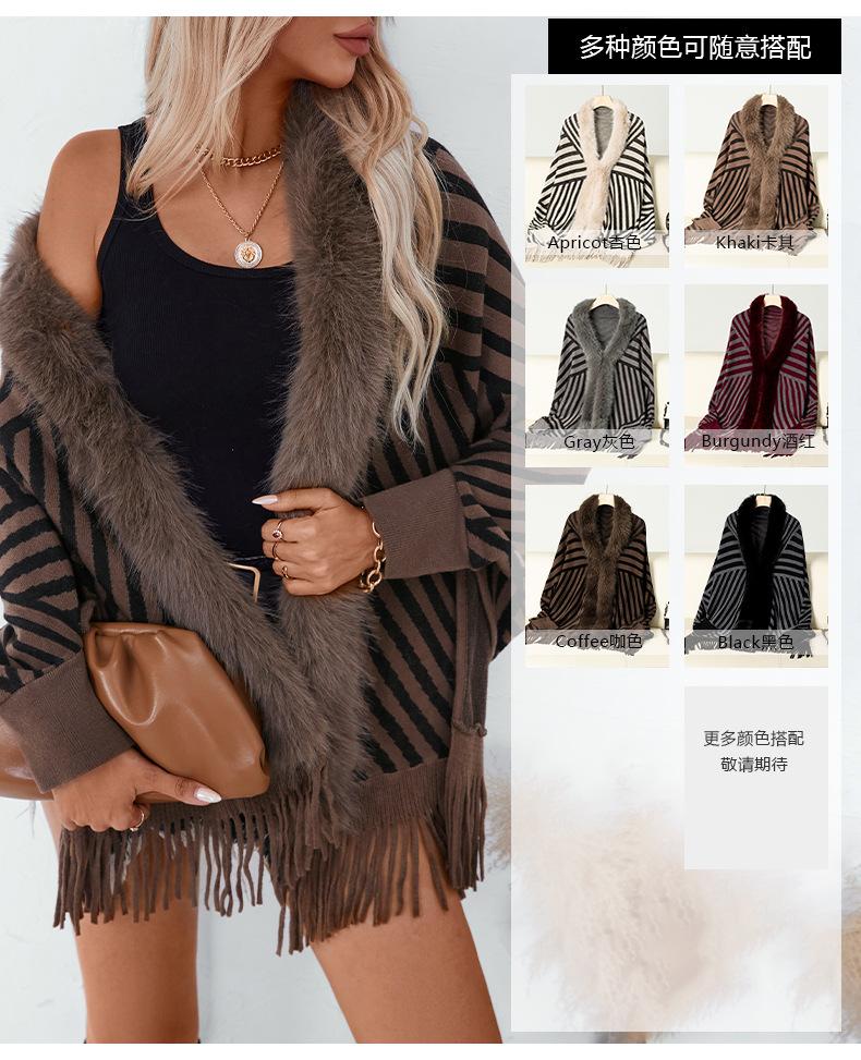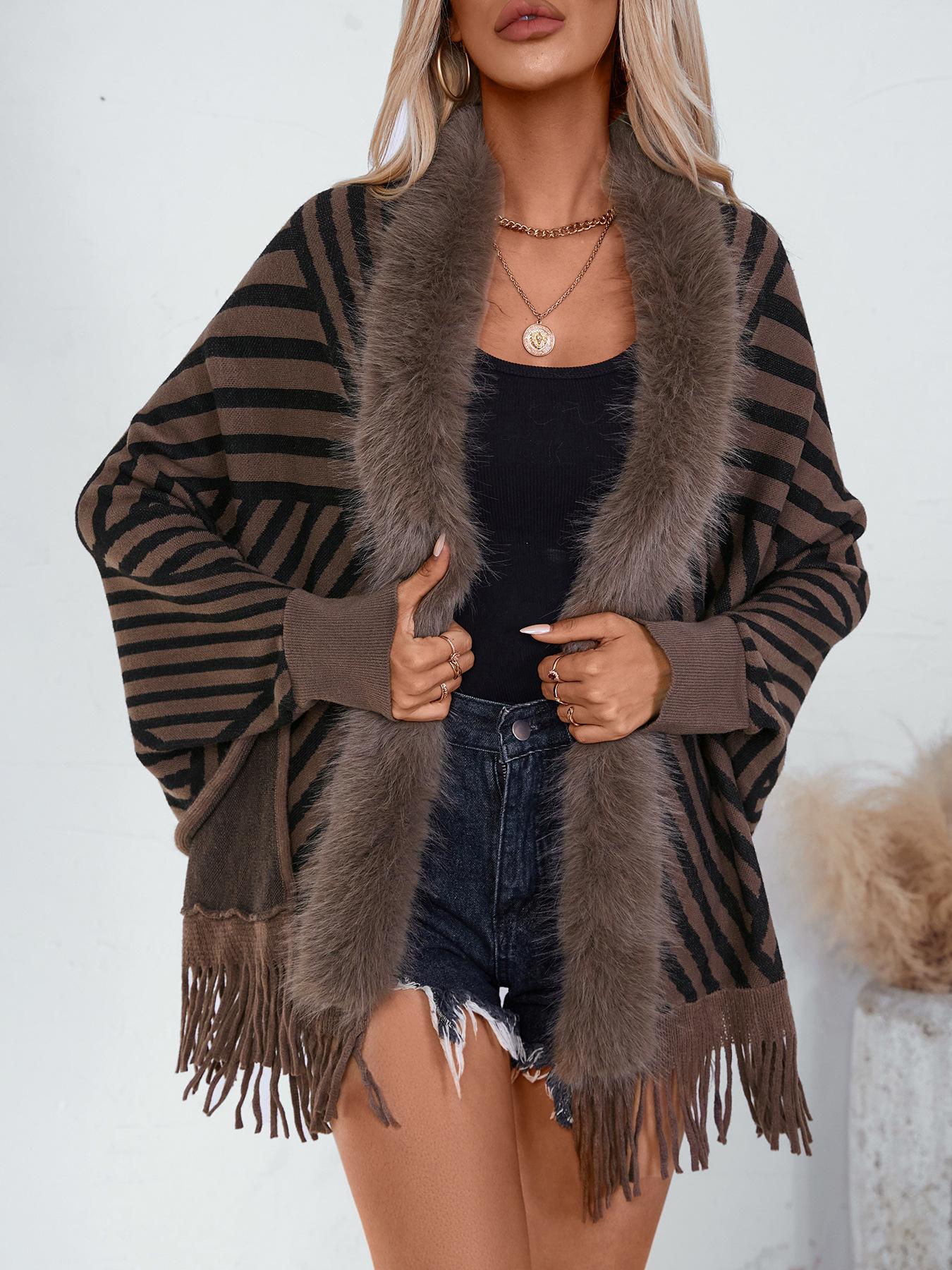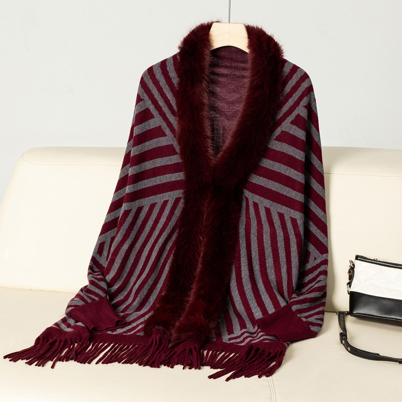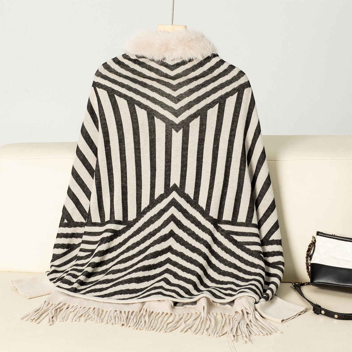 Xale Capa Tricotado com Franjas Listrado da Moda Nova Outono e Inverno Europeu e Americano Capa Versátil Cachecol Externo Suéter para Mulheres