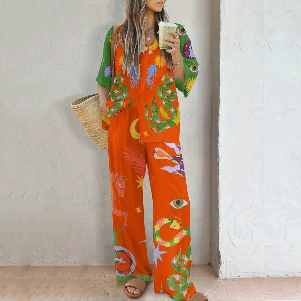Explosiones Transfronterizas Amazon AliExpress Traje de Dos Piezas Casual Holgado Europeo y Americano para Mujer