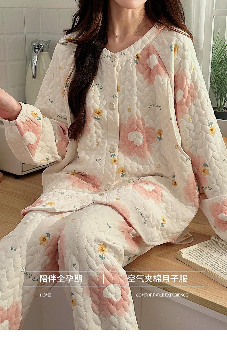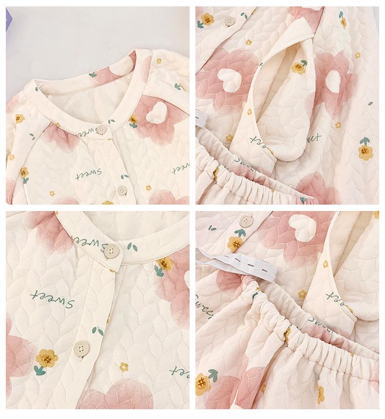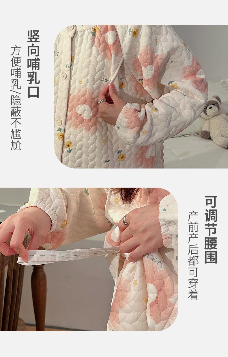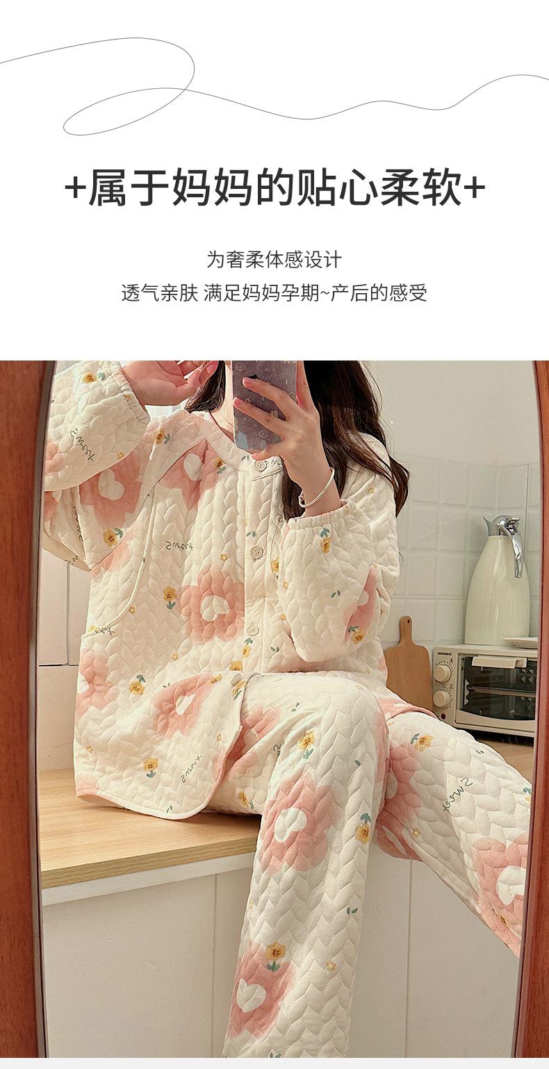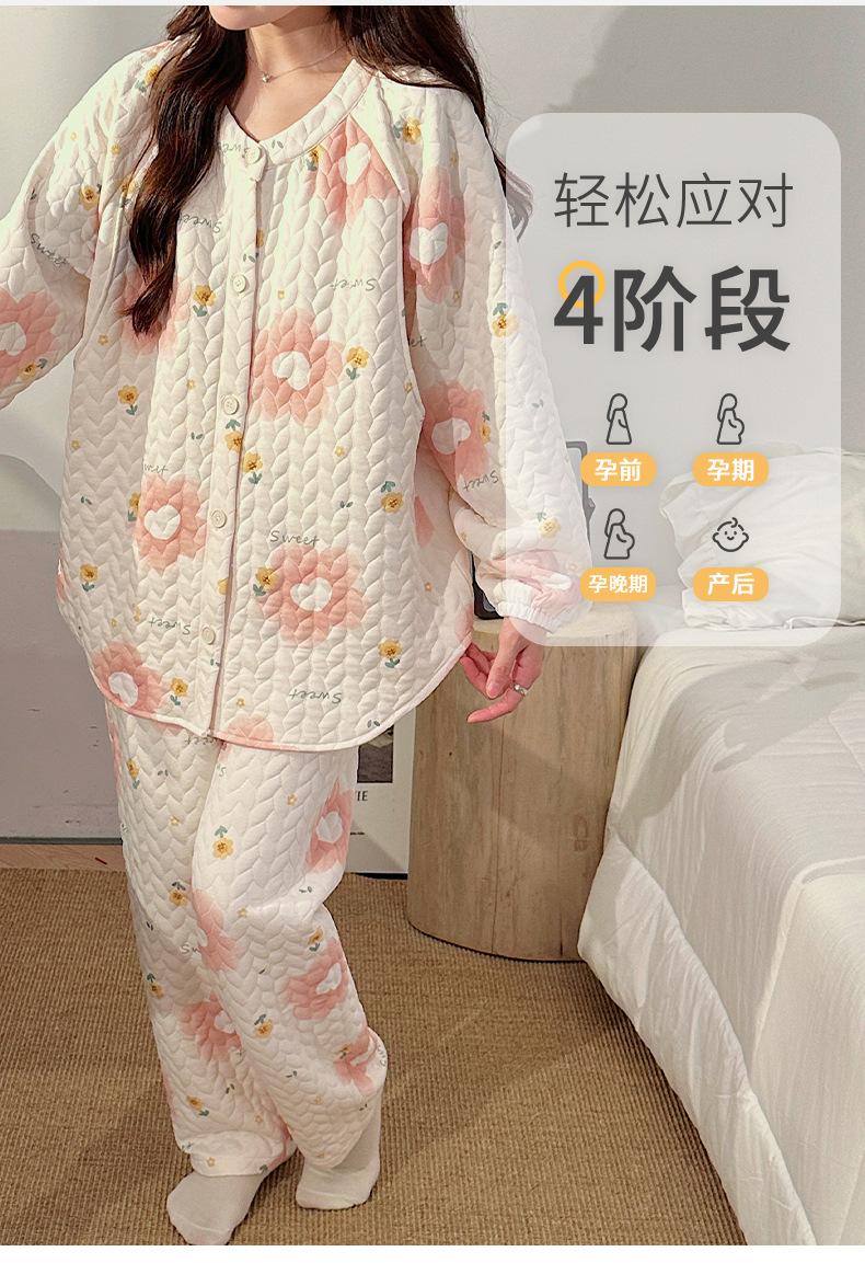 Ropa Yuezi para el Hogar Enmei Otoño Nuevo Sándwich de Algodón Aire Mujeres Embarazadas Lactancia Dos Piezas Ropa para el Hogar Talla L-3XL