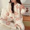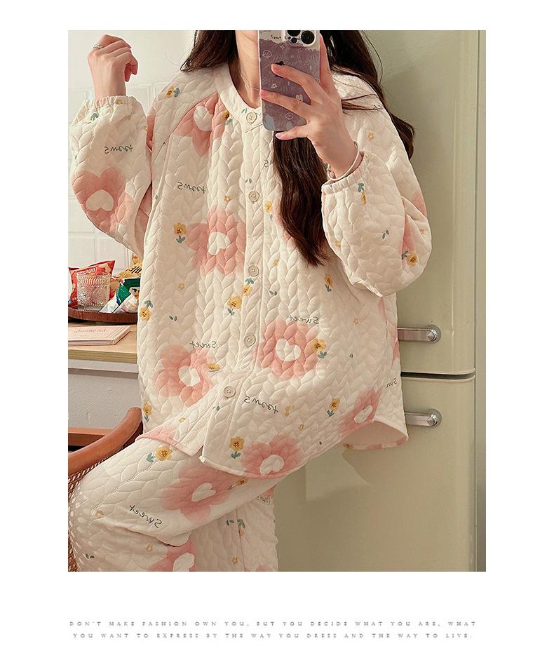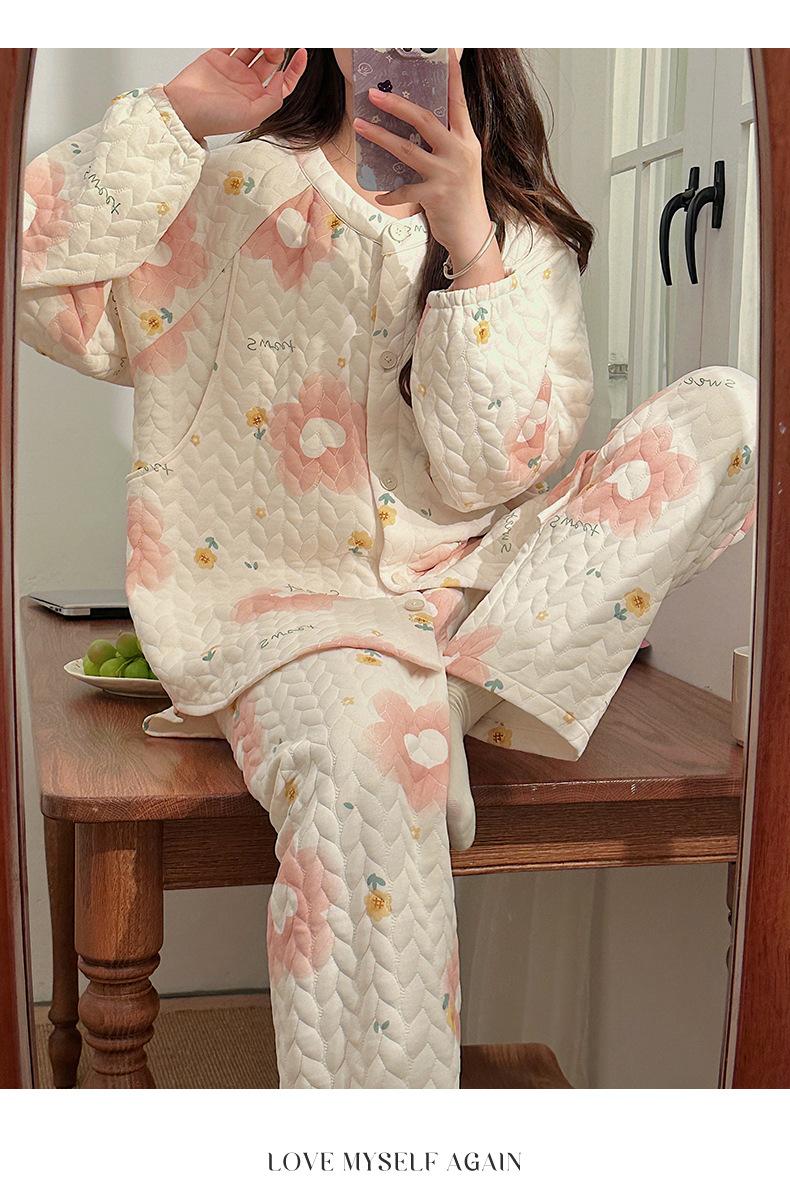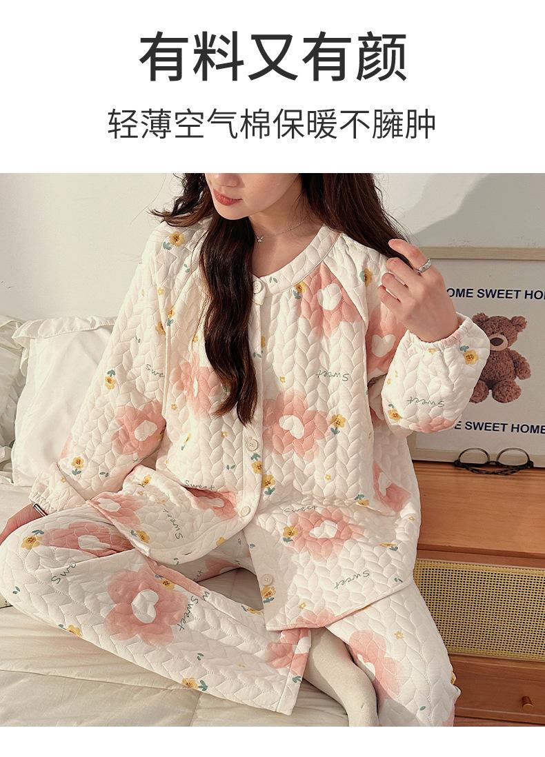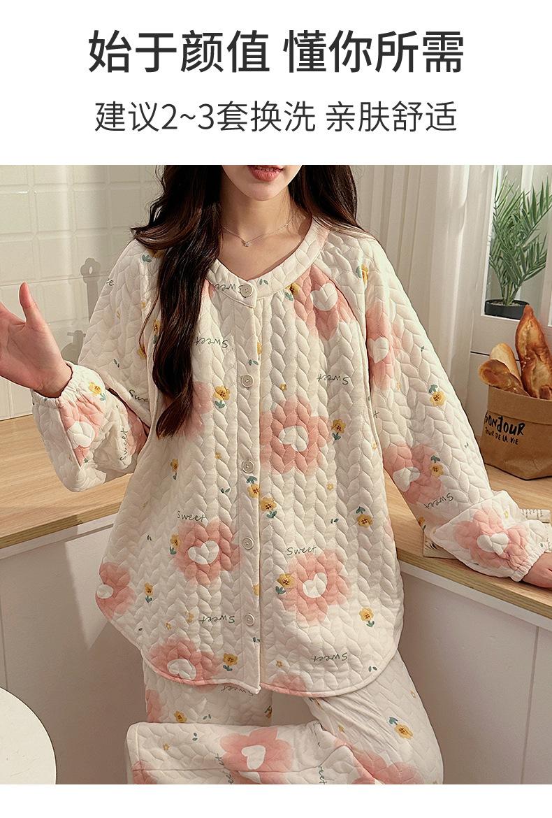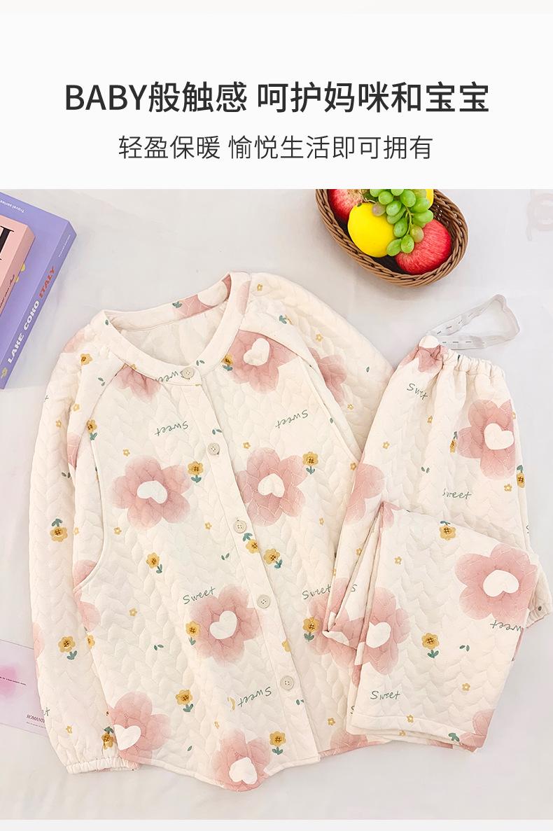 Ropa Yuezi para el Hogar Enmei Otoño Nuevo Sándwich de Algodón Aire Mujeres Embarazadas Lactancia Dos Piezas Ropa para el Hogar Talla L-3XL