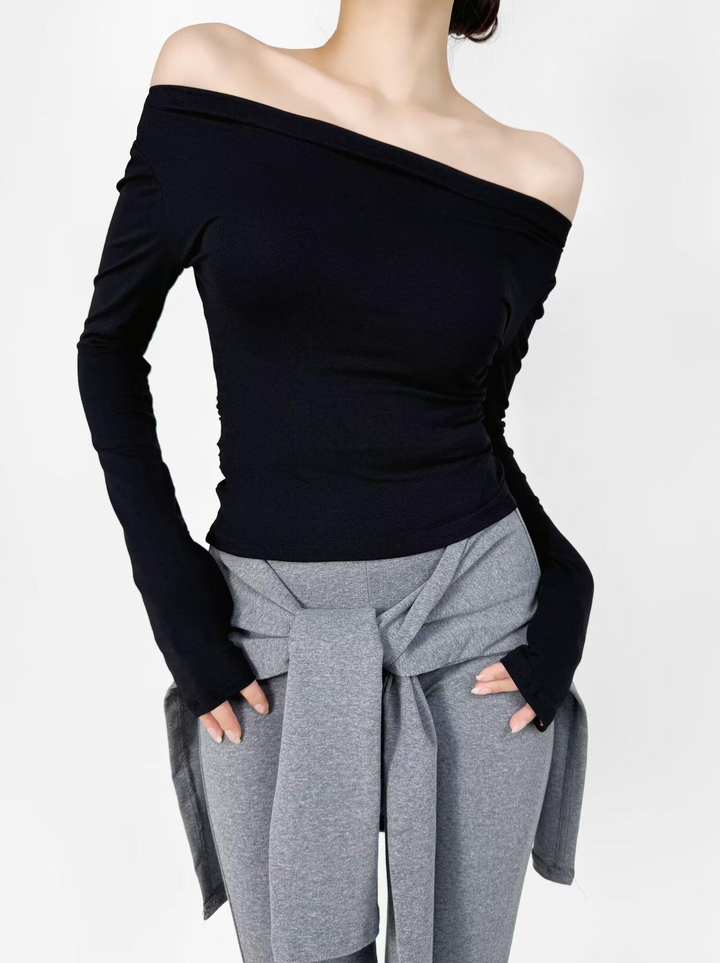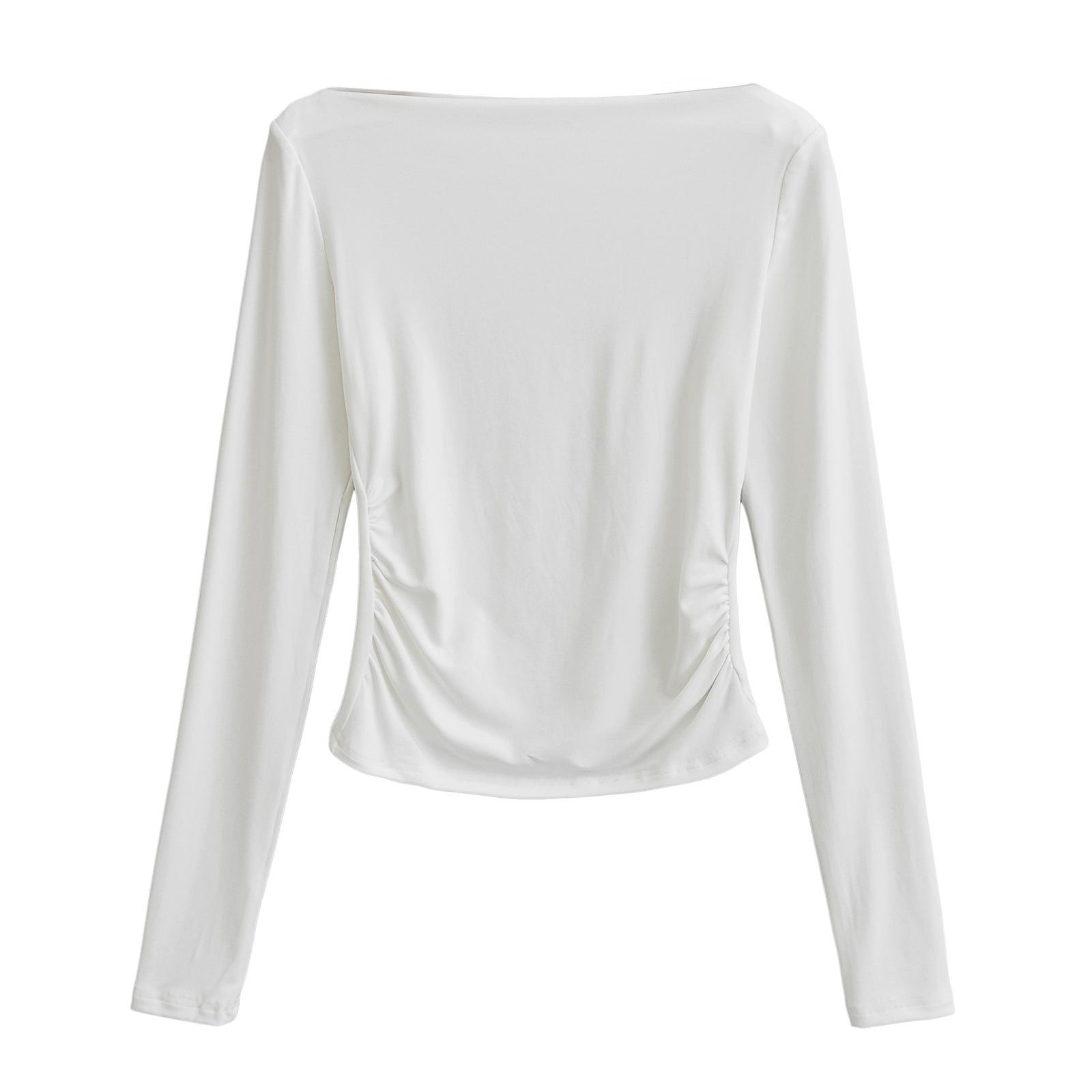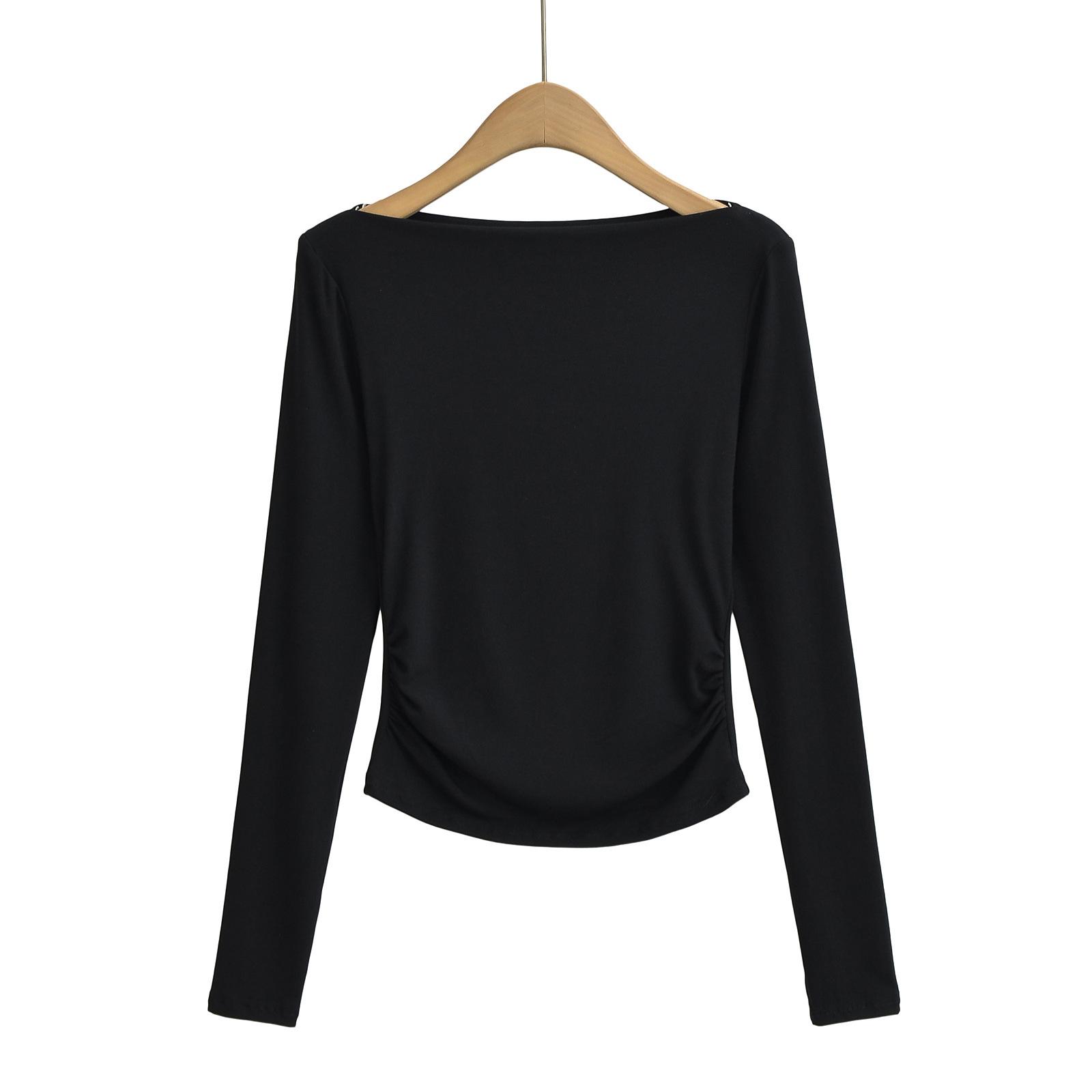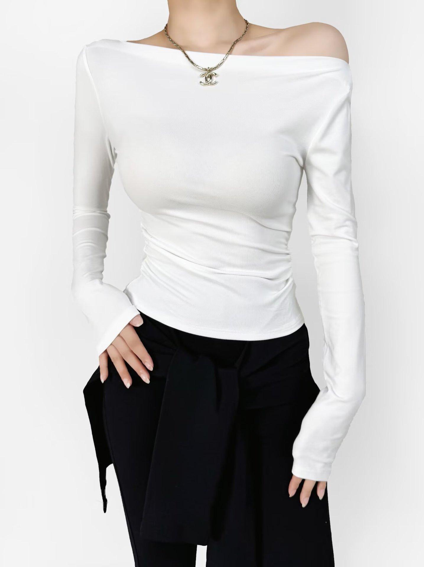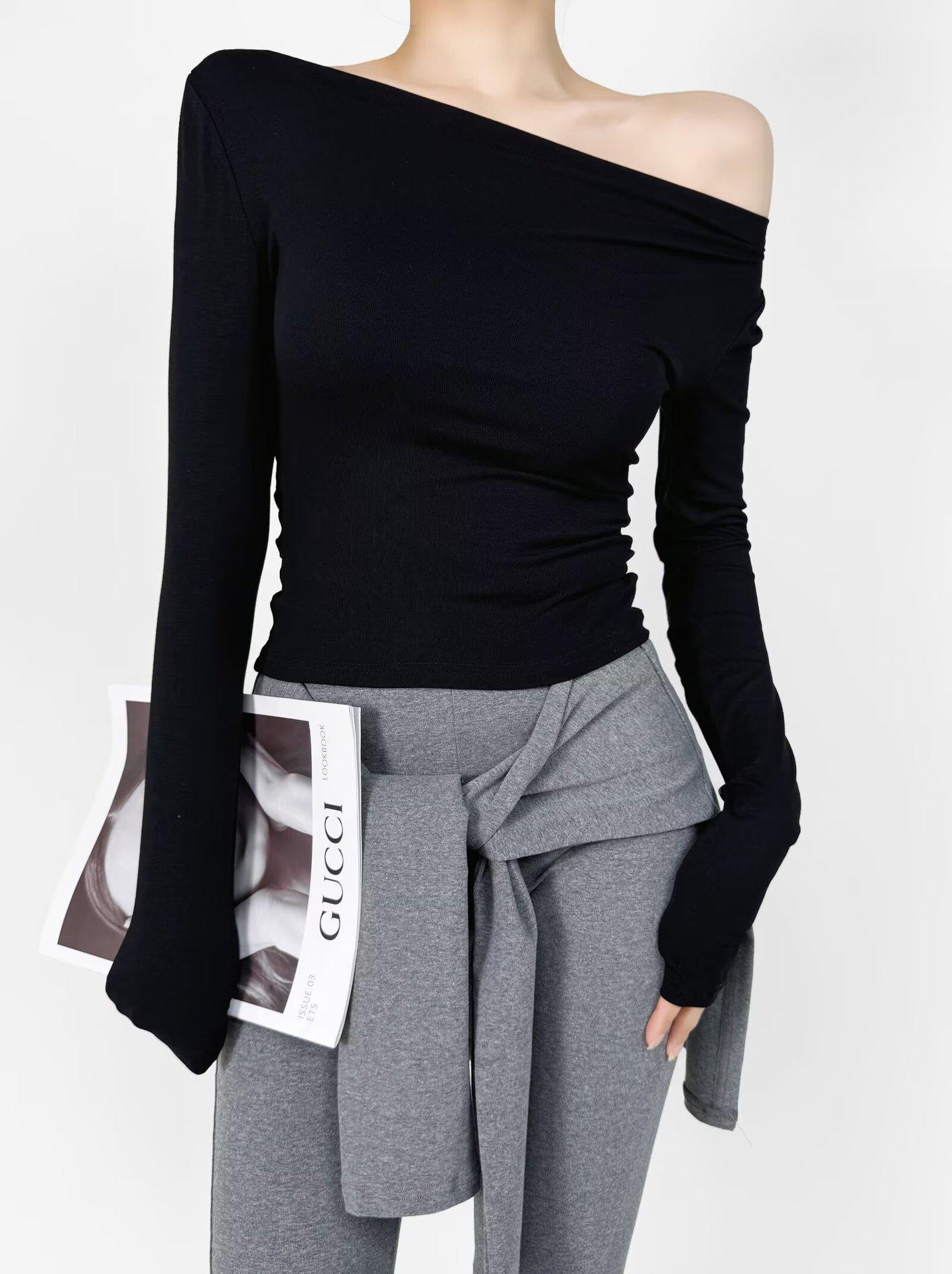 Camiseta básica sexy de un solo hombro con cintura de hormiga, nueva camiseta ajustada de manga larga elástica para mujer de principios de otoño de 2024
