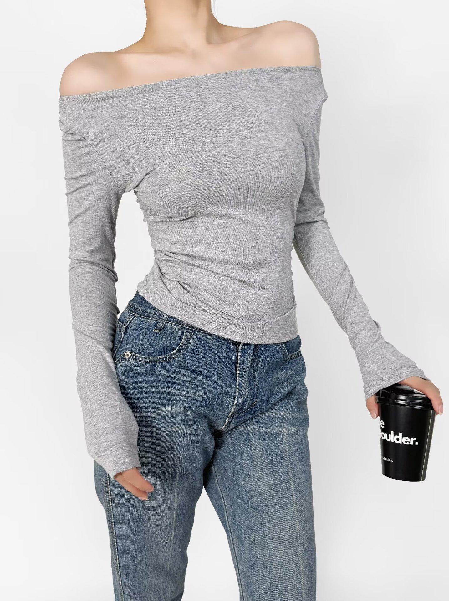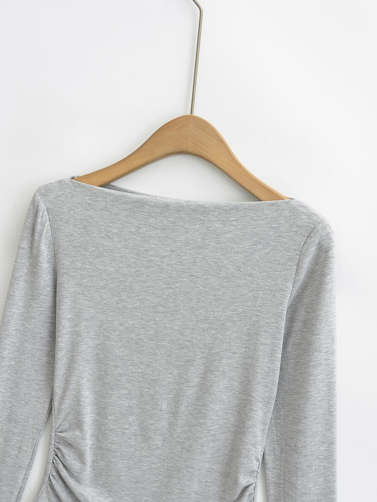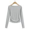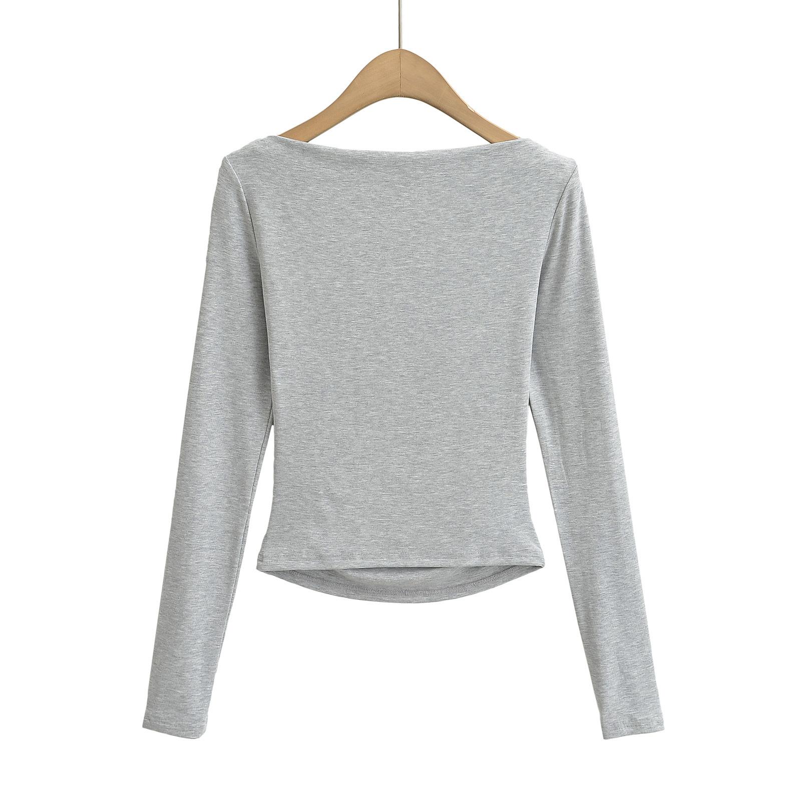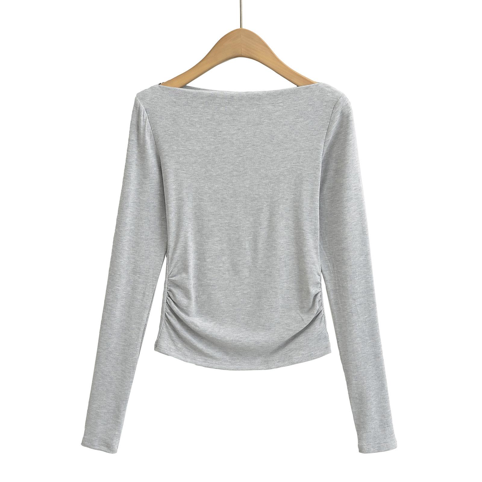 Camiseta básica sexy de un solo hombro con cintura de hormiga, nueva camiseta ajustada de manga larga elástica para mujer de principios de otoño de 2024