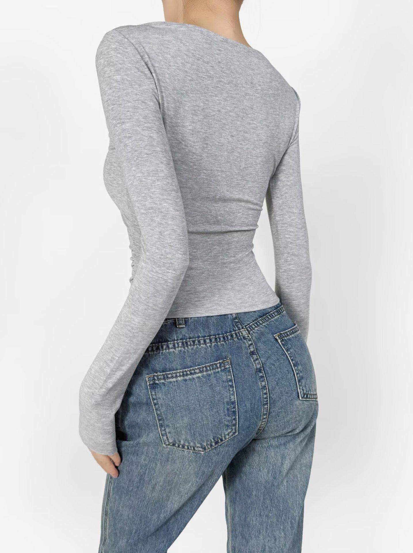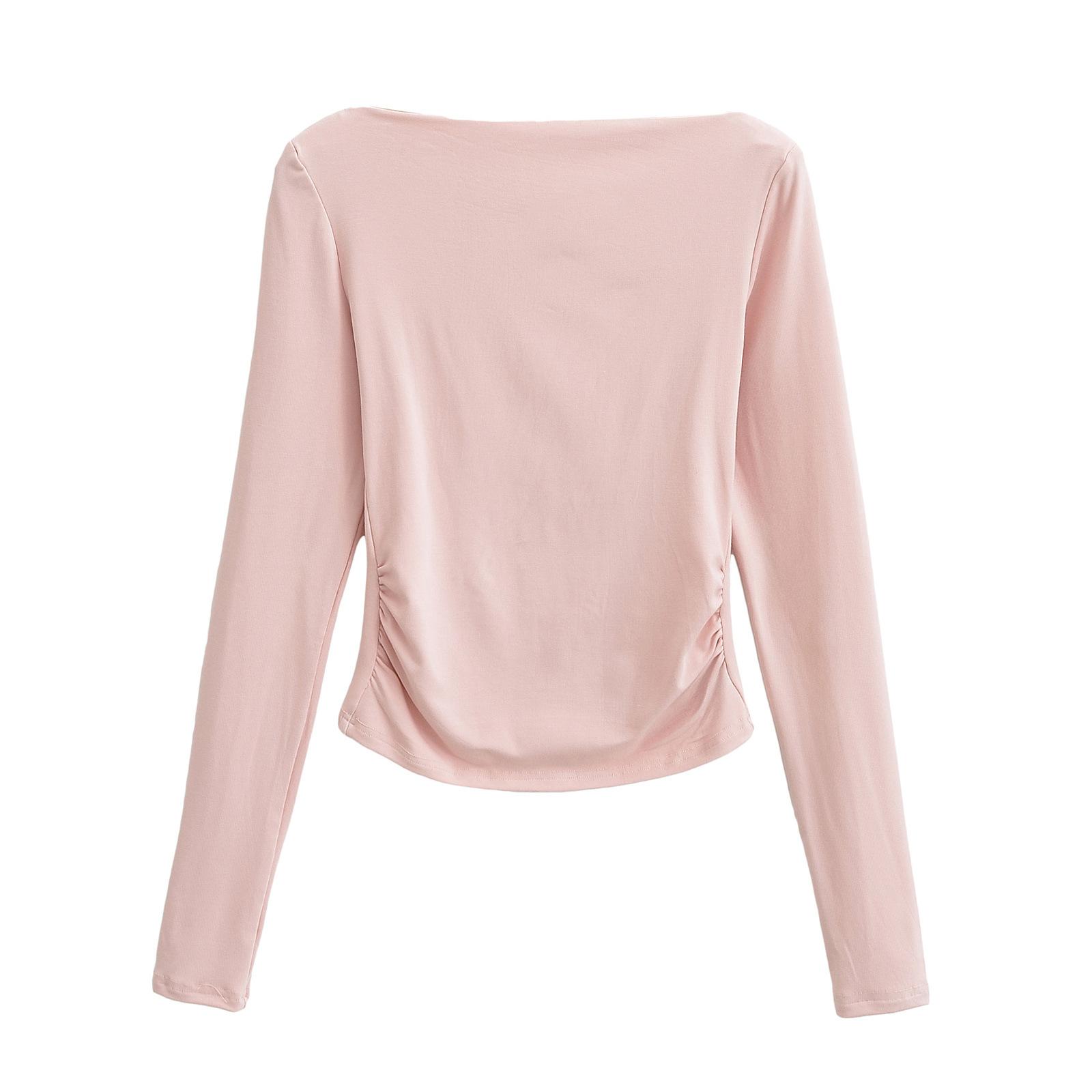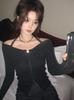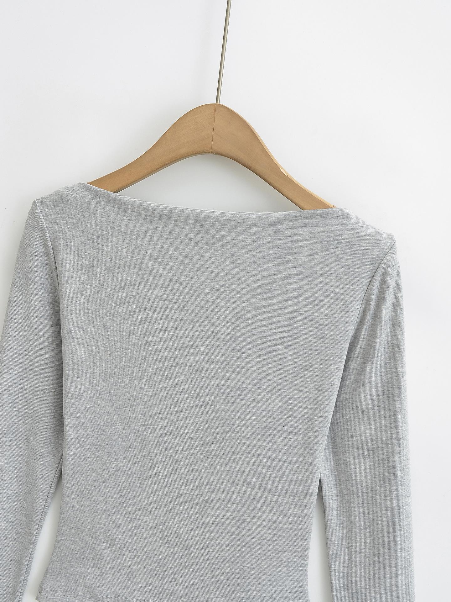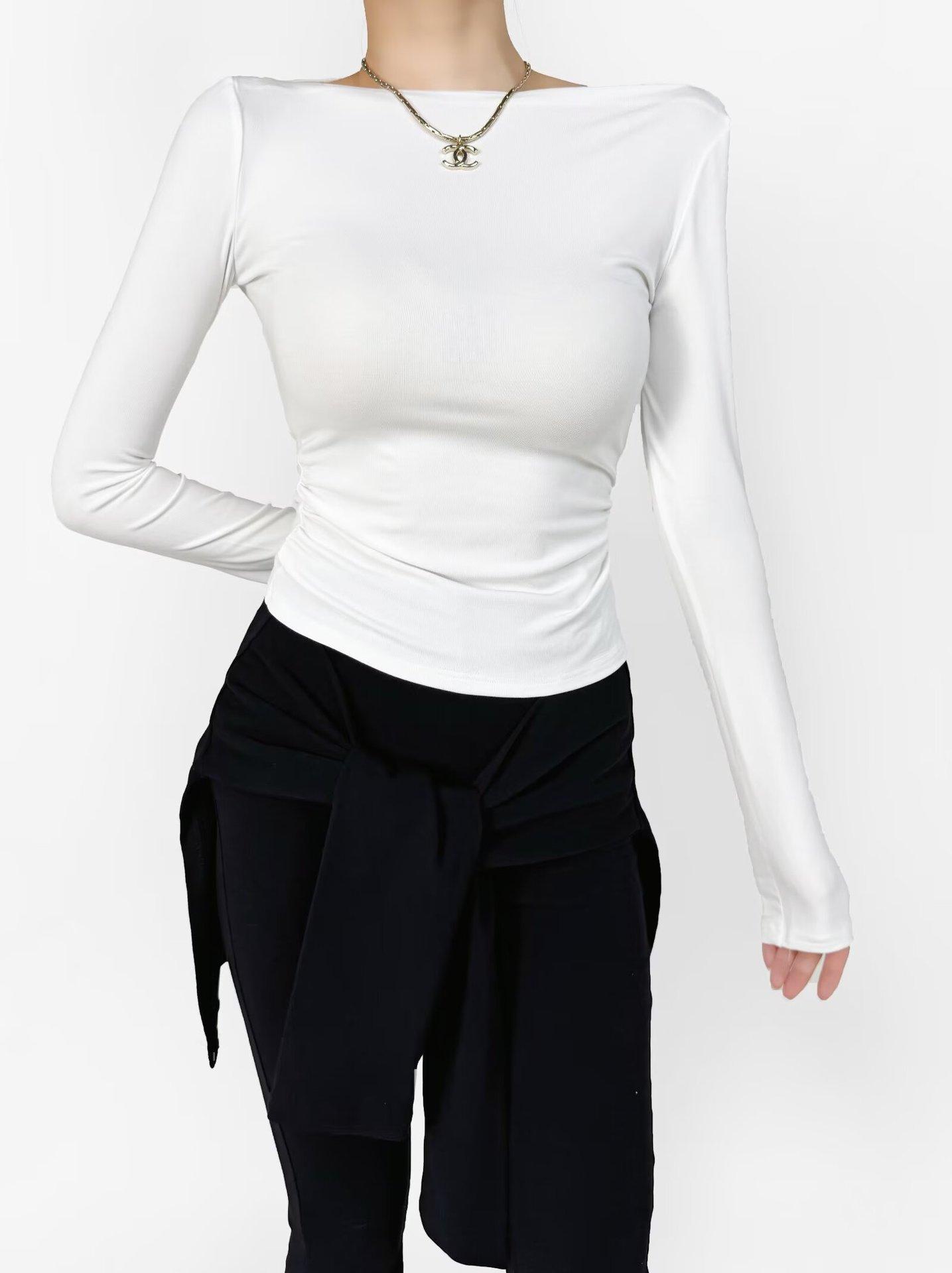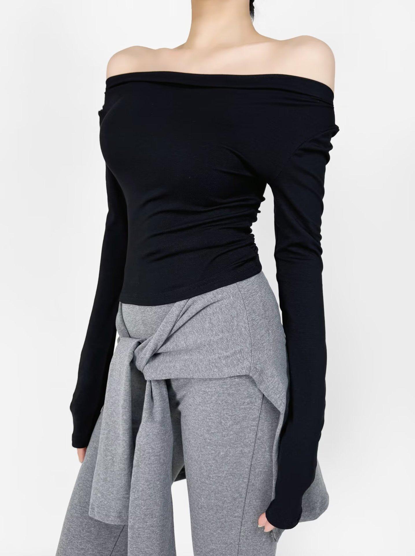 Camiseta básica sexy de un solo hombro con cintura de hormiga, nueva camiseta ajustada de manga larga elástica para mujer de principios de otoño de 2024