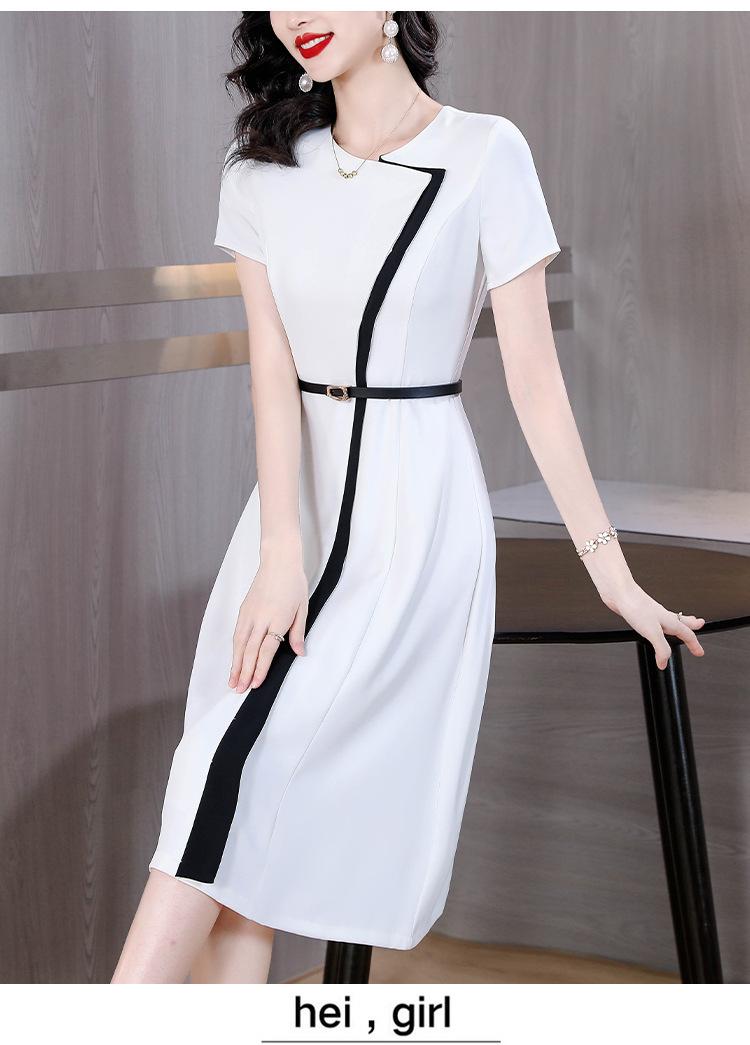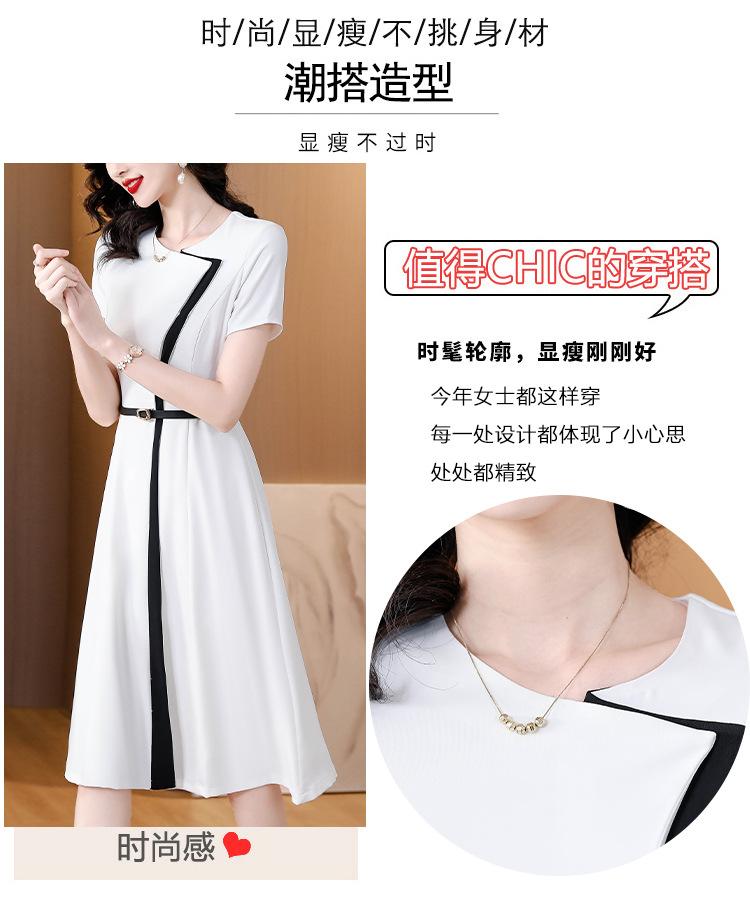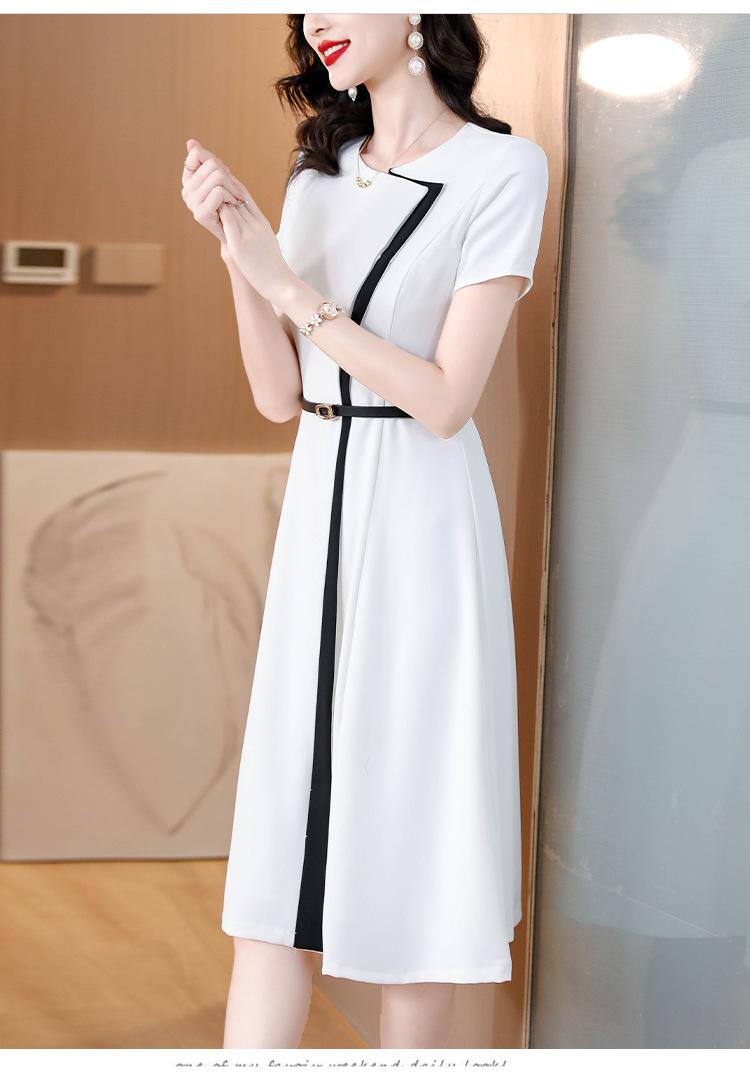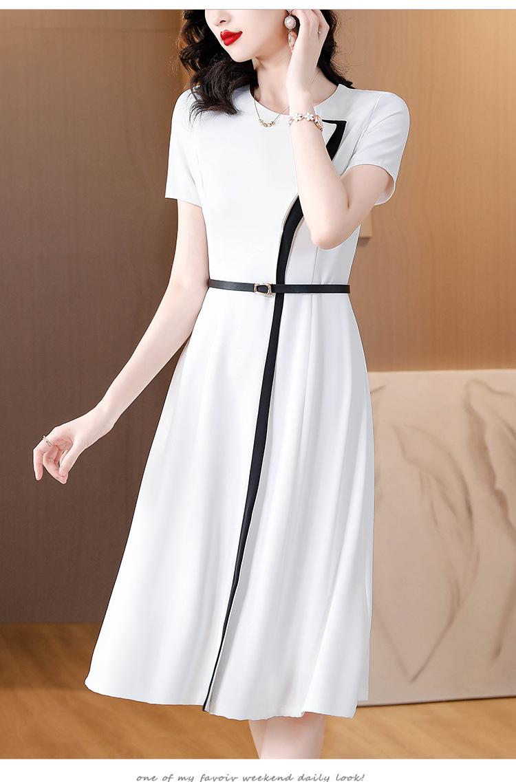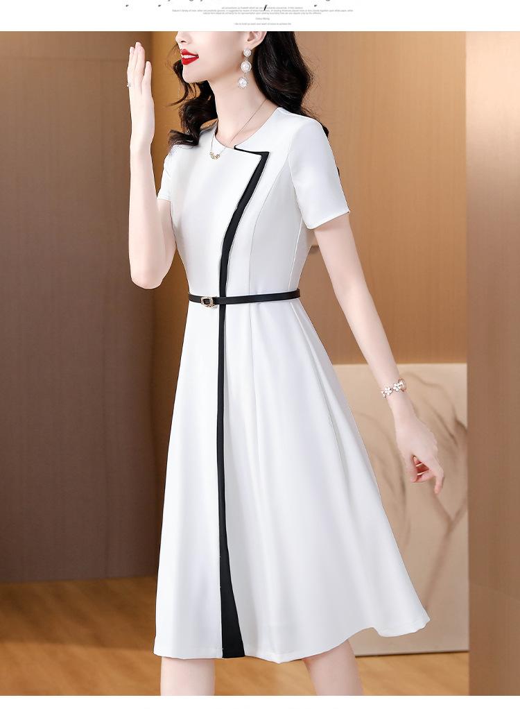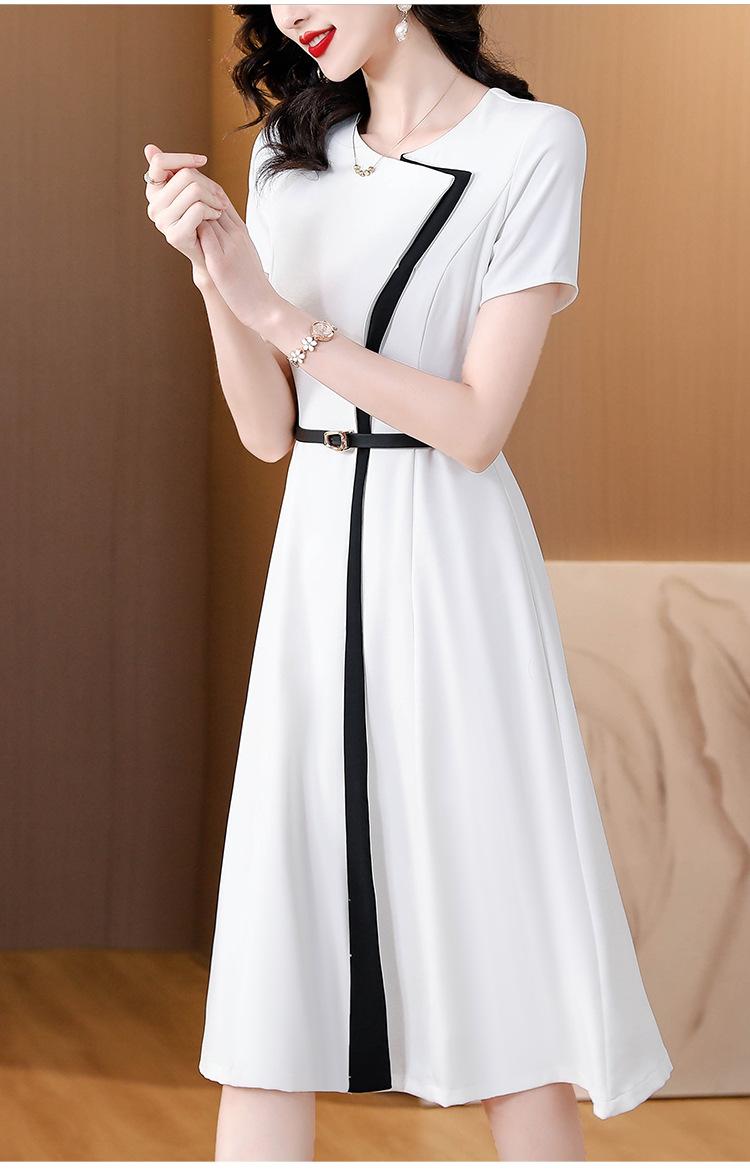 Vestido de Moda para Madres con Bloques de Color para Mujer Verano 2024 Nuevo Elegante Versátil Blanco Manga Corta Falda Larga para Personas Pequeñas